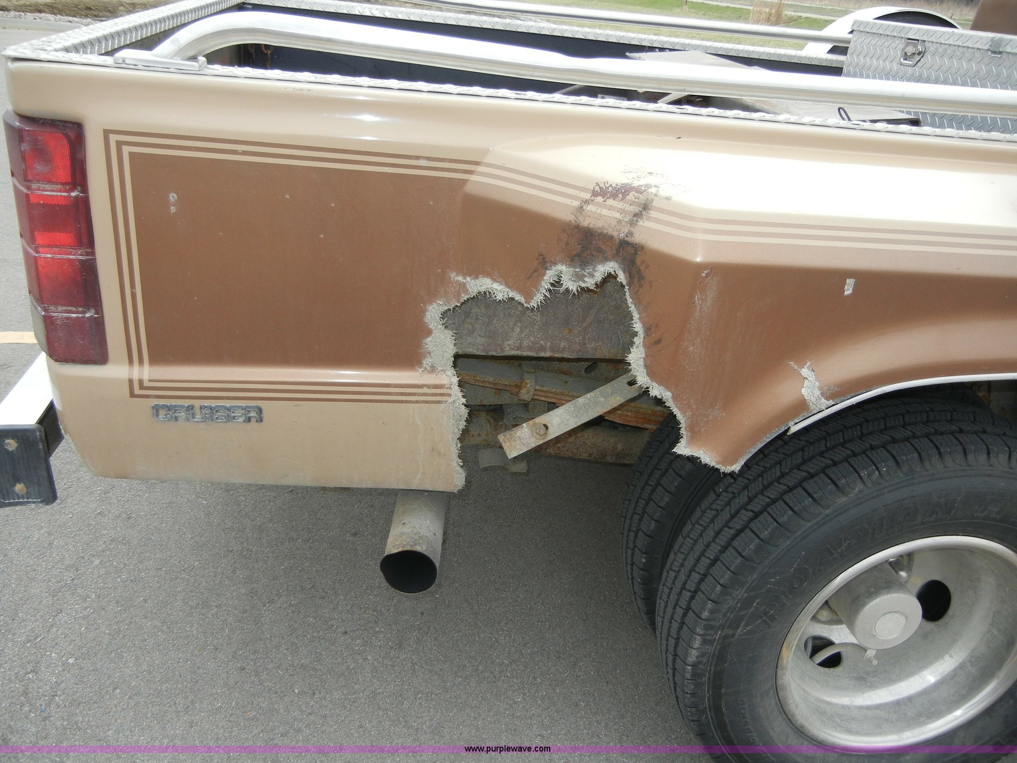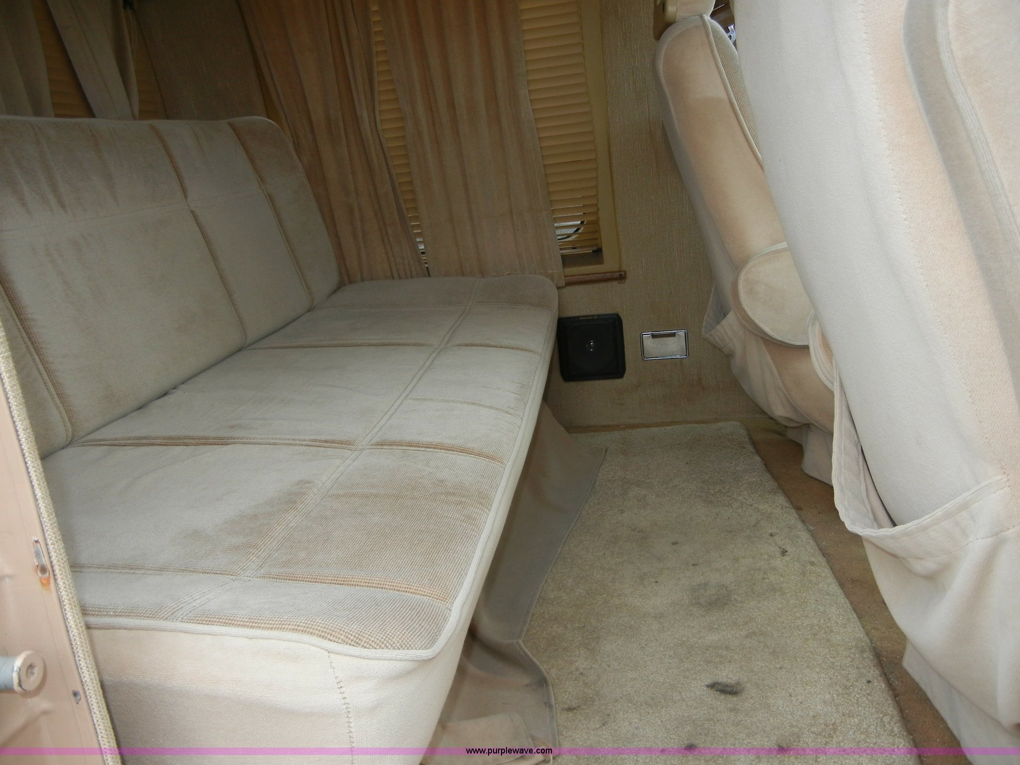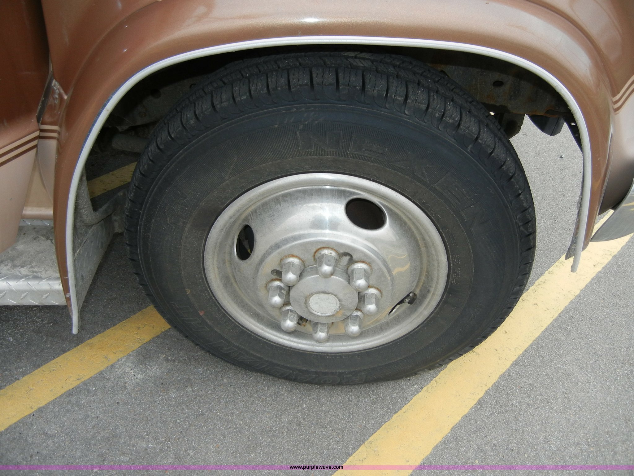 Purple Wave is selling a used Passenger Vehicle in Kansas. This item is a 1987 Ford E350 Econoline Centurion RV Cutaway with the following: 97,889 miles on odometer, Conversion Van converted to pickup, V8 6.9L diesel engine, Automatic transmission, AC and heat, Tilt, Cruise, AM/FM, Power windows and locks, Cloth interior, Rear seats fold down to full size bed, Front captain seats, Overhead fog lights, New front suspension, Pickup bed, Receiver hitch, Trailer wiring, Fifth wheel hitch, Spare fuel tank, Toolbox, All new tires, Rear duals, 215/85R16 tires, Damage to rear fender and running board, Exterior cosmetic rust and damage