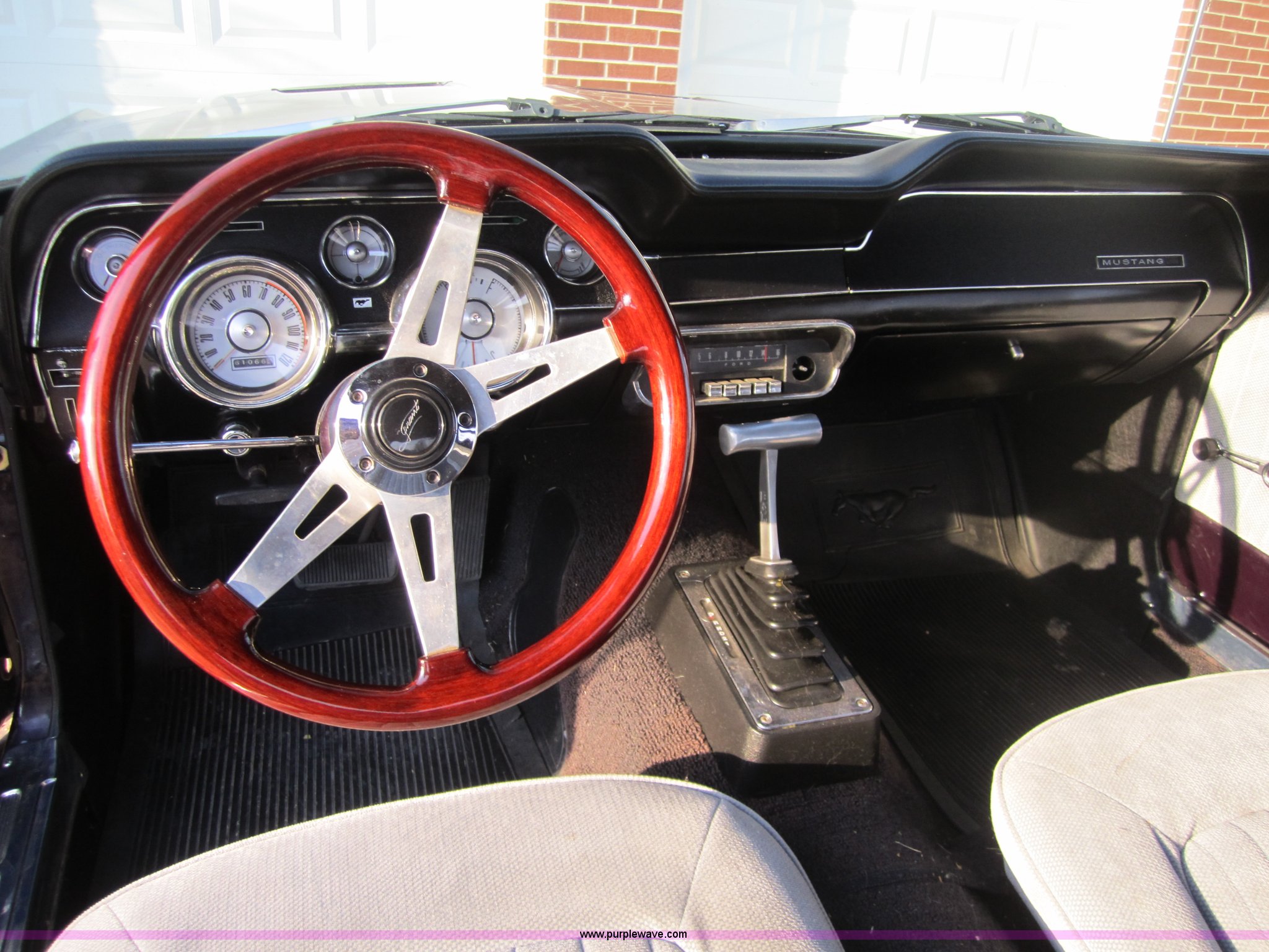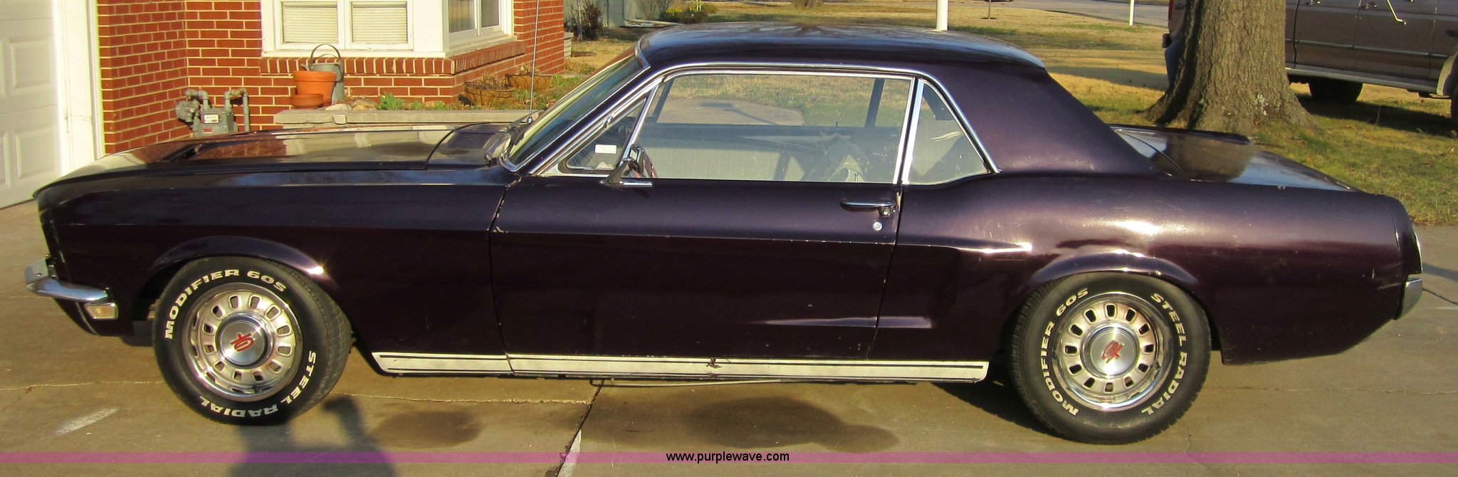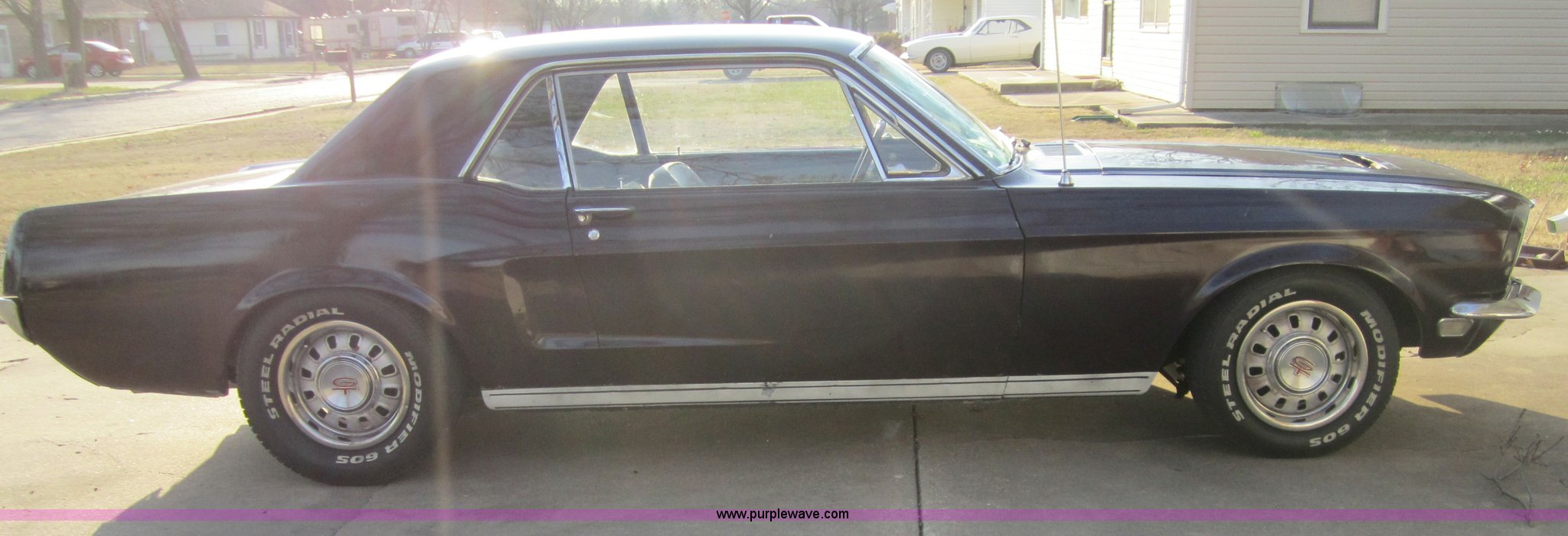 Purple Wave is selling a used Passenger Vehicle in Kansas. This item is a 1968 Ford Mustang with the following: 61,066 miles on odometer, Winsor 351 V8 engine, Bored .60 over, Rebuilt approx 2,000 miles ago, Four speed automatic transmission, MSD ignition, Flow Master exhaust, Tilt, Manual windows and locks, Painless wiring harness, Trunk battery, New trunk liner, Added seat belts, Floor pan replaced, P245-80R14 tires