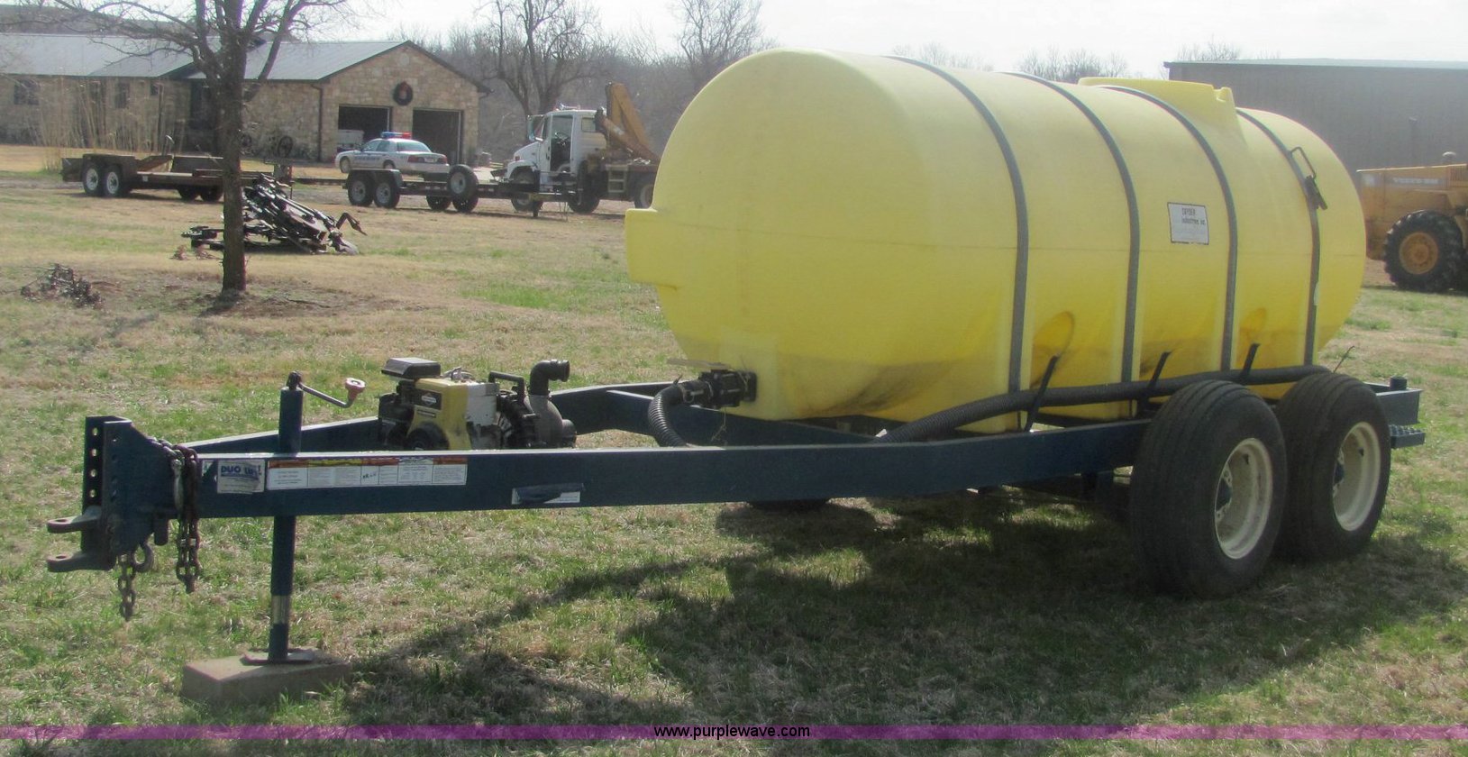 Purple Wave is selling a used Tanks in Kansas. This item is a Snyder Fairbanks 1,000 gallon tank on trailer with the following: Briggs & Stratton 5 HP engine, 11L-15SL tires