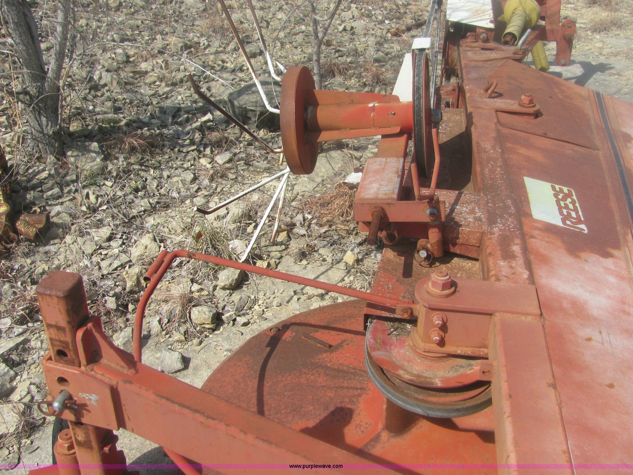 Purple Wave is selling a used Mower, Cutter, Shredder in Kansas. This item is a Reese 2400 side boom disk mower with the following: 540 PTO, Three point mount