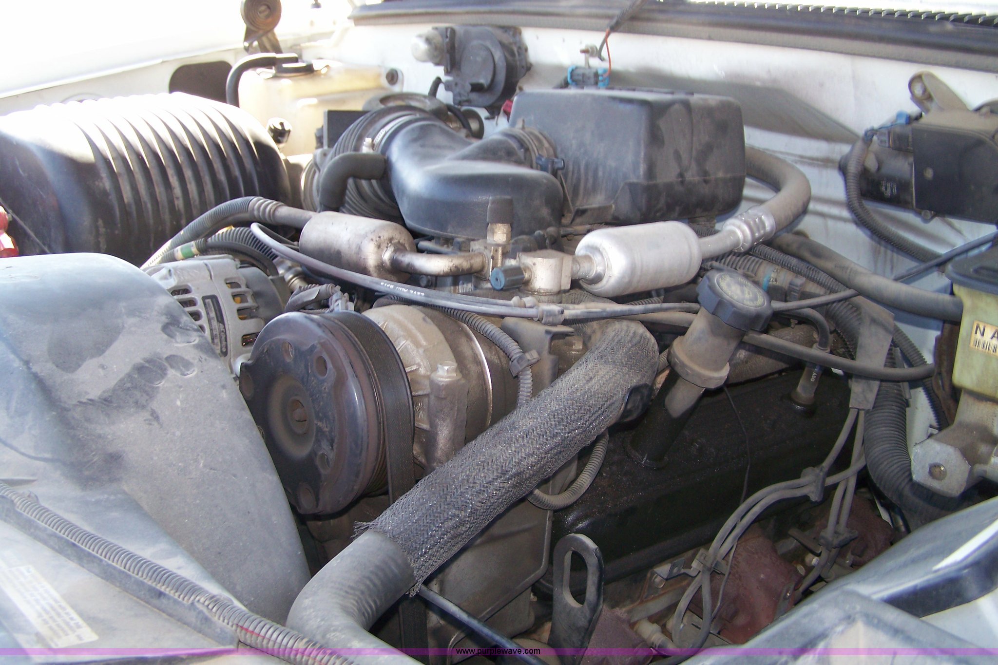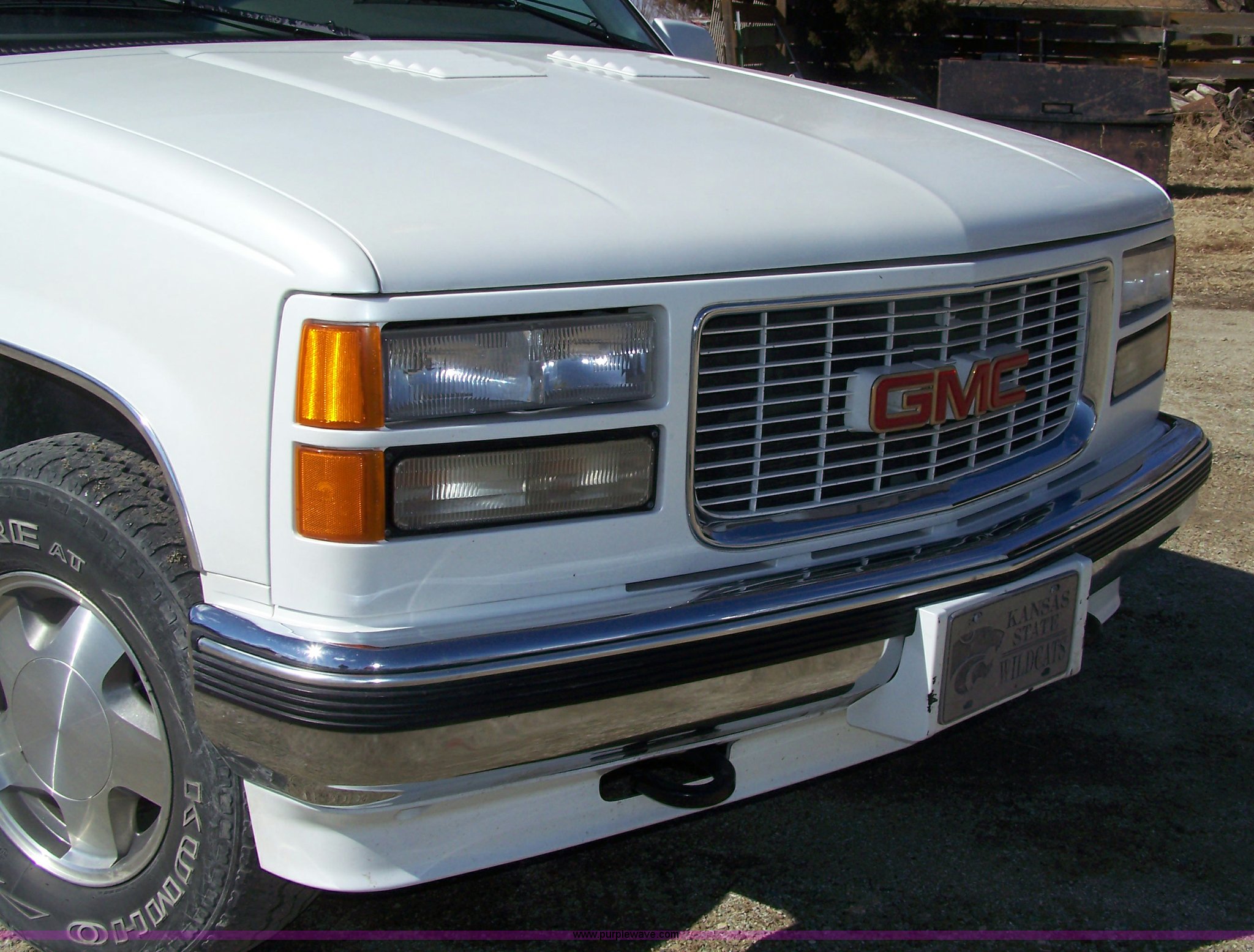 Purple Wave is selling a used Compact Pickup or Van in Kansas. This item is a 1996 GMC pickup with the following: 182,715 miles on odometer, V8 5.7L gas engine, Automatic transmission, Four wheel drive, Bed cover, Pearl white paint, LT245/75R16, Flexstill seats, Power windows, locks and mirrors, Leather interior, Heat and AC, Tilt and cruise, AM/FM/cassette