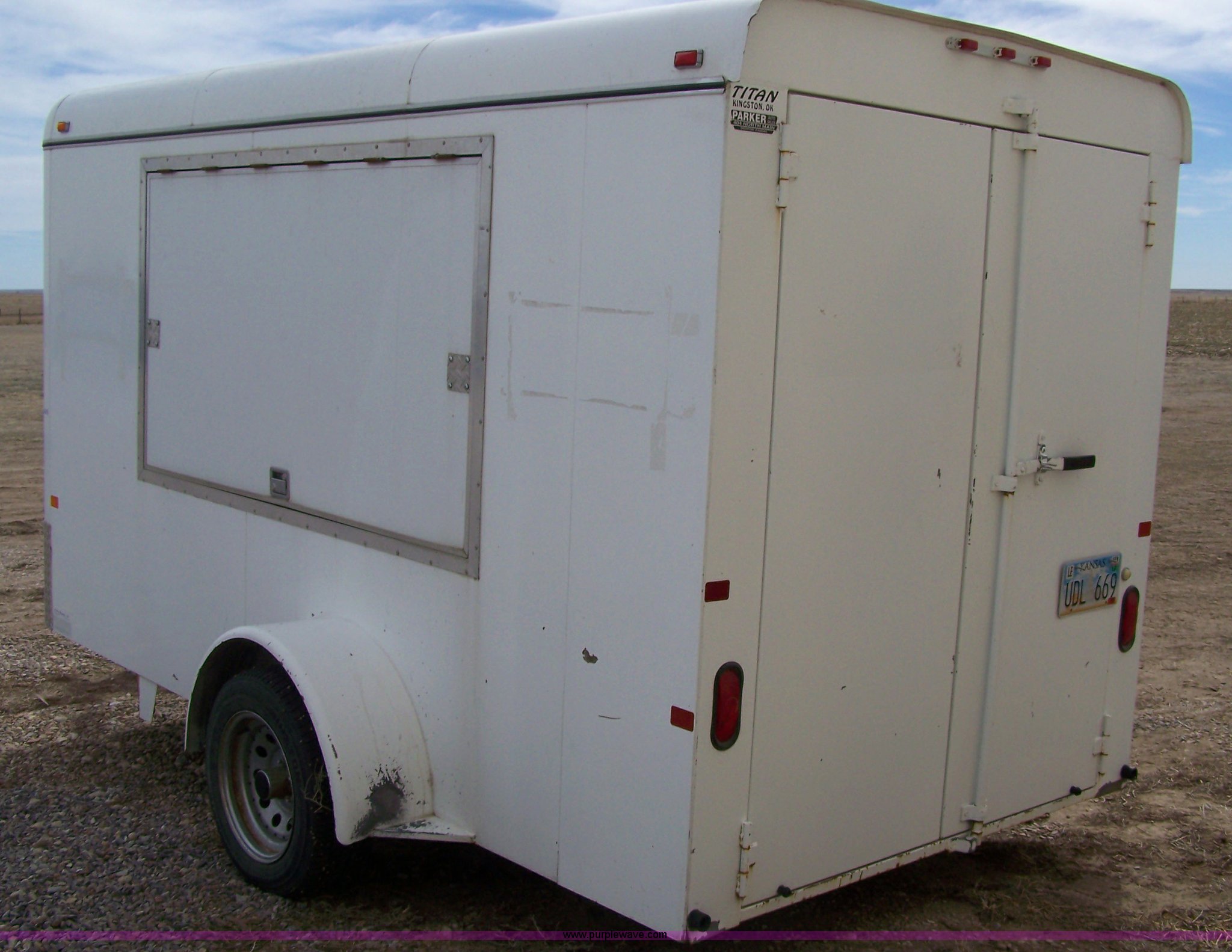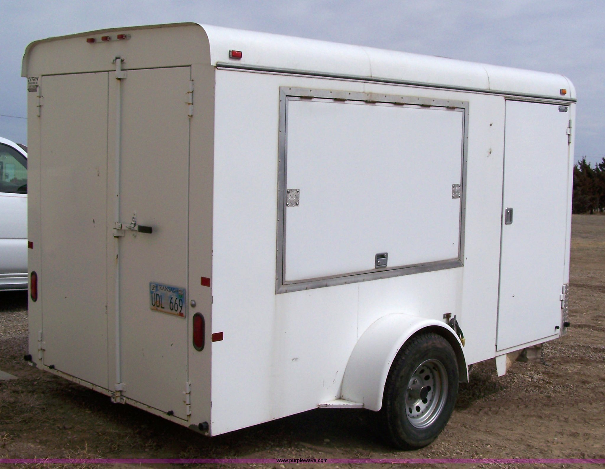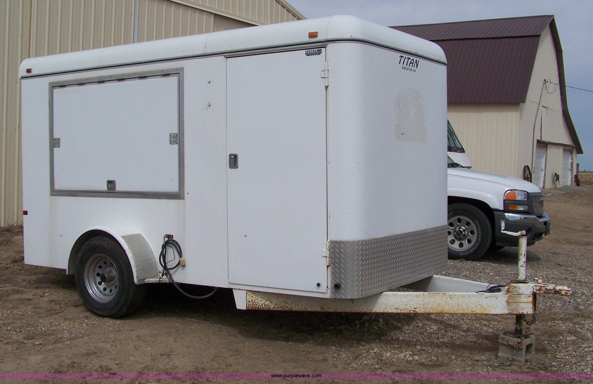 Purple Wave is selling a used Enclosed Cargo Trailer in Kansas. This item is a 2001 Titan 6x12 cargo trailer with the following: 3,500 lb axles, 110 volt power, Panel box, Roof vent, 35" side door, Lift up vendor windows, 2" ball hitch