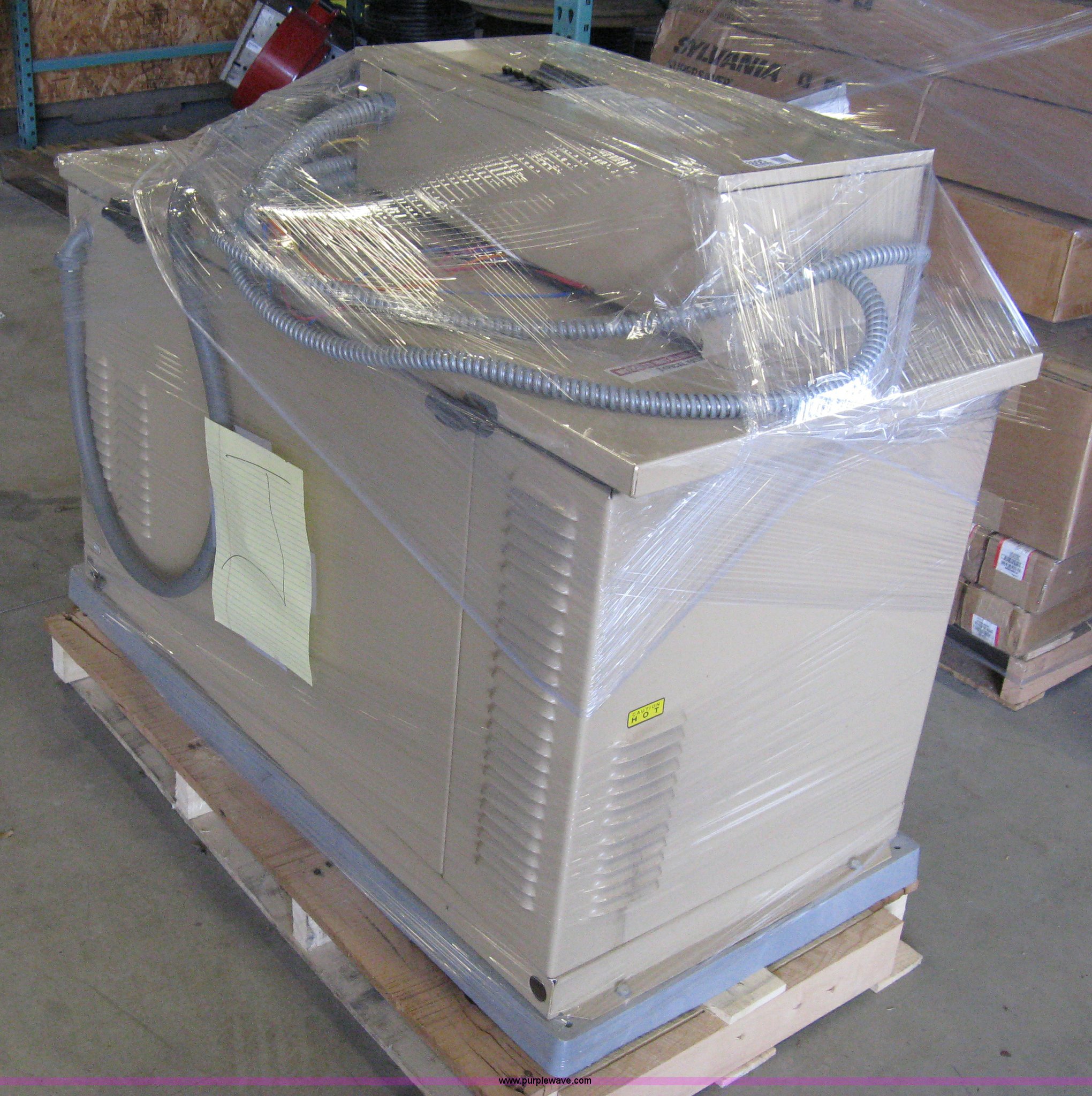 Purple Wave is selling a used Generator Set in Kansas. This item is a Generac Power Systems Guardian Plus residential generator with the following: Natural gas or LP, Interior transfer switch, breaker box, Exterior disconnect, Model 04389-3