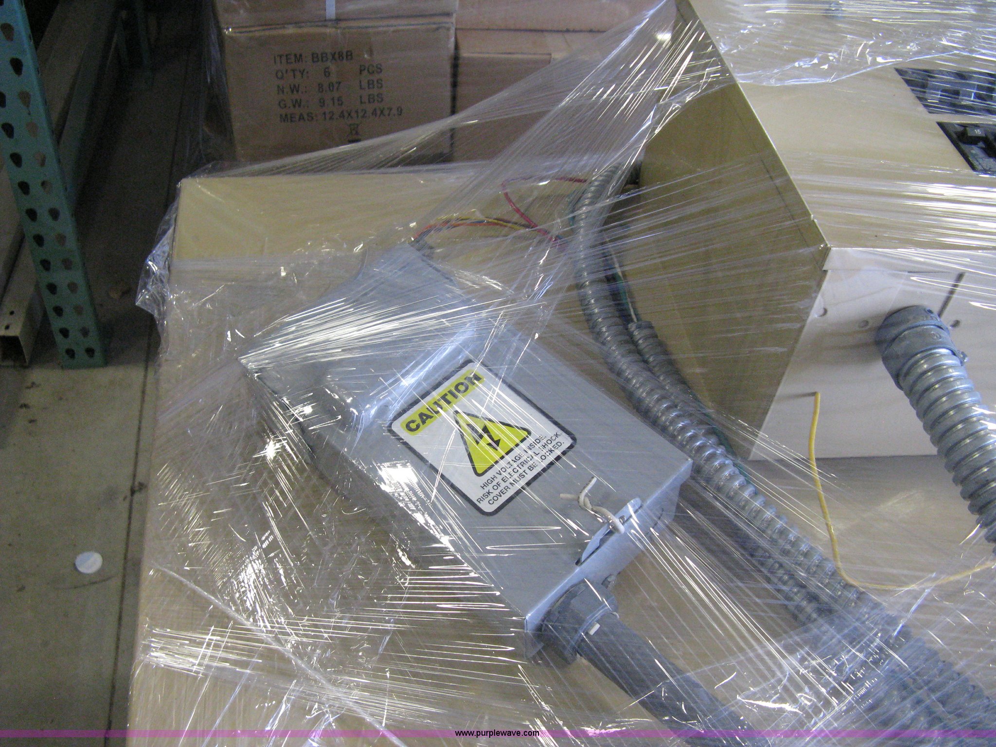 Generac Power Systems Guardian Plus residential generator. Natural gas or LP, Interior transfer switch, breaker box, Exterior disconnect, Model 04389-3. Generator bolted to pad Cabinet dimensions 2'W x 4'L x 26"H, 7,000 watt, 120/240 AC volts, 58.3/29.2 amps, Manual included, Serial 4083355. Shipping quotes available. M & J Electric. 1444 S St. Clair, Building D. Wichita, KS 67213