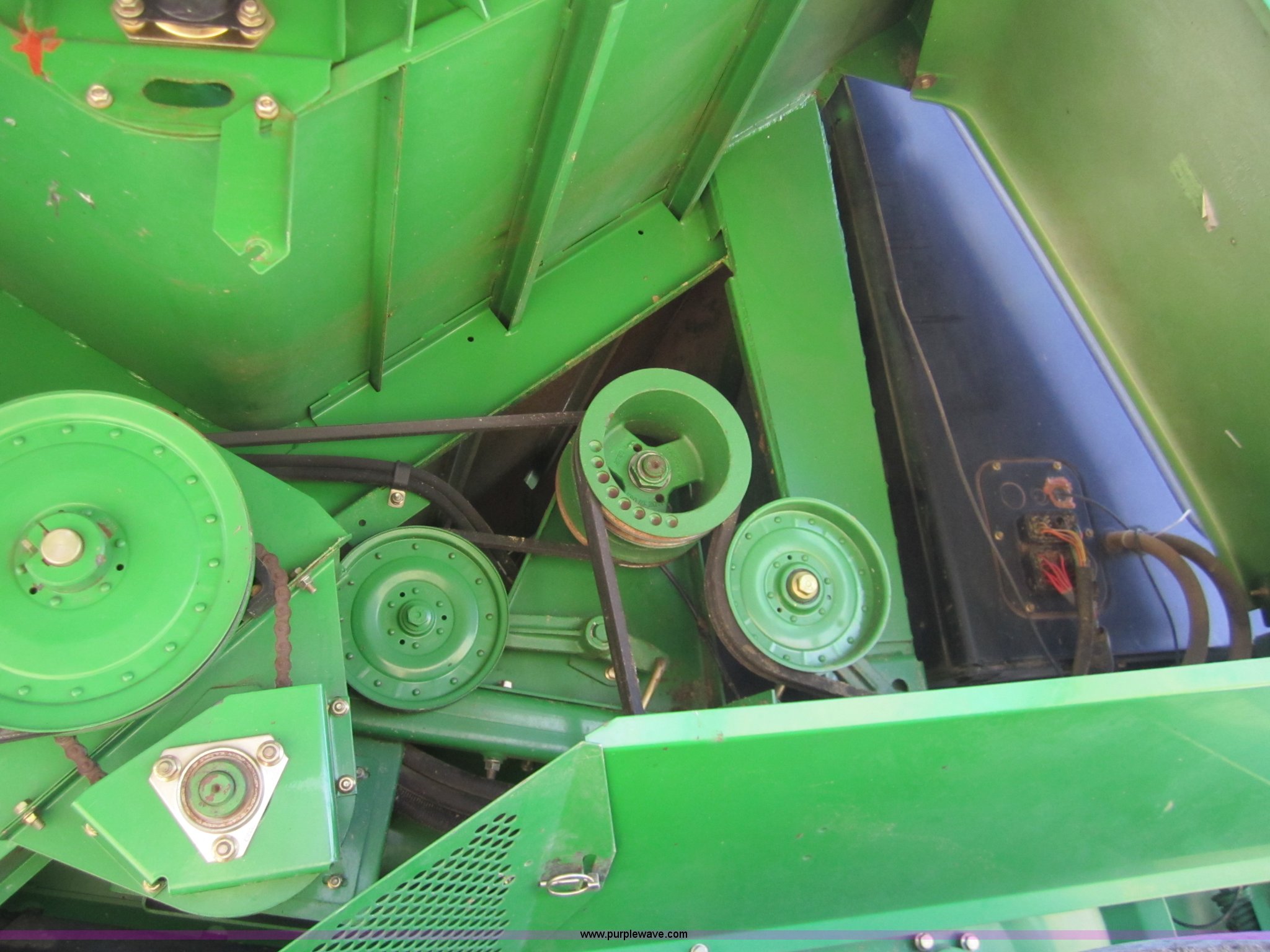 Purple Wave is selling a used Combine in Texas. This item is a 2002 John Deere 9750 STS combine with the following: 3,519 engine hours, 2,525 separator hours, John Deere 325hp six cylinder turbocharged diesel engine, Model 6081HH012, Three speed hydrostatic transmission, Quick Tach header coupler, 300 bushels bin capacity, Bin extensions, Straw spreader, Work lights, Service lights with alternator, 20ft unloading auger, 210 gallon fuel capacity, Suspension seat and instructor seat, Greenstar enabled, 800/70R38 drive tires, 18.4-26 rear tires, Deluxe cab, Heat and AC, AM/FM/CD, Tilt steering wheel, Operator's manual, Serial H09750S700916, Stock # 41915