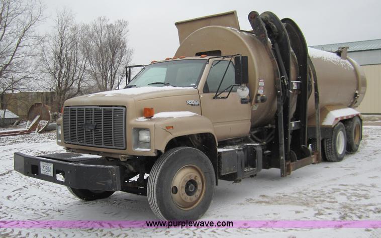 Purple Wave is selling a used Vacuum Truck in Nebraska. This item is a 1995 Chevrolet Kodiak refuse truck with the following: 115,052 miles on odometer, Caterpillar 3116 6.6L six cylinder diesel engine, Allison automatic transmission, AC and heat, AM/FM/CD, Air ride seat, Air ride drop axle, Spring ride front axle, Dual fuel tanks, Air brakes, ImPac 1P25-LH trash compactor, 25 cu. yd. capacity, Three yd. gate for 28 yd., 24'6"L, GVWR 36,220 lbs, 11R22.5 tires