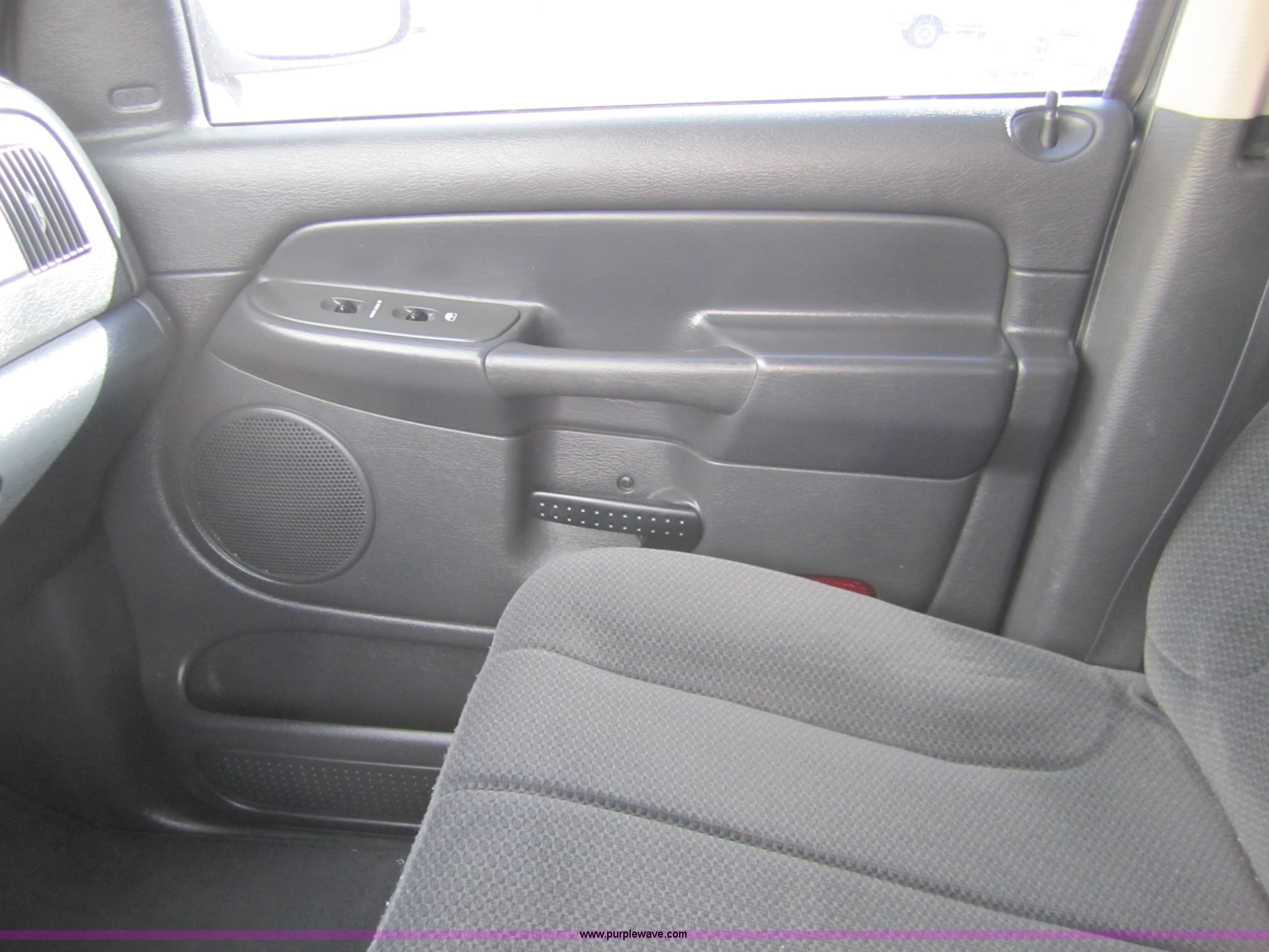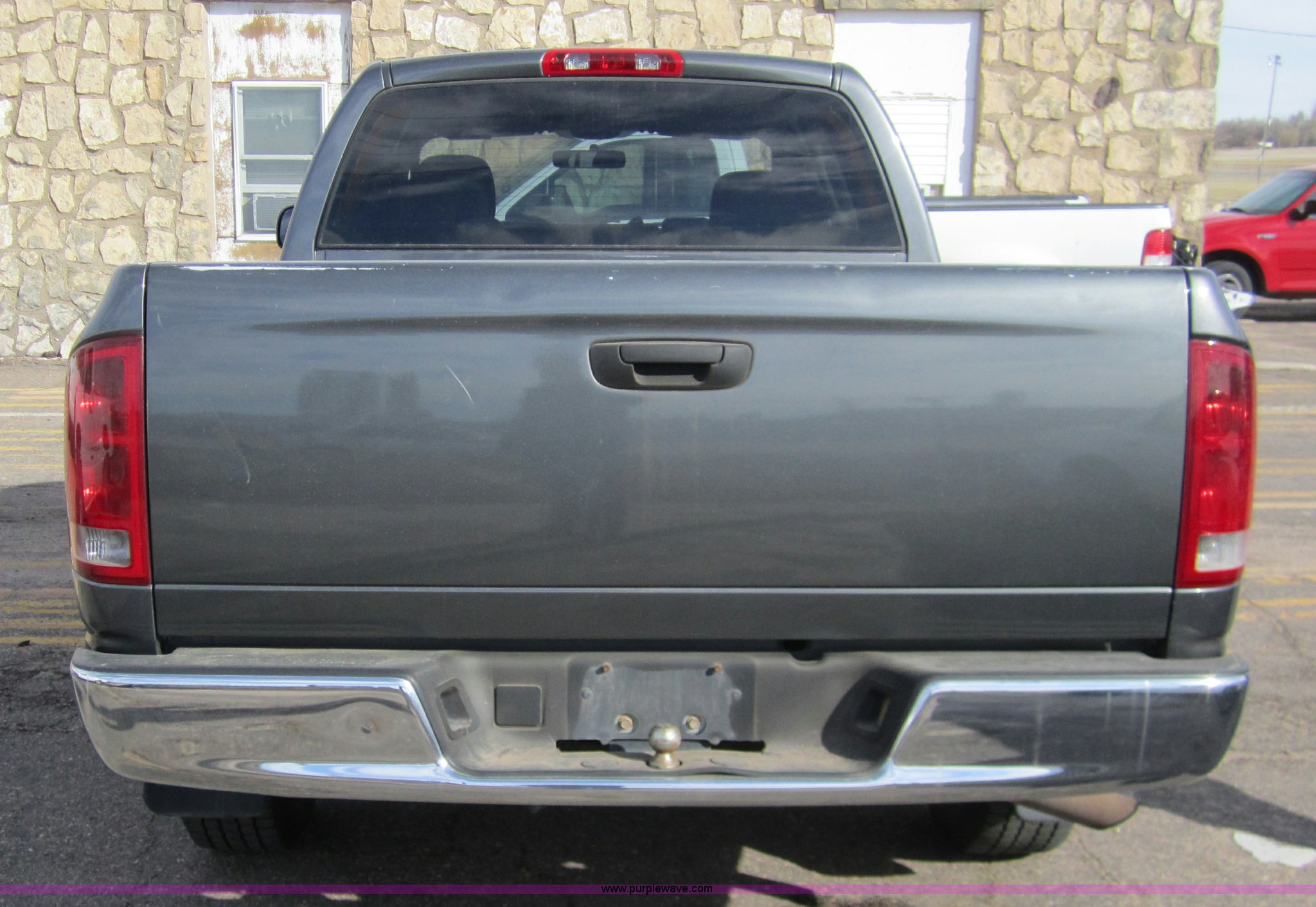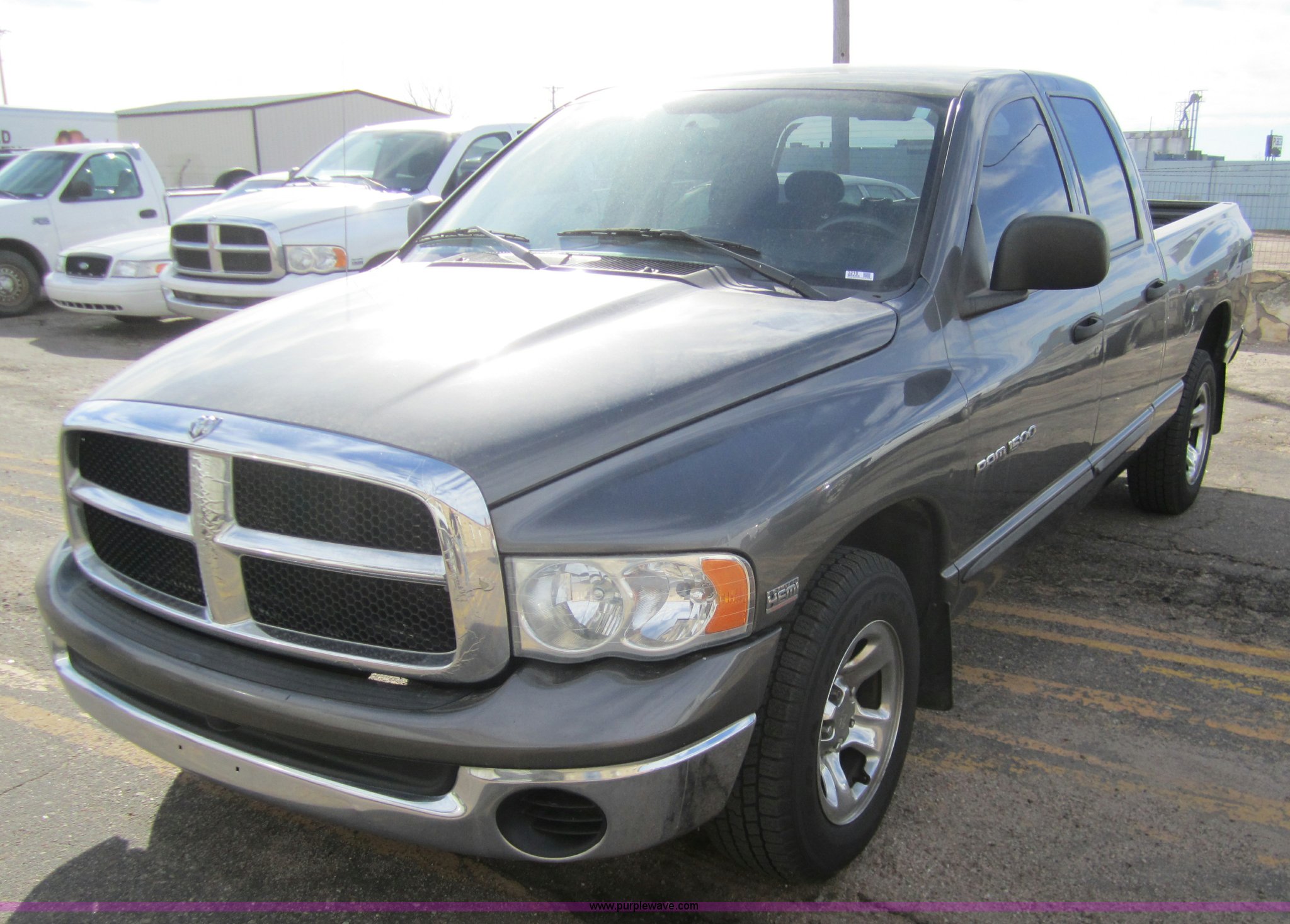 Purple Wave is selling a used 1/2 Ton Pickup or Van in Kansas. This item is a 2004 Dodge Ram 1500 Quad Cab pickup truck with the following: 208,142 miles on odometer, Hemi 5.7L Magnum V8 MPI gas engine, Automatic transmission, Two wheel drive, AC and heat, Tilt, Cruise, AM/FM/CD, Power windows, locks, and mirrors, Pickup bed, LT245/70R17 tires, Unknown possible rear end problems,rear end makes noise during acceleration, water found in rear end