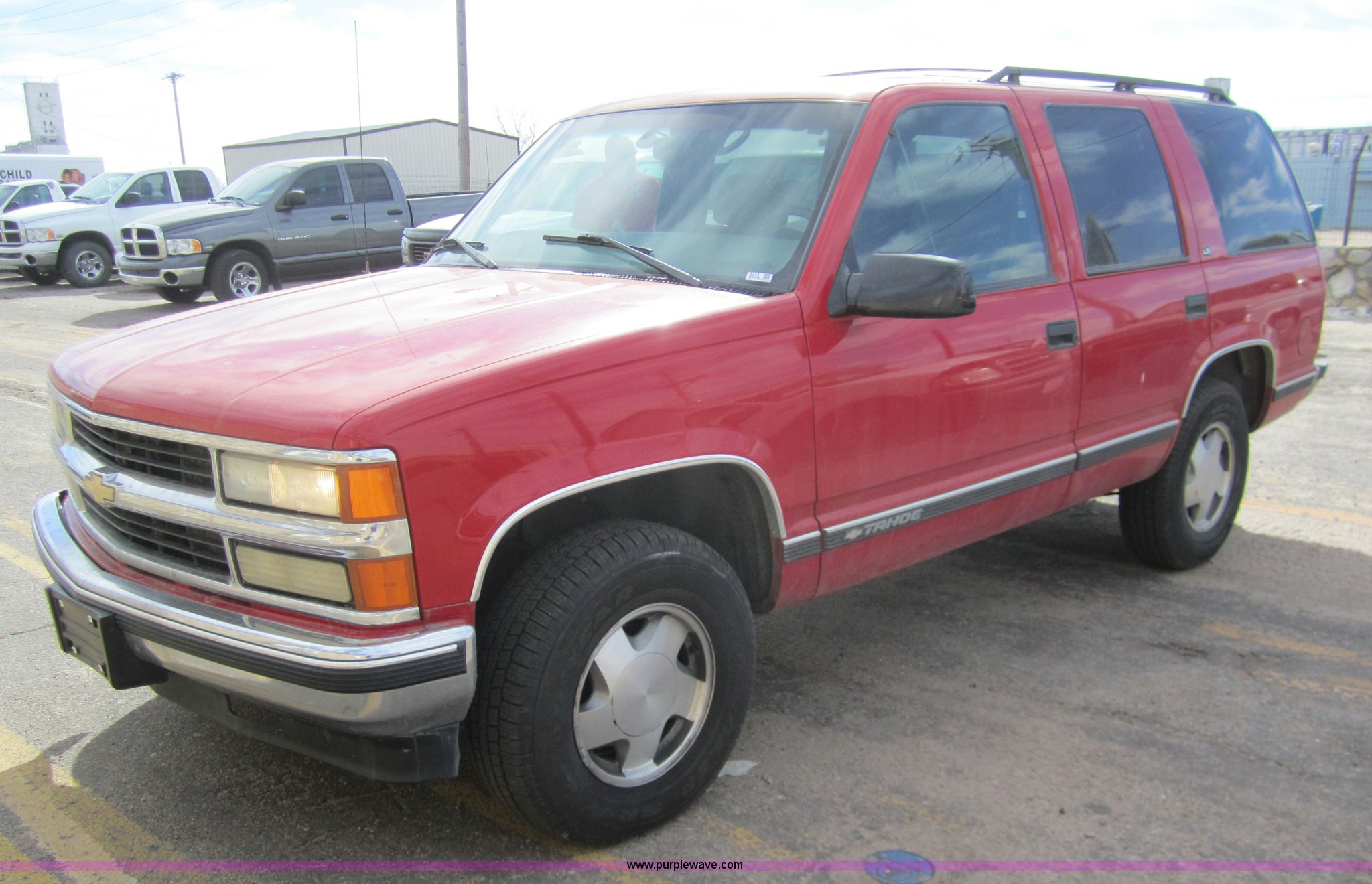 1999 Chevrolet Tahoe K1500 LS SUV. 121,990 miles on odometer, 5.7L V8 SFI gas engine, Automatic transmission, Four wheel drive, AC and heat, Tilt, Cruise, AM/FM/Cassette, Power windows, locks, and mirror, P245/75R16 tires. 1GNEK13RXXR149335. Ford County. 100 Gunsmoke St. Dodge City, KS 67801