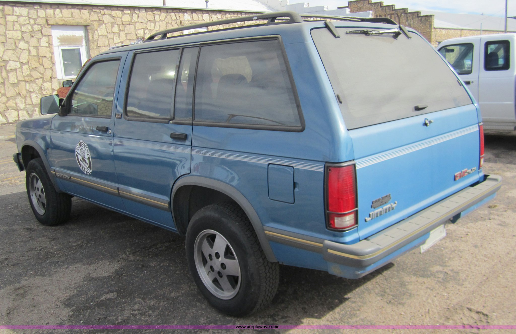 Purple Wave is selling a used Passenger Vehicle in Kansas. This item is a 1993 GMC S15 Jimmy SLE SUV with the following: 104,451 miles on odometer, Vortec 4.3L V6 CPI gas engine, Automatic transmission, Four wheel drive, AC and heat, Tilt, Cruise, AM/FM/Cassette, Power windows and locks, P205/75R15 tires, Decals will be removed, Will not keep battery charged