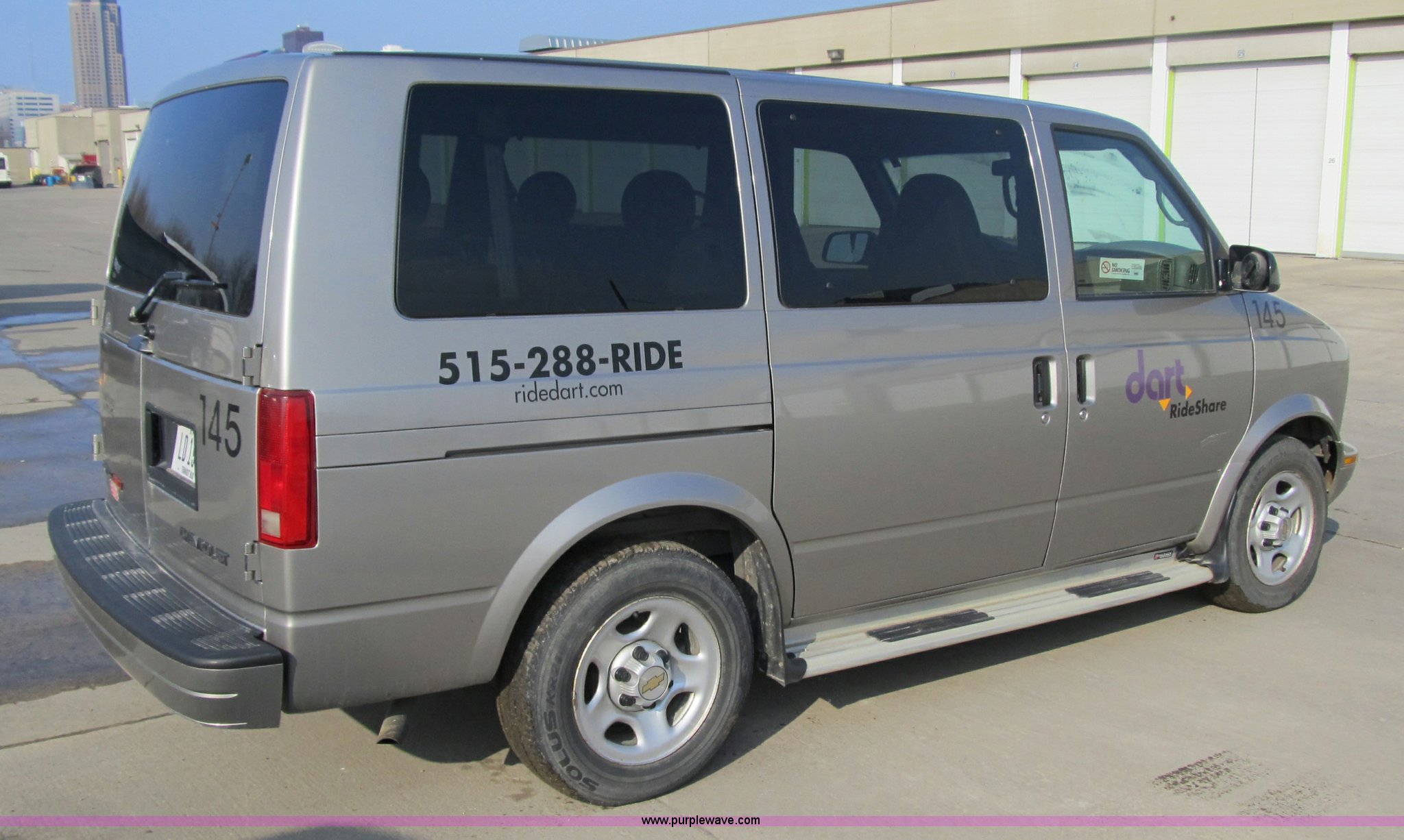 Purple Wave is selling a used Passenger Vehicle in Iowa. This item is a 2005 Chevrolet Astro van with the following: 139,022 miles on odometer, 4.3L V6 CPI gas engine, Automatic transmission, All wheel drive, Tow package, AC and heat, Tilt, Cruise, AM/FM, Power windows, locks, and mirrors, P215/70R16 tires