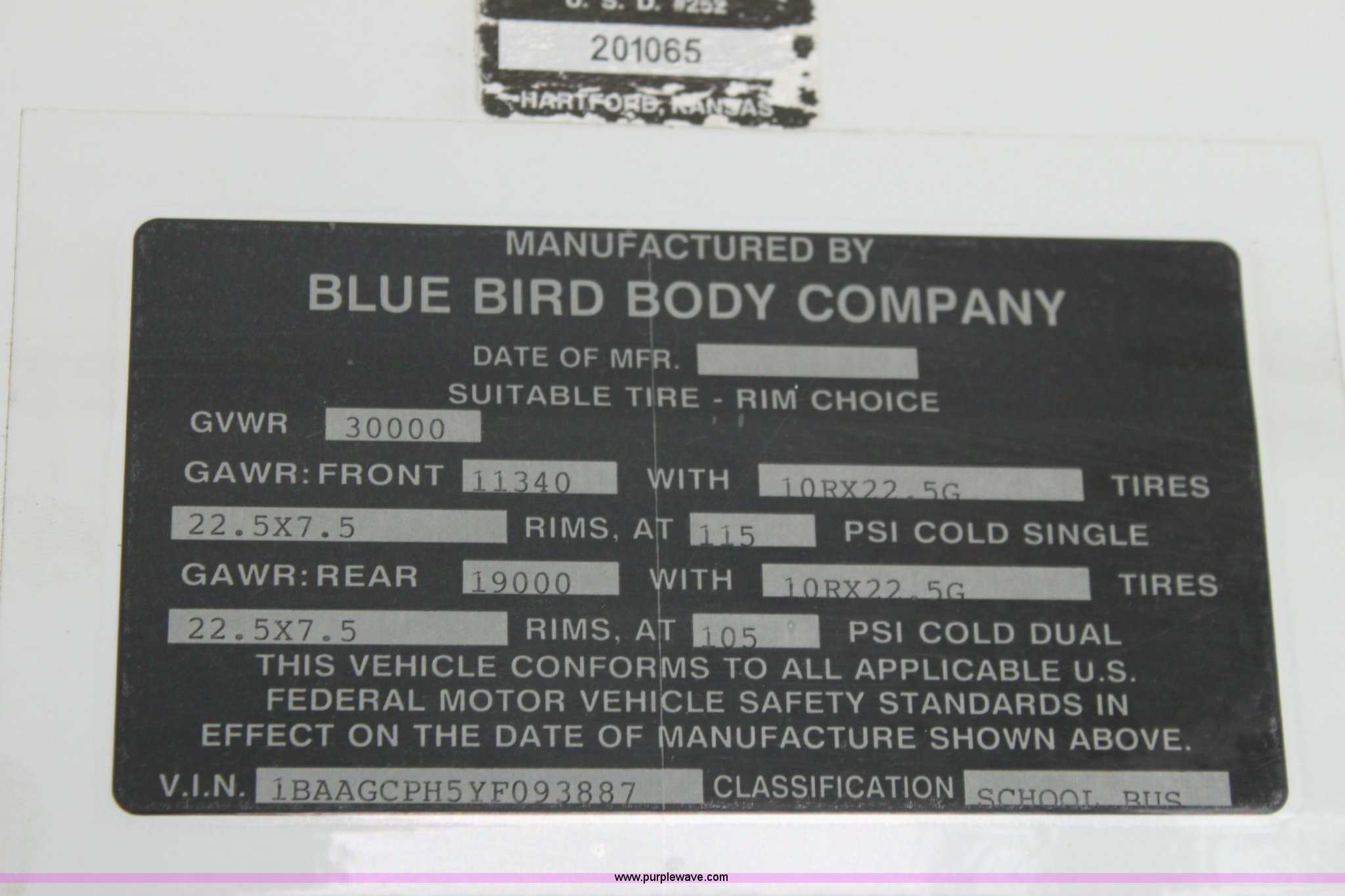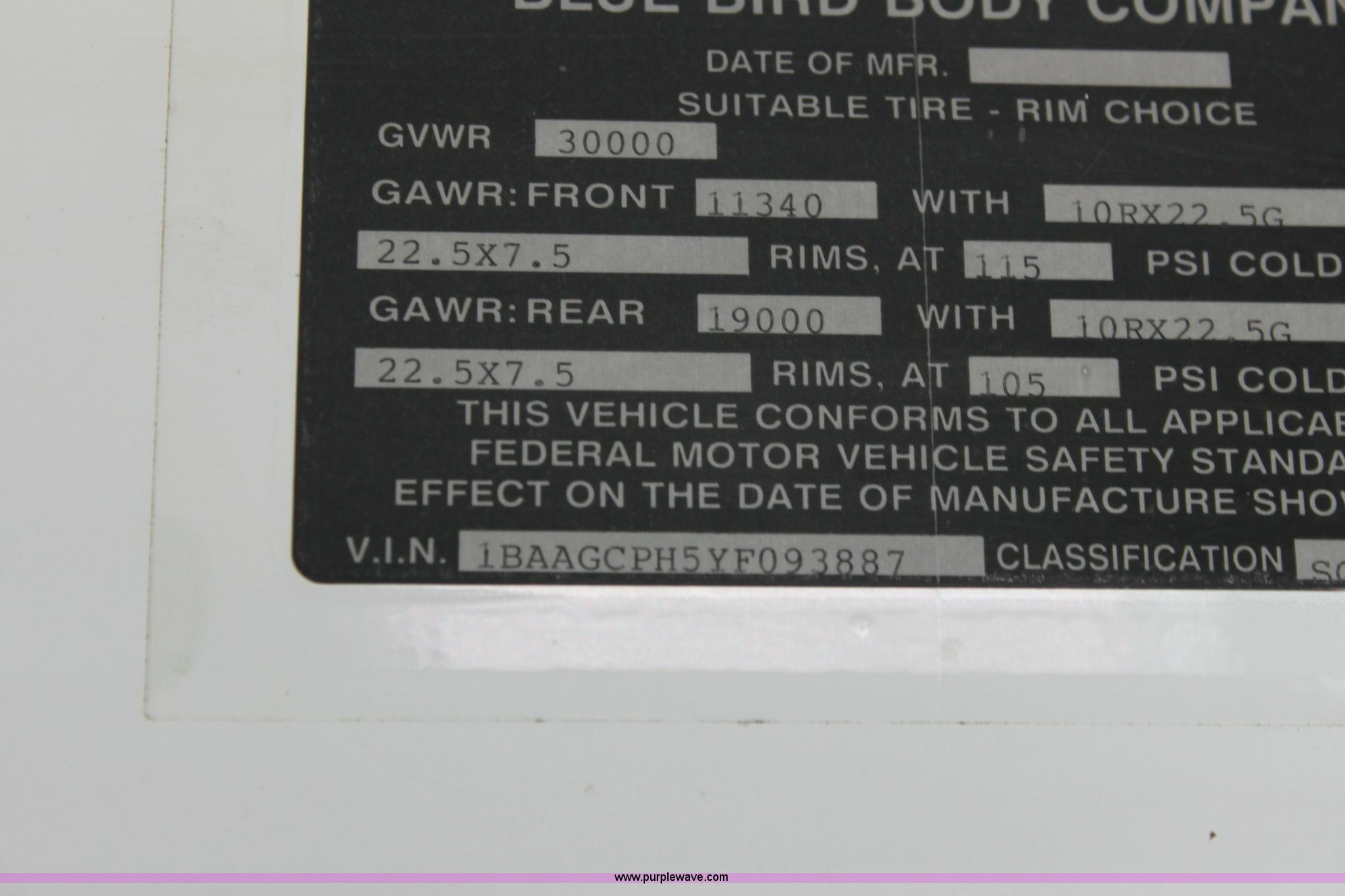 Take a look at this used 2000 Blue Bird TC2000 school bus being sold on April 12th, 2011 in the SOLD! April 12 Government Internet Auction made by Blue Bird. Take a look at all of the item information below or take a look at similar auctions for Transit Vehicles.