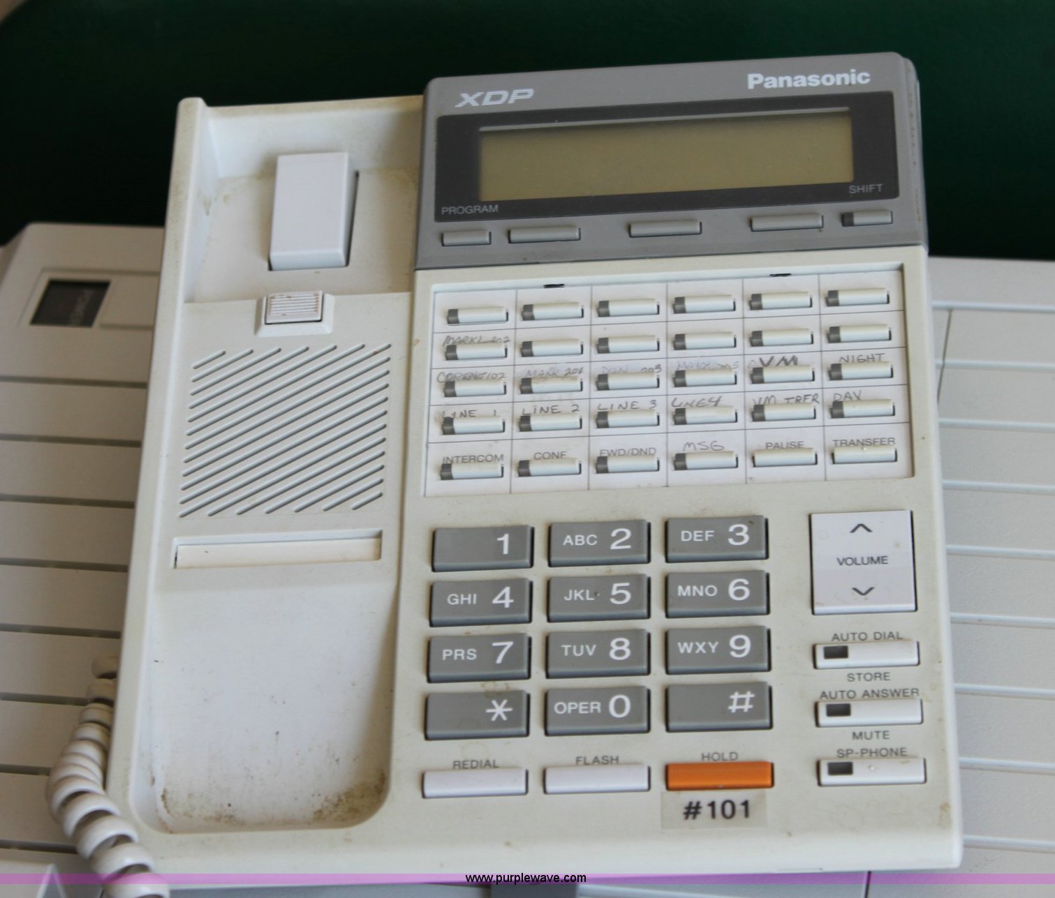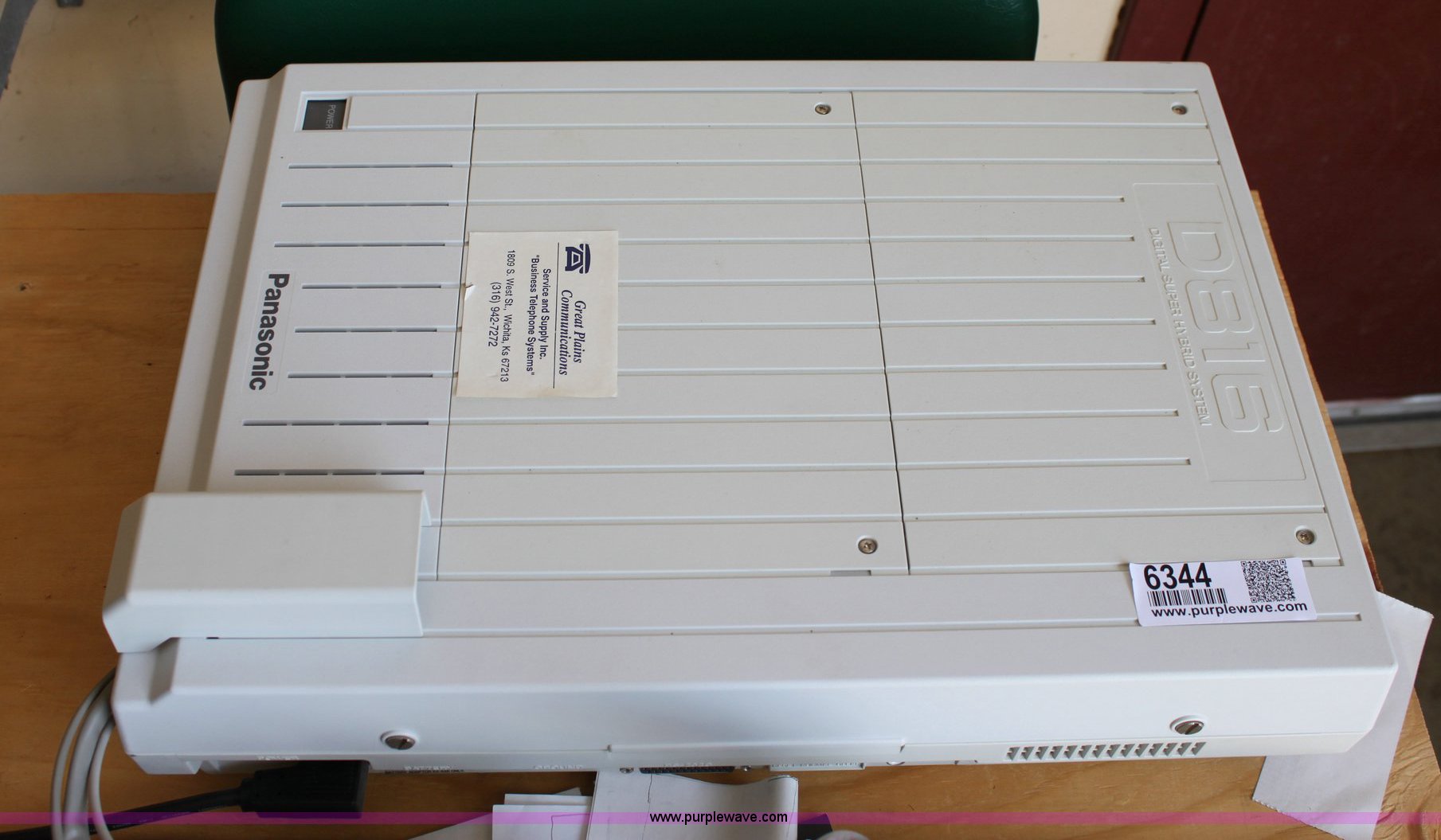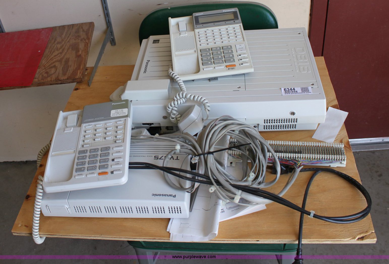Purple Wave is selling a used Office Supplies and Equip. in Kansas. This item is a Panasonic phone system with the following: (7) phones, (3) non display multi line phones, (4) display multi line phones, Panasonic TVS75 voice processing system, Panasonic D816 digital super-hybrid system