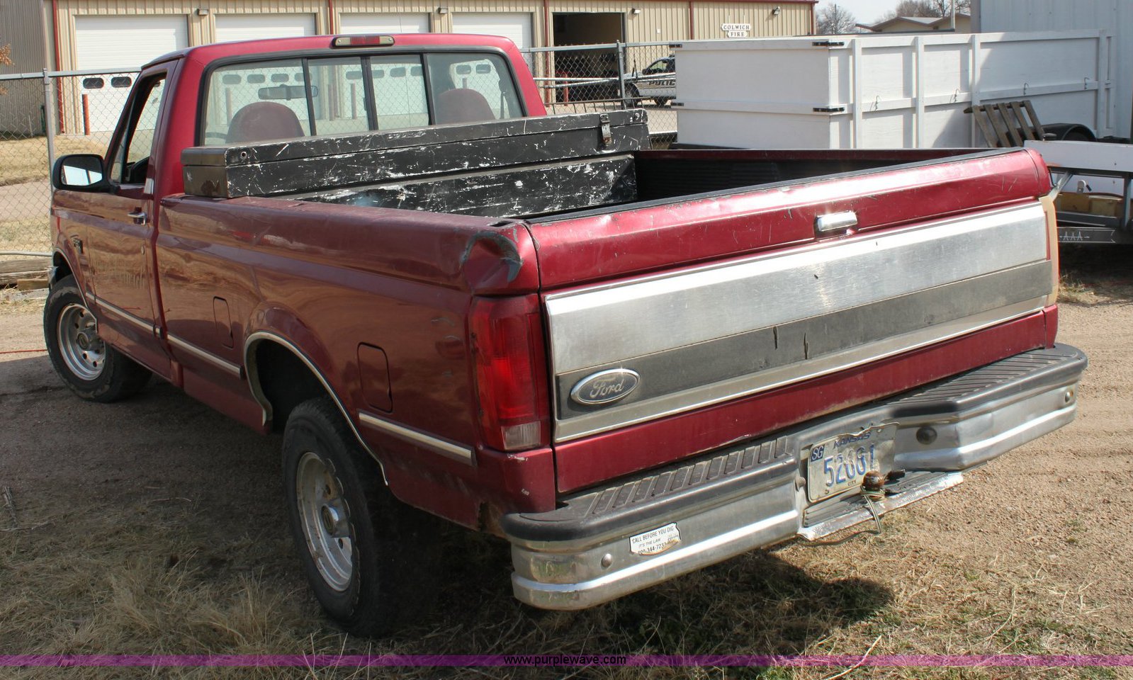 Purple Wave is selling a used Passenger Vehicle in Kansas. This item is a 1995 Ford F150 XLT pickup truck with the following: 123,440 miles on odometer, 5.0L V8 EFI gas engine, Automatic transmission, Two wheel drive, AC and heat, Tit, Cruise, AM/FM/Cassette, Power windows, locks, and seats, Pickup bed, Cross bed toolbox, 235/75R15 tires, Driver's inside door handle broken