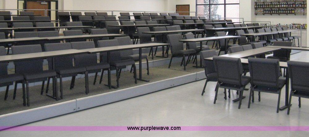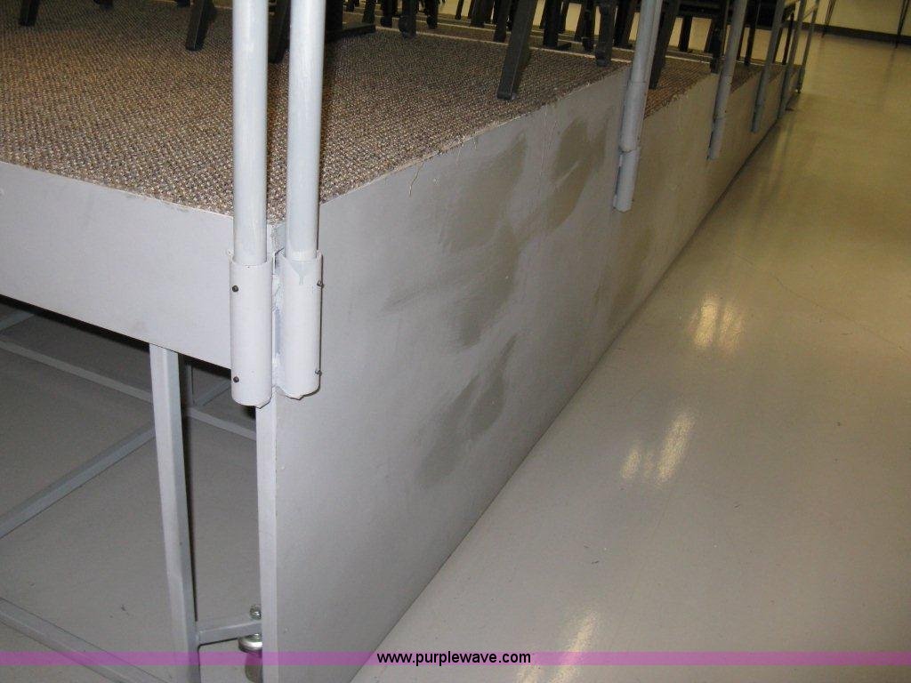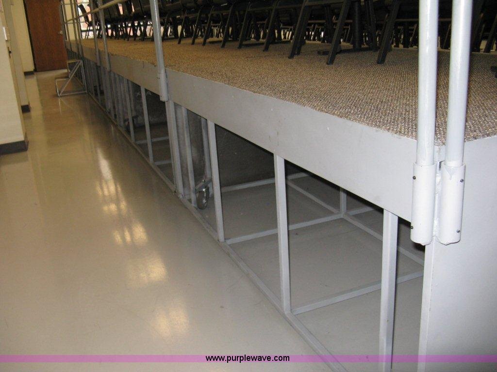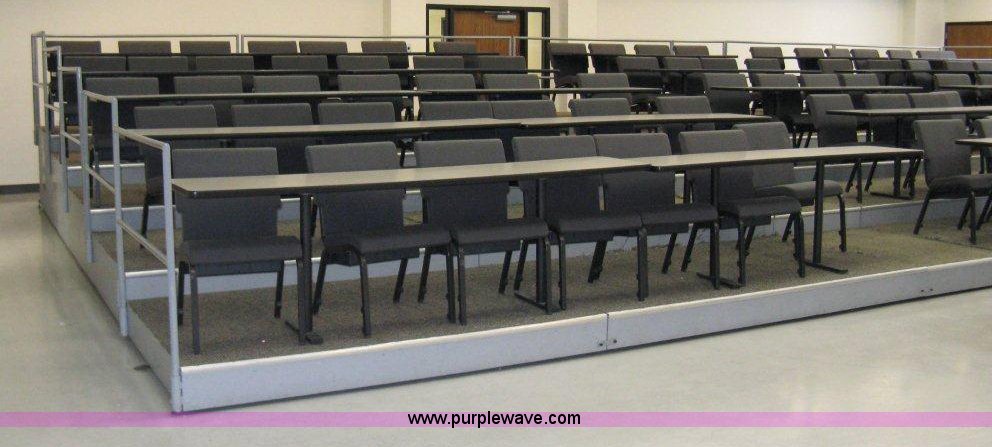 Purple Wave is selling a used Tools in Kansas. This item is a (5) sections of risers with the following: 4.5'W risers, On casters, Tables and chair not included