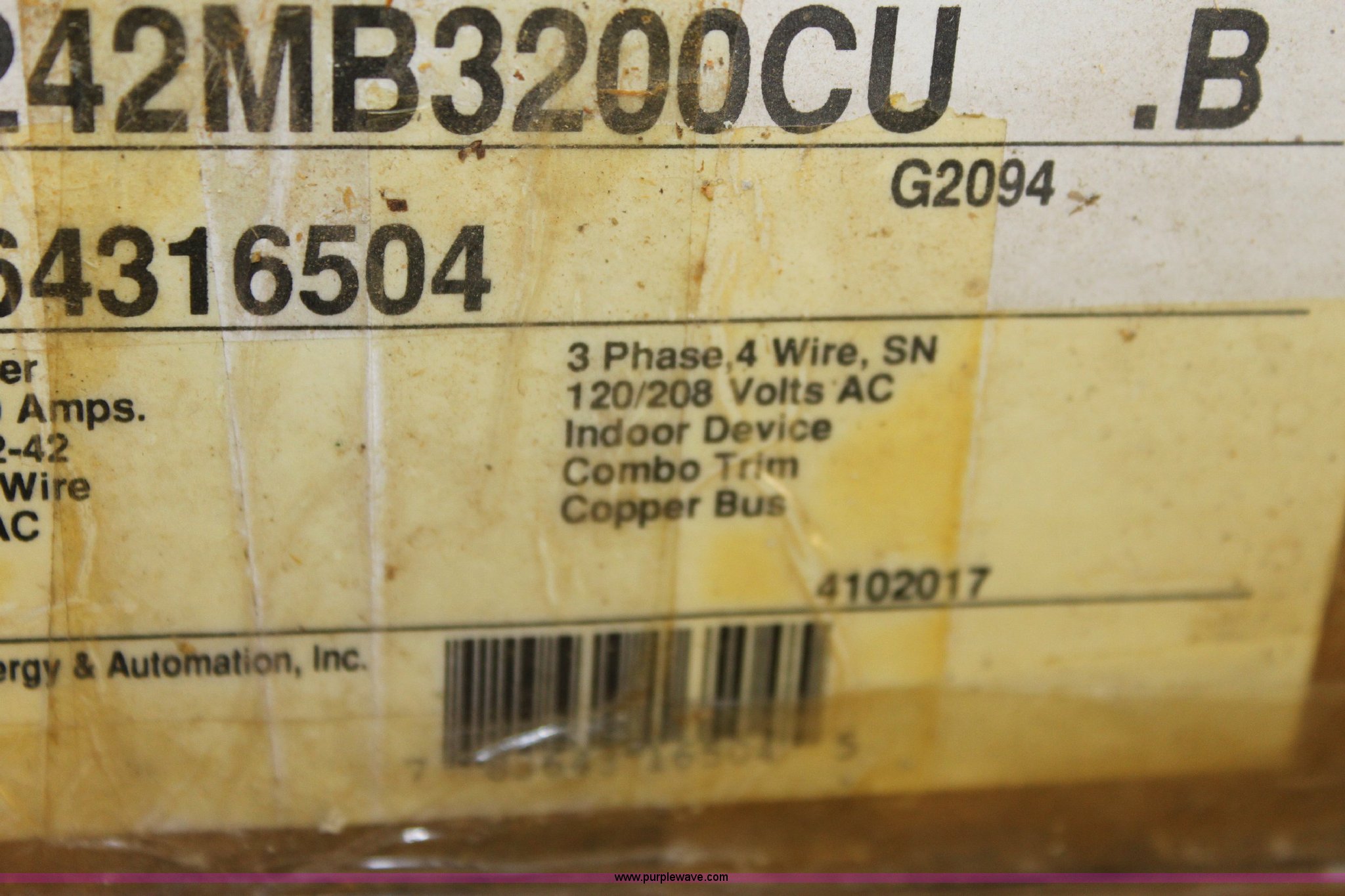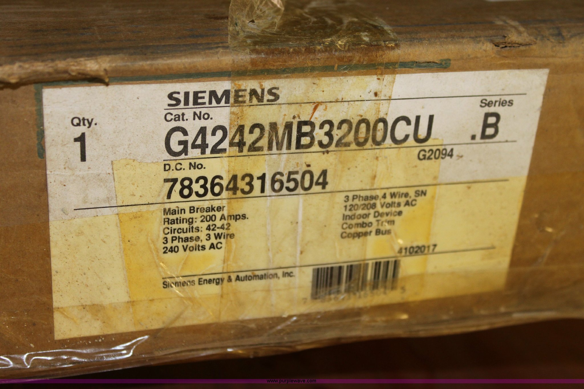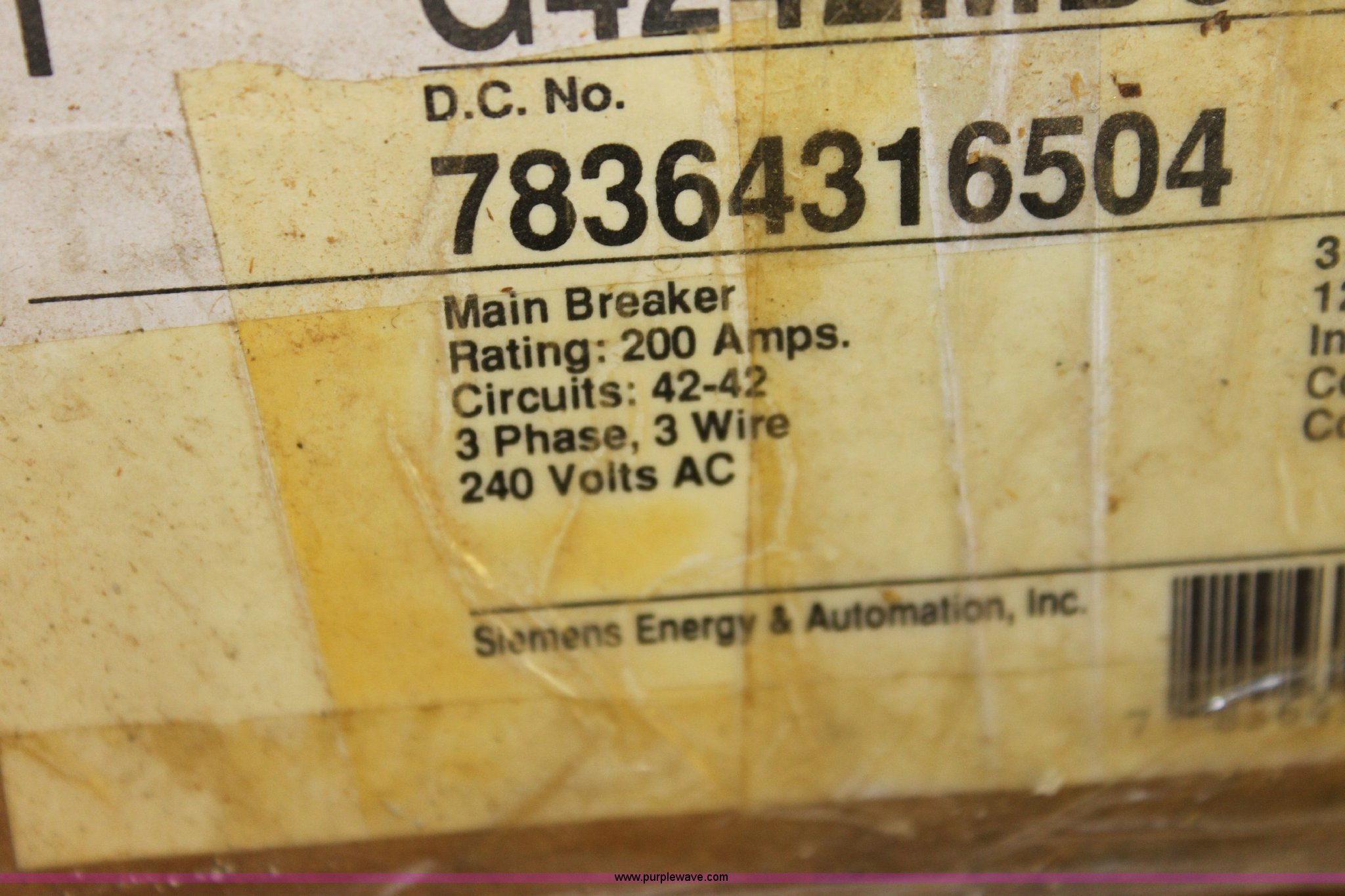 Purple Wave is selling a used Electronics in Kansas. This item is a Siemes three phase 200 amp breaker box with the following: 42 circuit, 240 volt AC