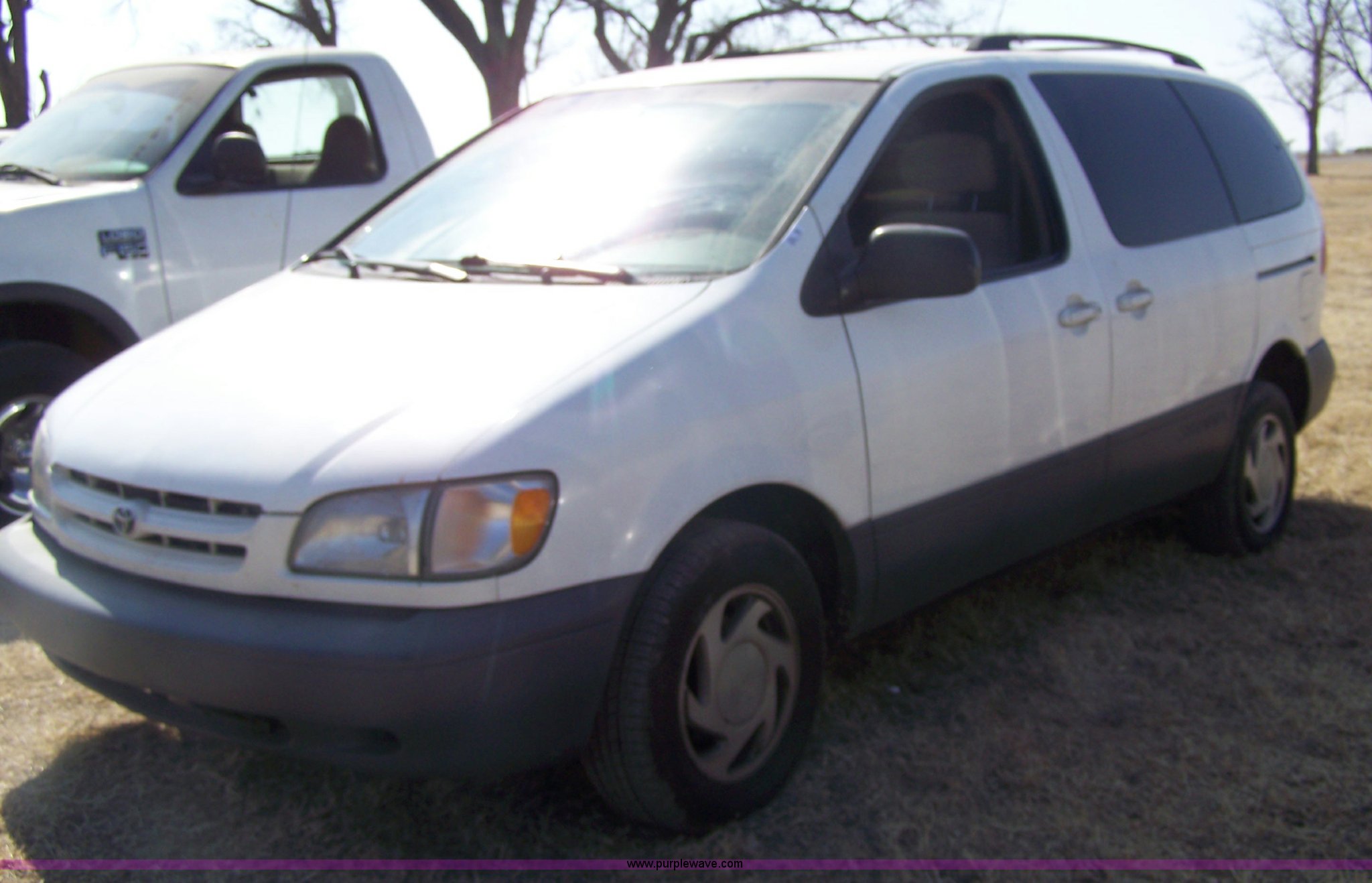 Purple Wave is selling a used Passenger Vehicle in Kansas. This item is a 2000 Toyota Sienna LE van with the following: 341,672 miles on odometer, 3.0L V6 MPI gas engine, AC and heat, Tilt, Cruise, AM/FM/CD, Power windows, locks, and mirrors, DVD player, Remote with key, New battery, P215/65R15 tires, Cosmetic damage, Seized vehicle