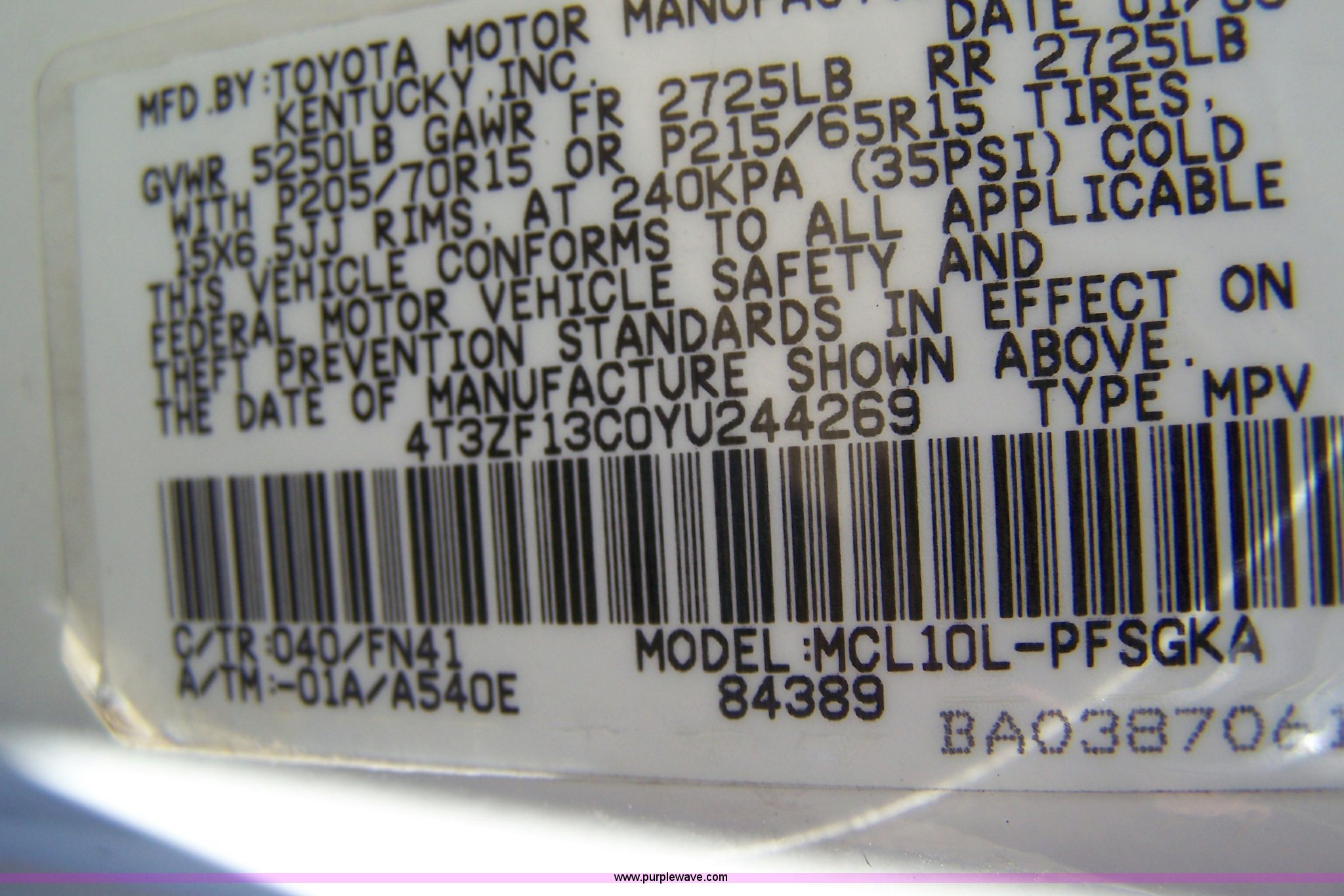 Take a look at this used 2000 Toyota Sienna LE van being sold on April 12th, 2011 in the SOLD! April 12 Government Internet Auction made by Toyota. Take a look at all of the item information below or take a look at similar auctions for Passenger Vehicles.