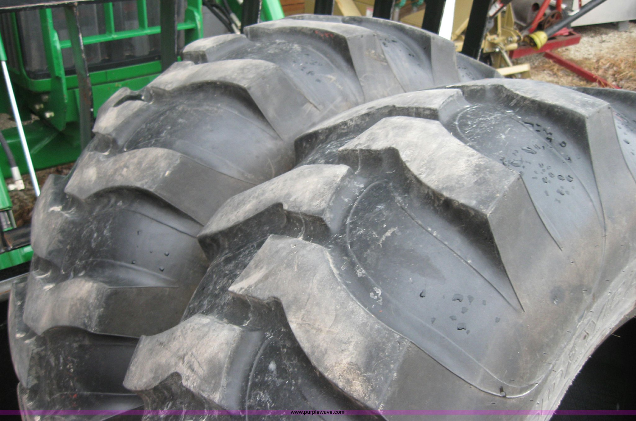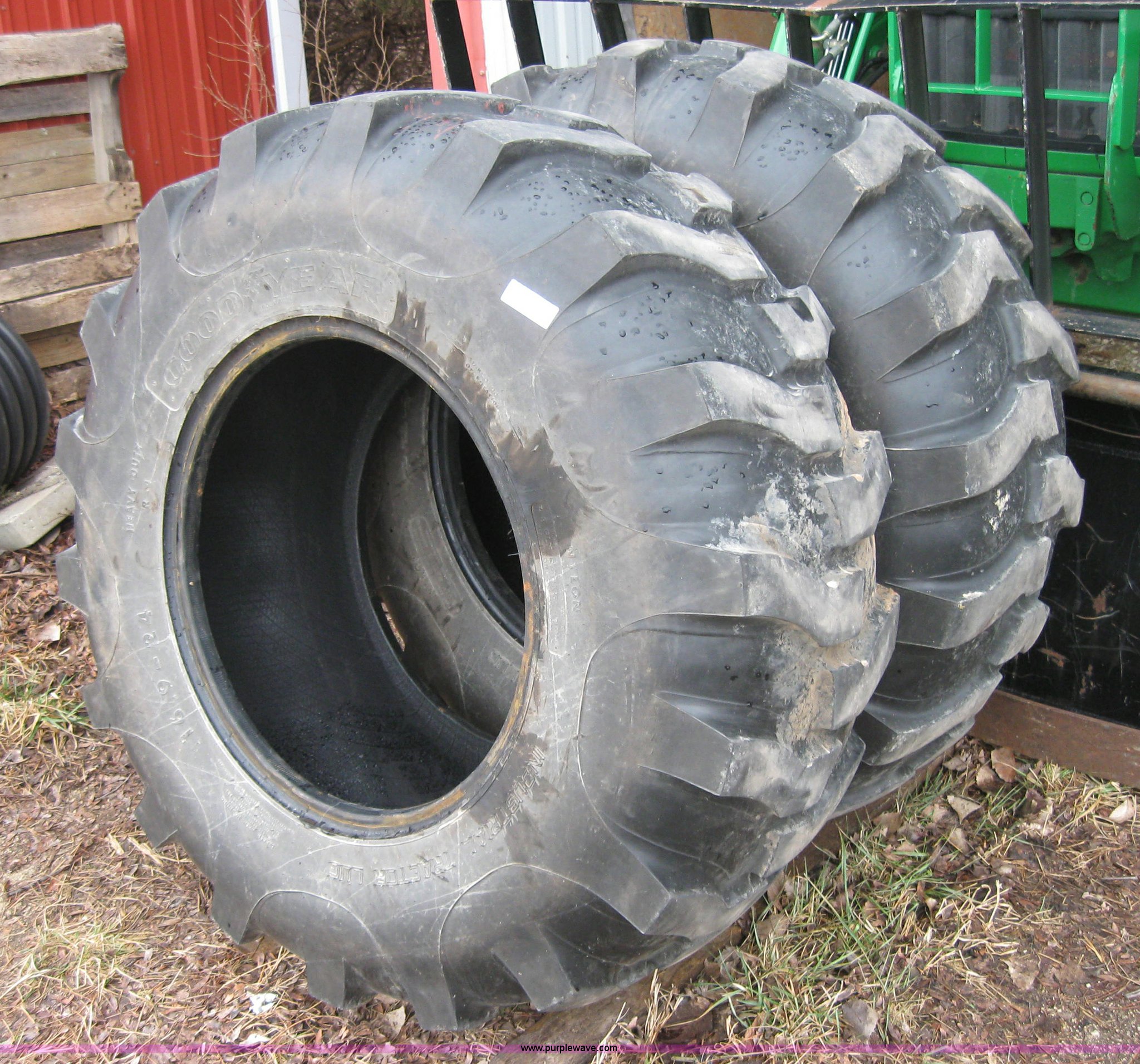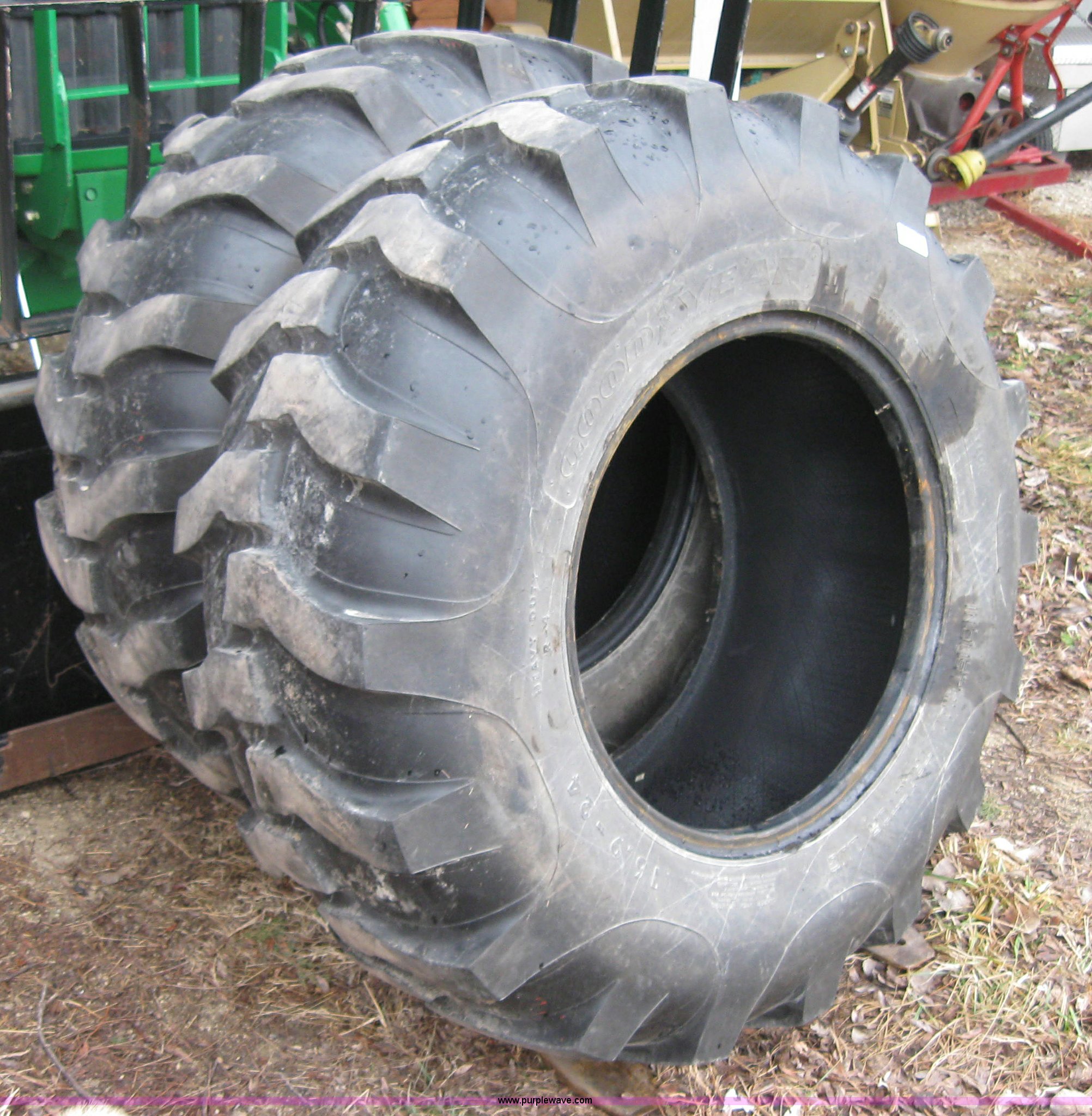 Purple Wave is selling a used Industrial Tires or Tracks in Kansas. This item is a (2) Goodyear heavy duty 16.9-24 tires with the following: Approx 700 miles