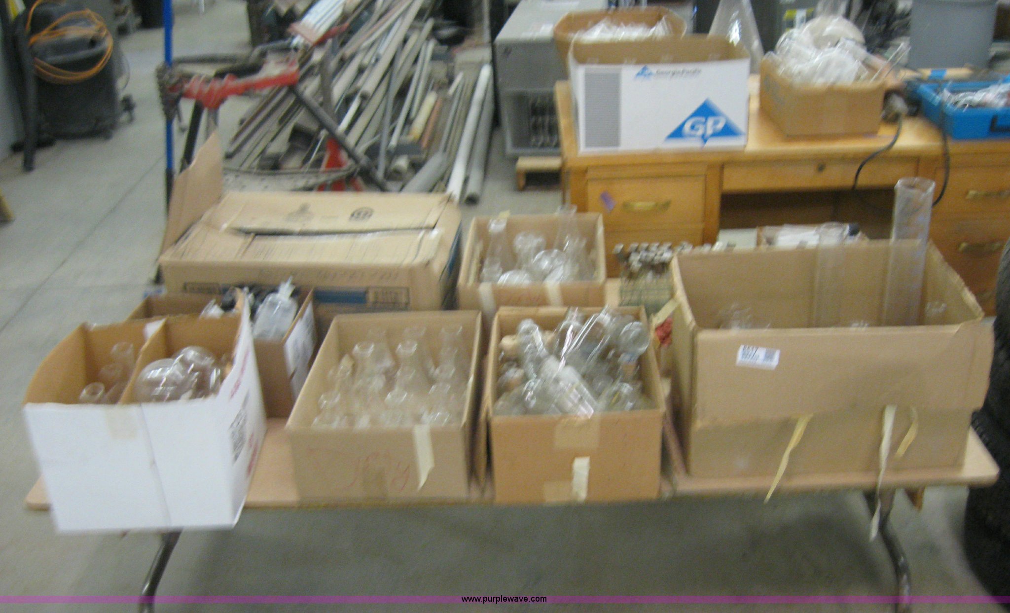 Purple Wave is selling a used Office Supplies and Equip. in Kansas. This item is a Assorted science laboratory glassware with the following: (16) boxes, Heater unit