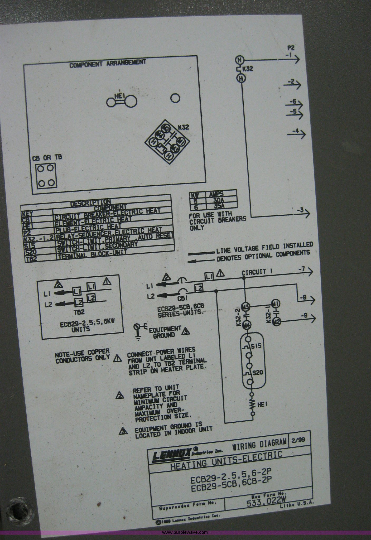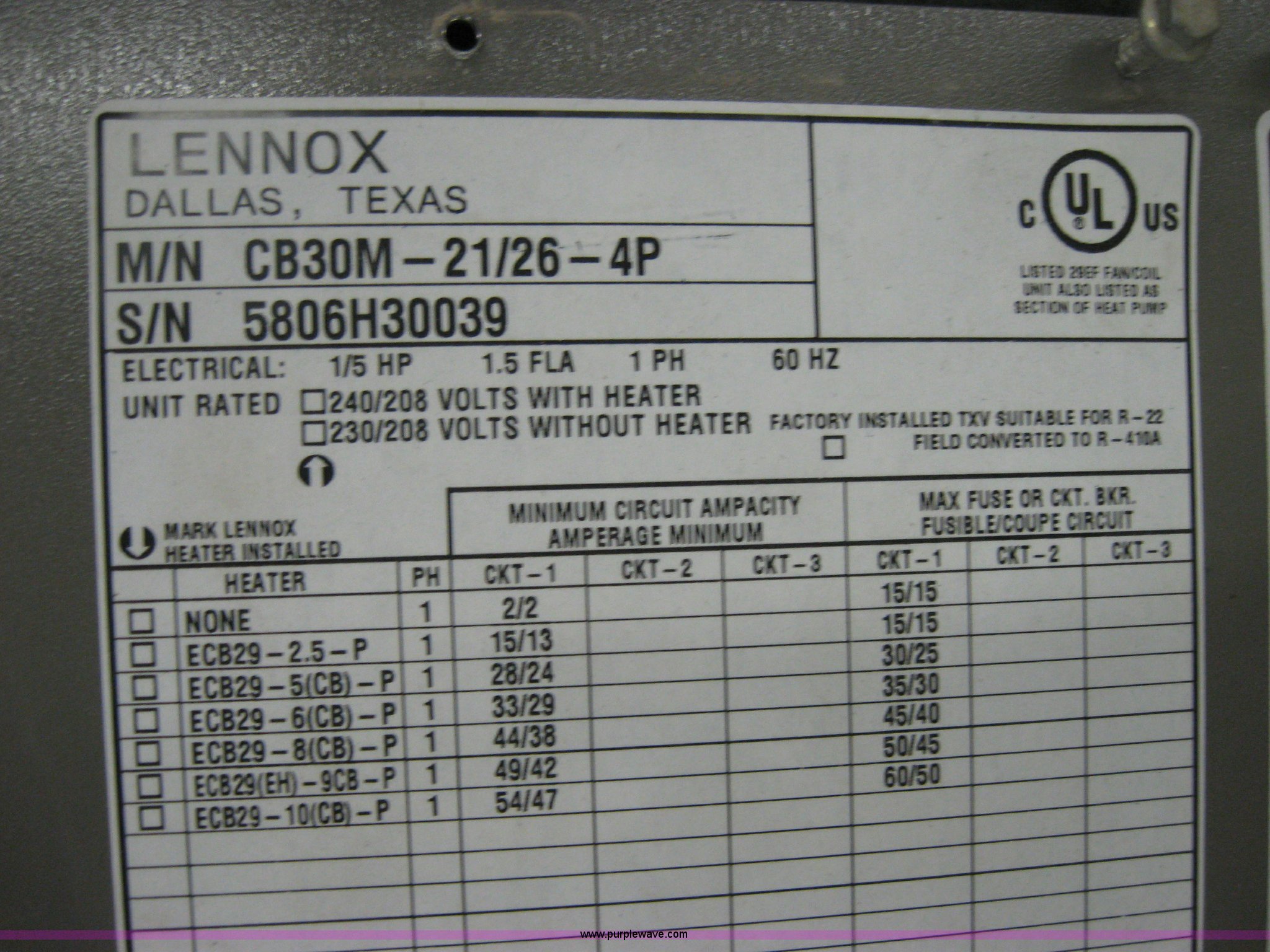 Purple Wave is selling a used Home Improvement in Kansas. This item is a Lennox Elite furnace with the following: Model CB30M-21/26-4P, 16.5"L x 20"W x 45"H, Serial 5806H30039