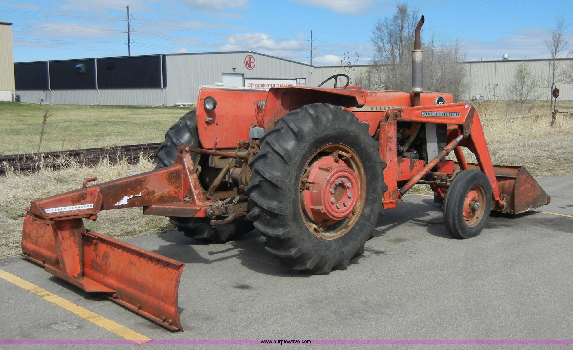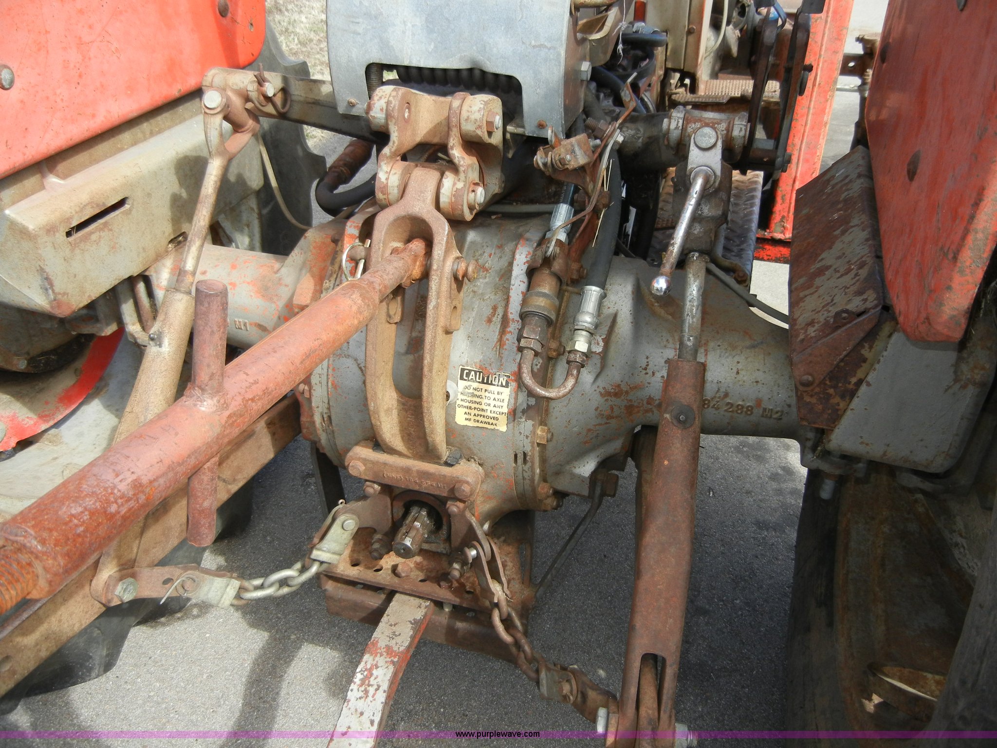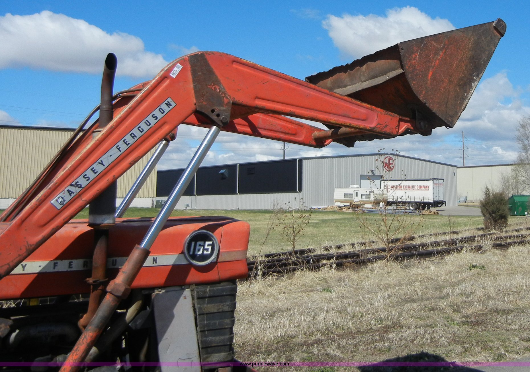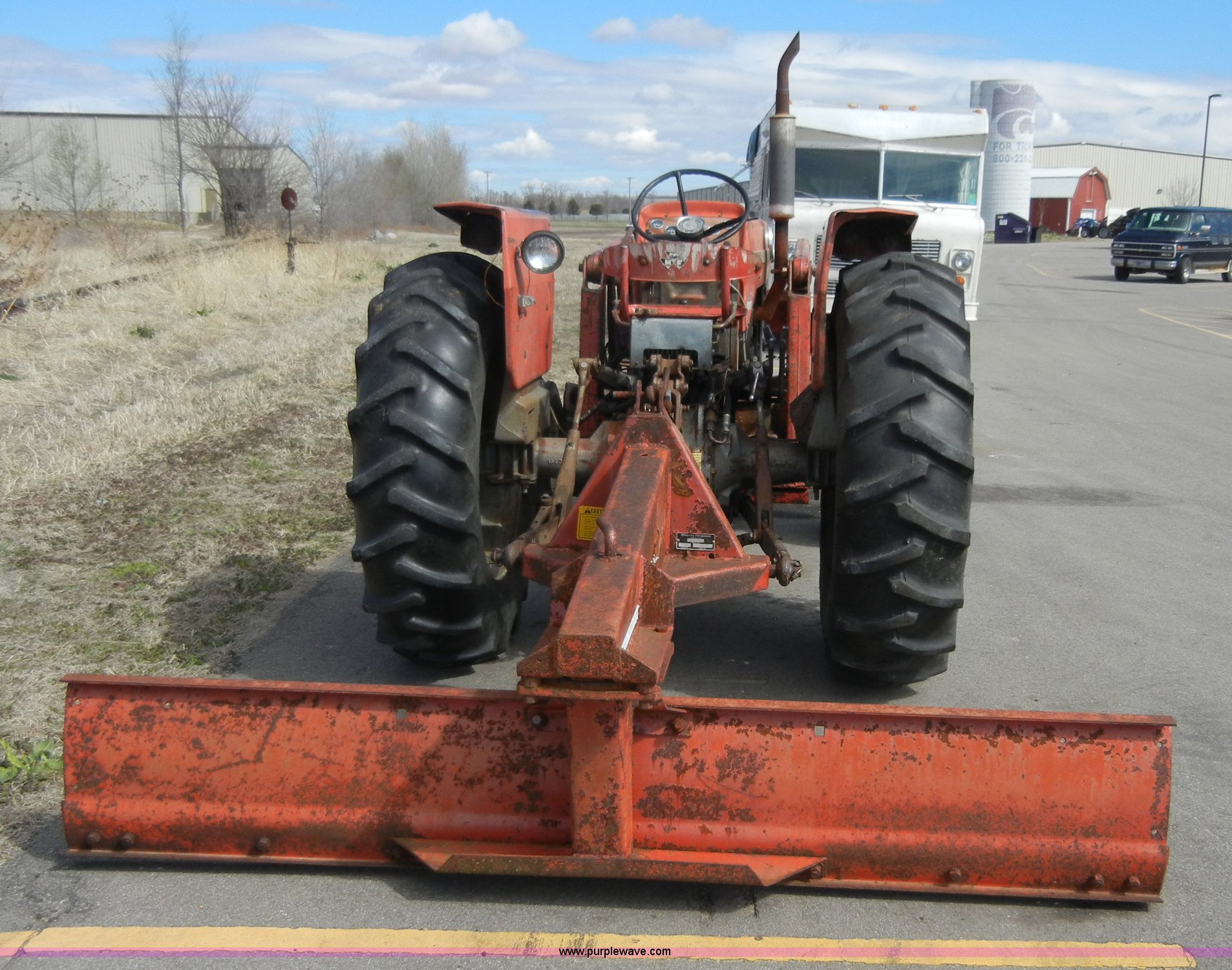 Purple Wave is selling a used Tractor in Kansas. This item is a 1972 Massey-Ferguson 165 tractor with loader with the following: 3433 hours on meter, Four cylinder gas engine, Serial G17633115, Six speed transmission with two reverse gears, Three point, Draw bar, Loader, 47" x 31" x 22" bucket, Two lever control, 95" rear blade, Model MF226, Series 2666, Serial 4627, 6.00-16 front tires, 14.9-28 rear tires, Leaks oil, about 1 quart every four to five hours, Choke rod broken, Serial S6W643007596