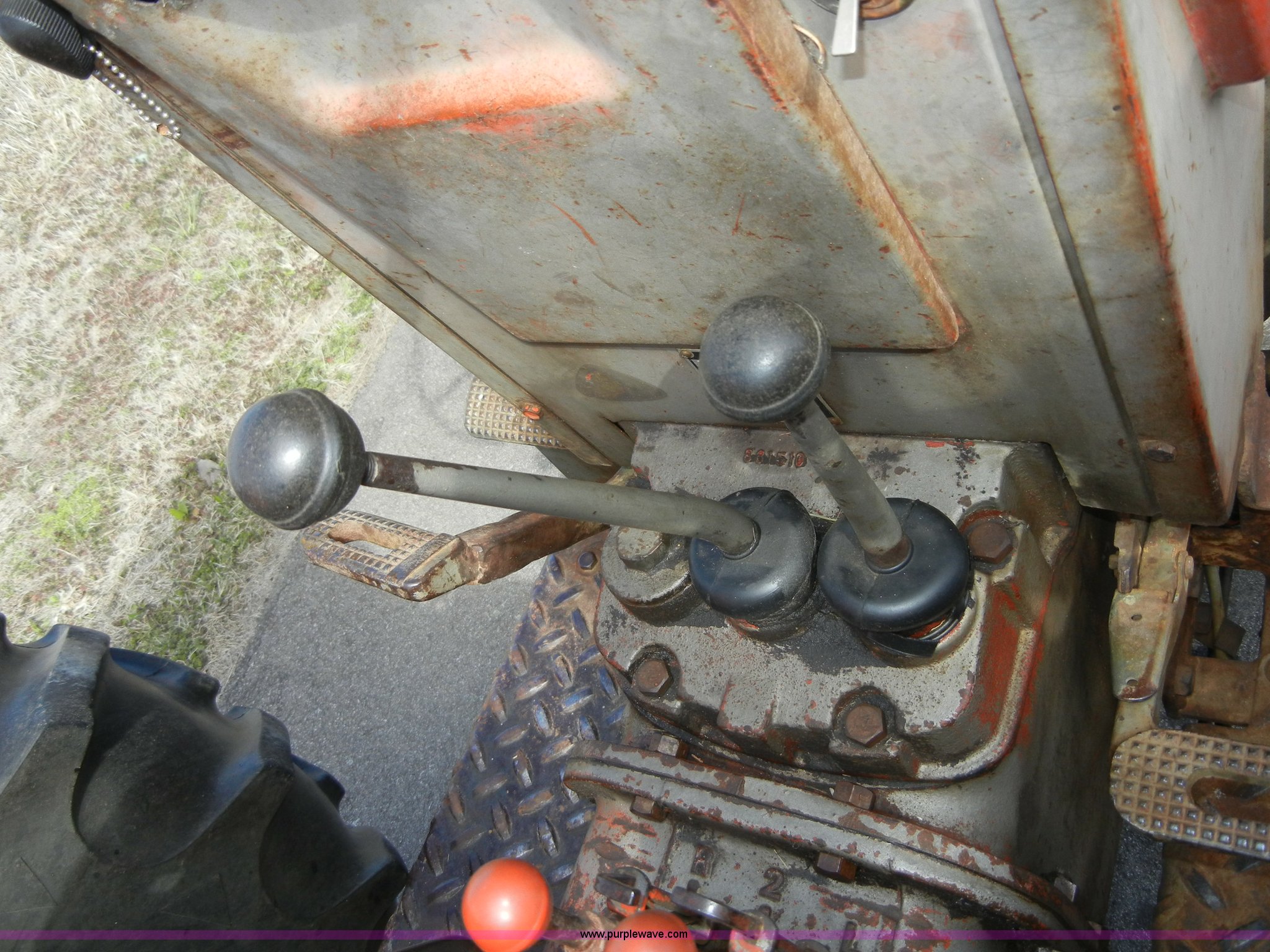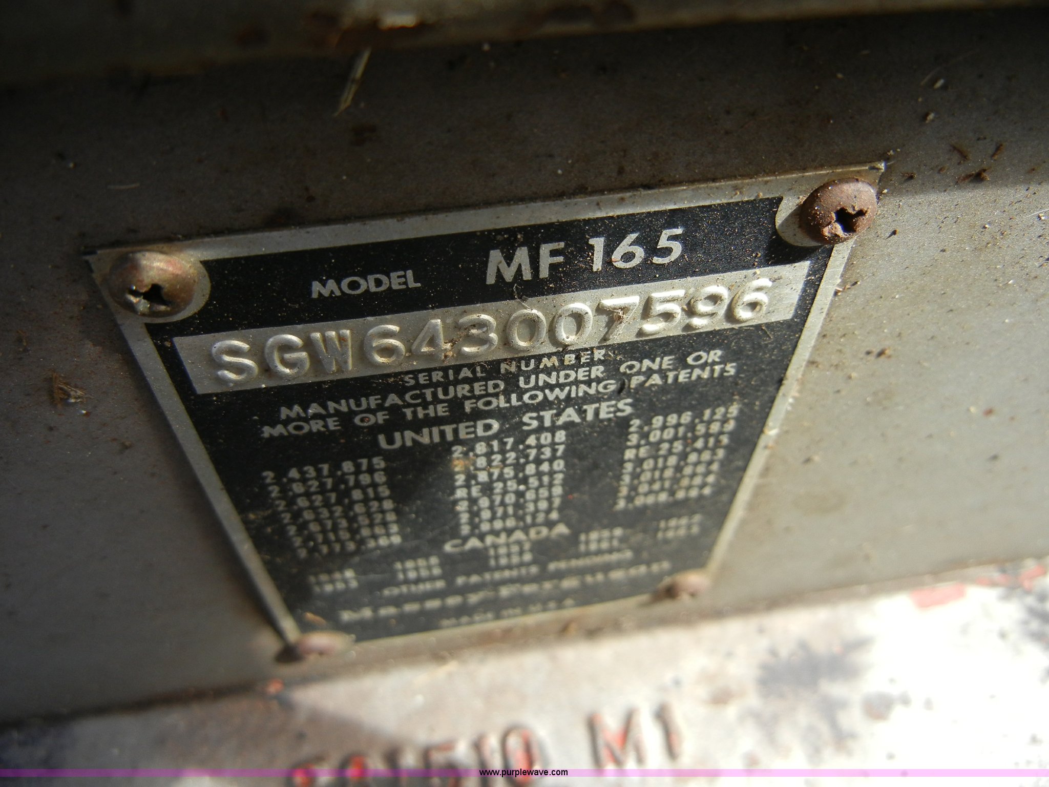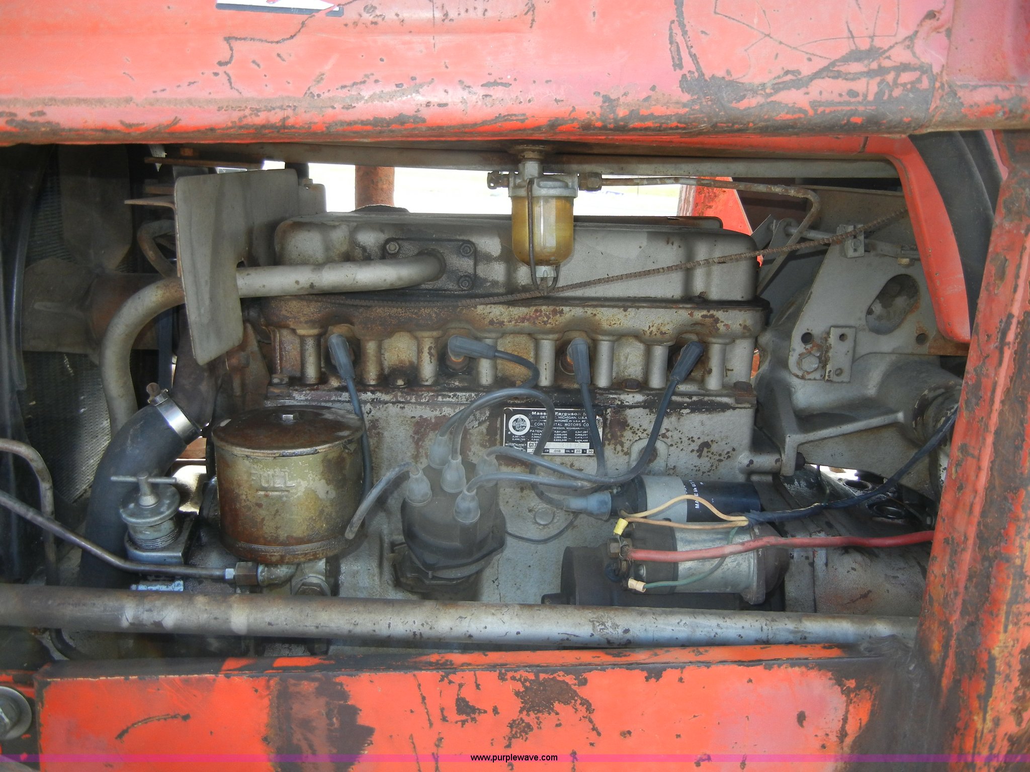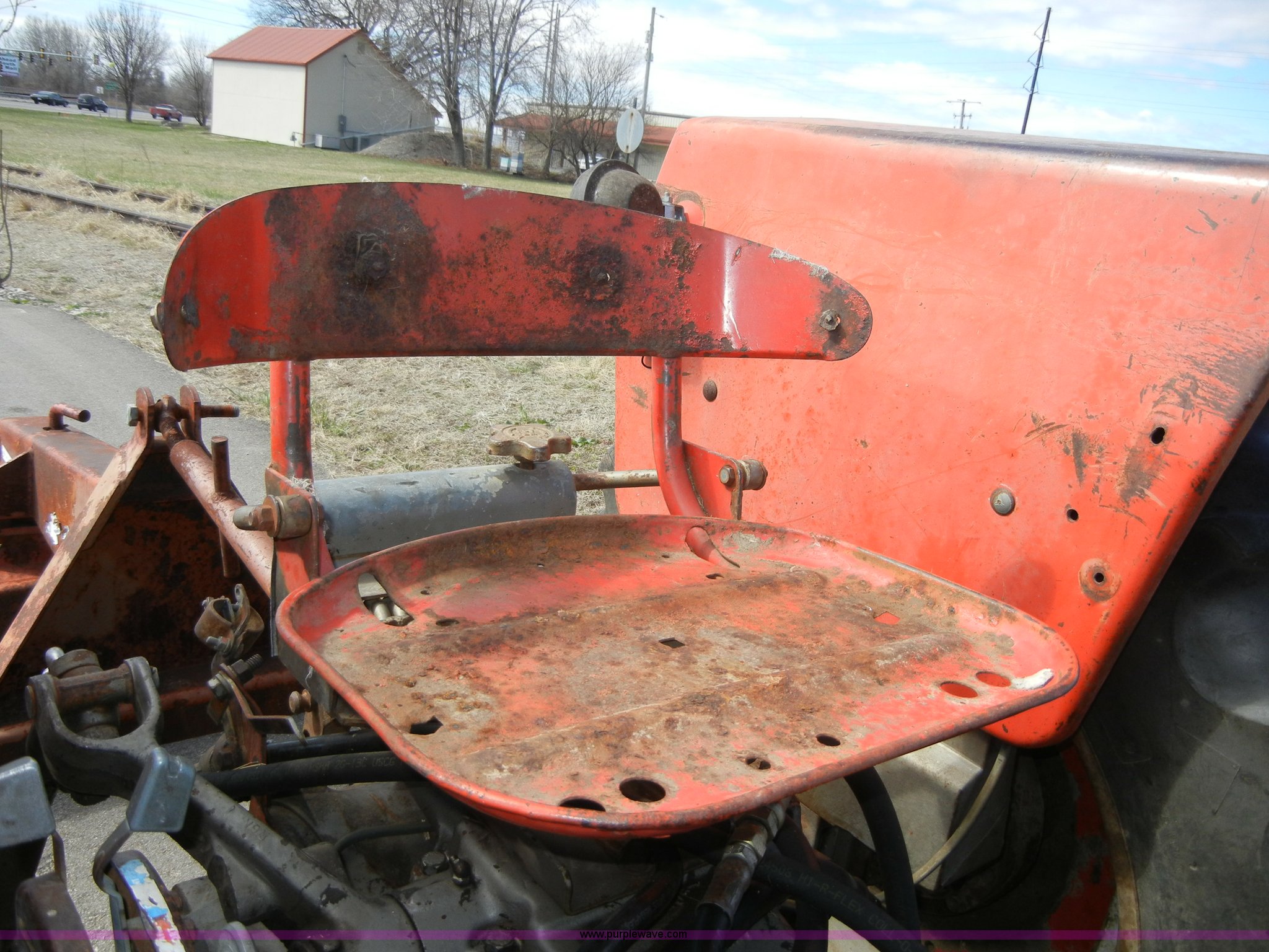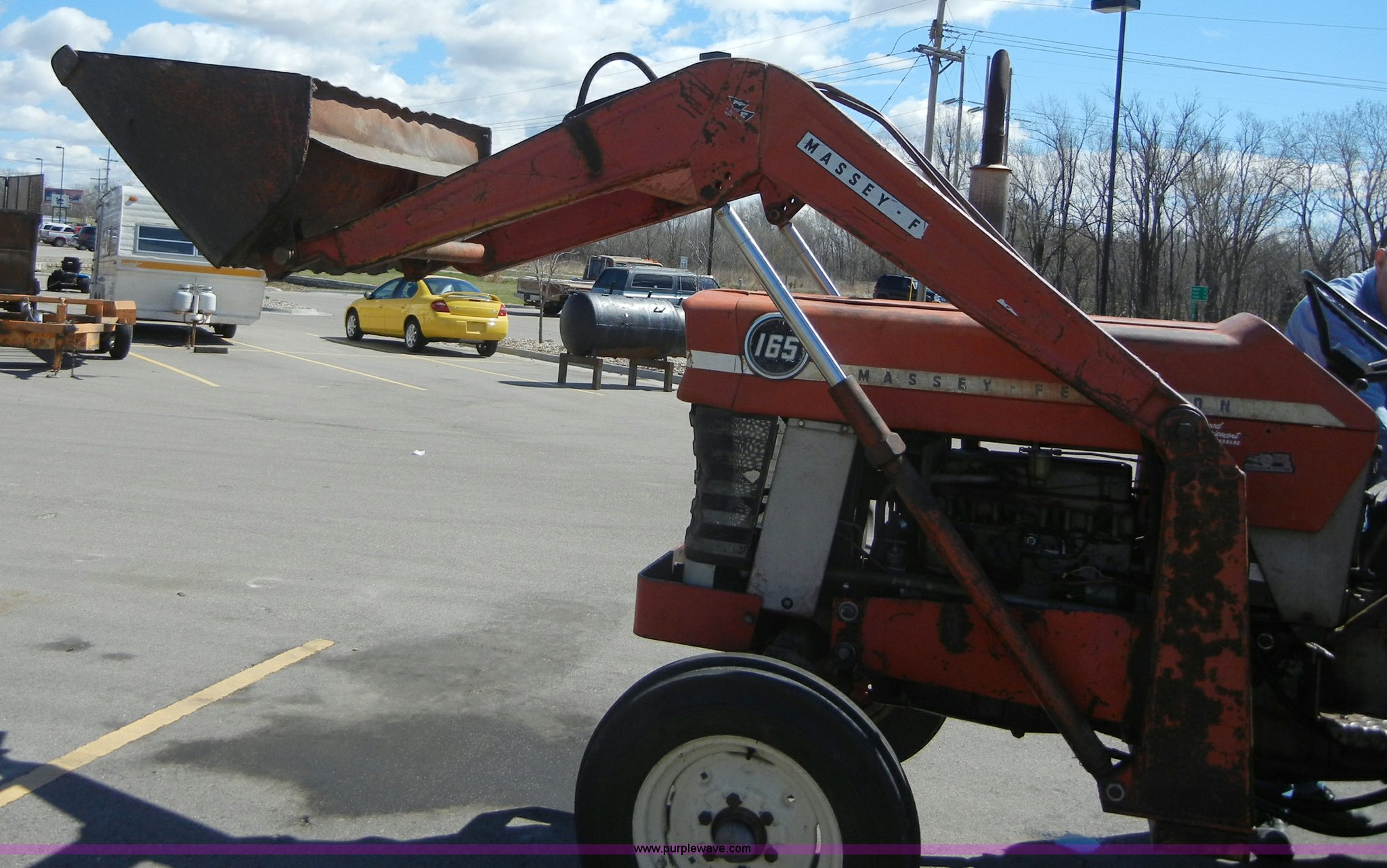 Purple Wave is selling a used Tractor in Kansas. This item is a 1972 Massey-Ferguson 165 tractor with loader with the following: 3433 hours on meter, Four cylinder gas engine, Serial G17633115, Six speed transmission with two reverse gears, Three point, Draw bar, Loader, 47" x 31" x 22" bucket, Two lever control, 95" rear blade, Model MF226, Series 2666, Serial 4627, 6.00-16 front tires, 14.9-28 rear tires, Leaks oil, about 1 quart every four to five hours, Choke rod broken, Serial S6W643007596