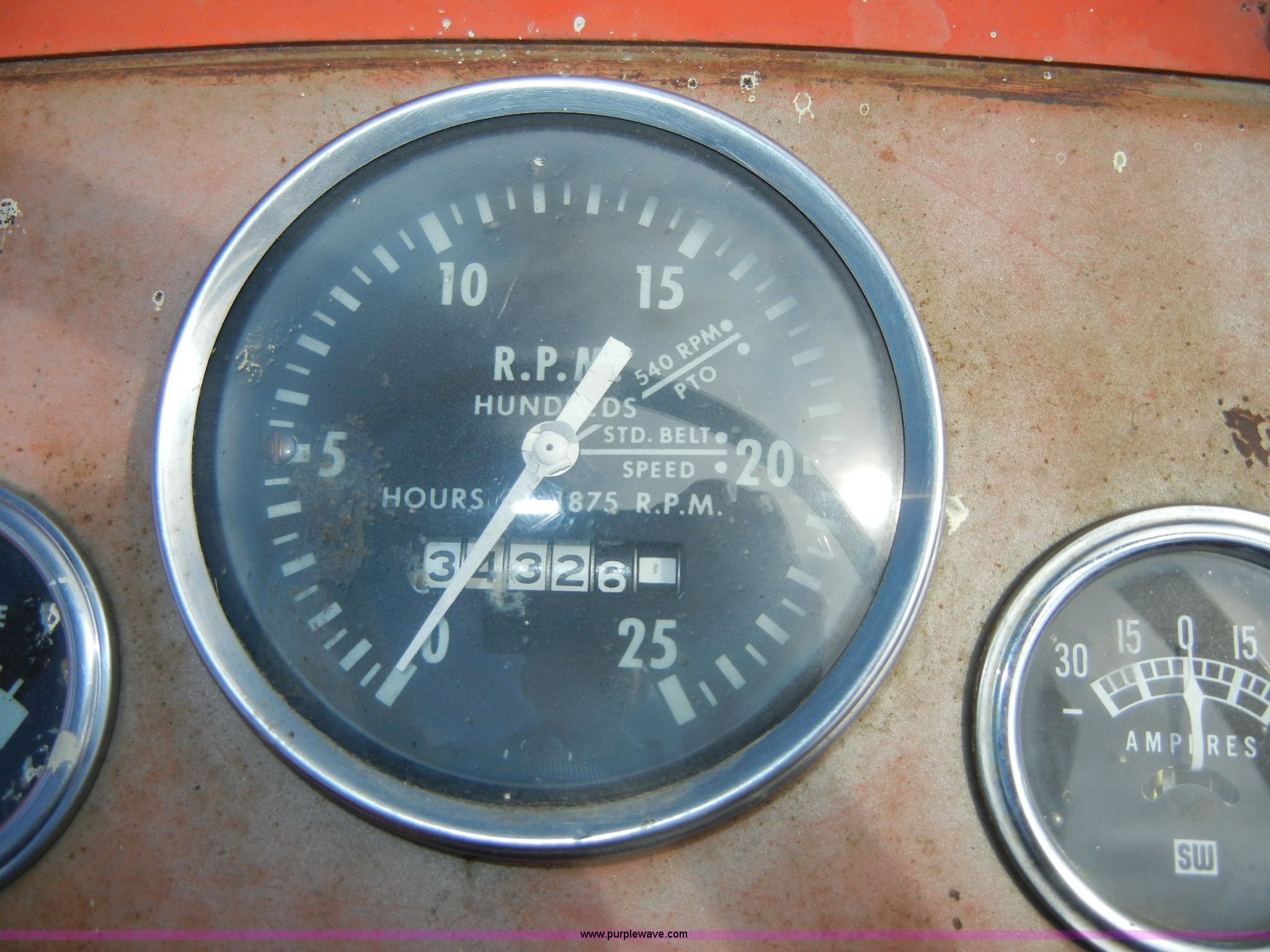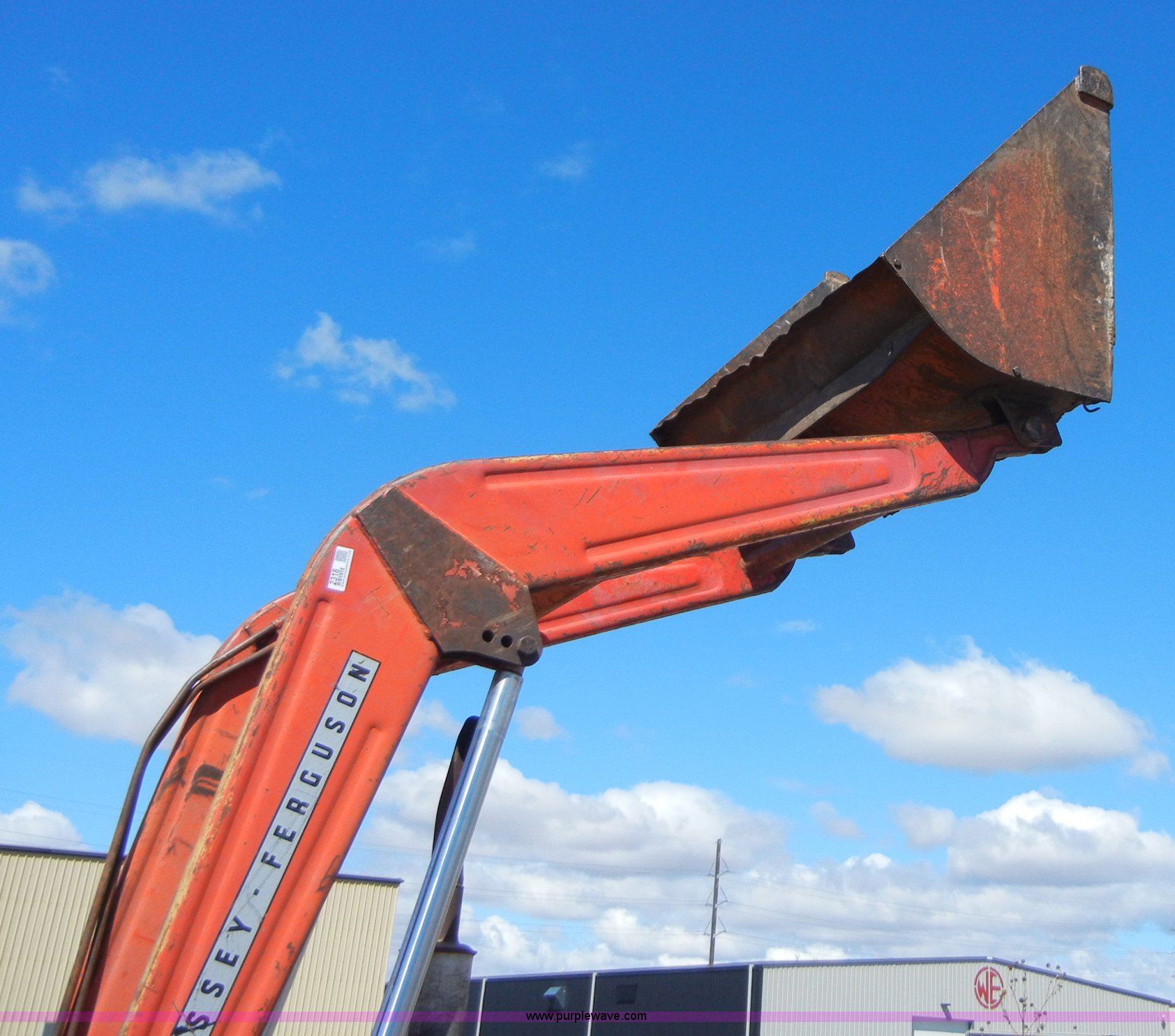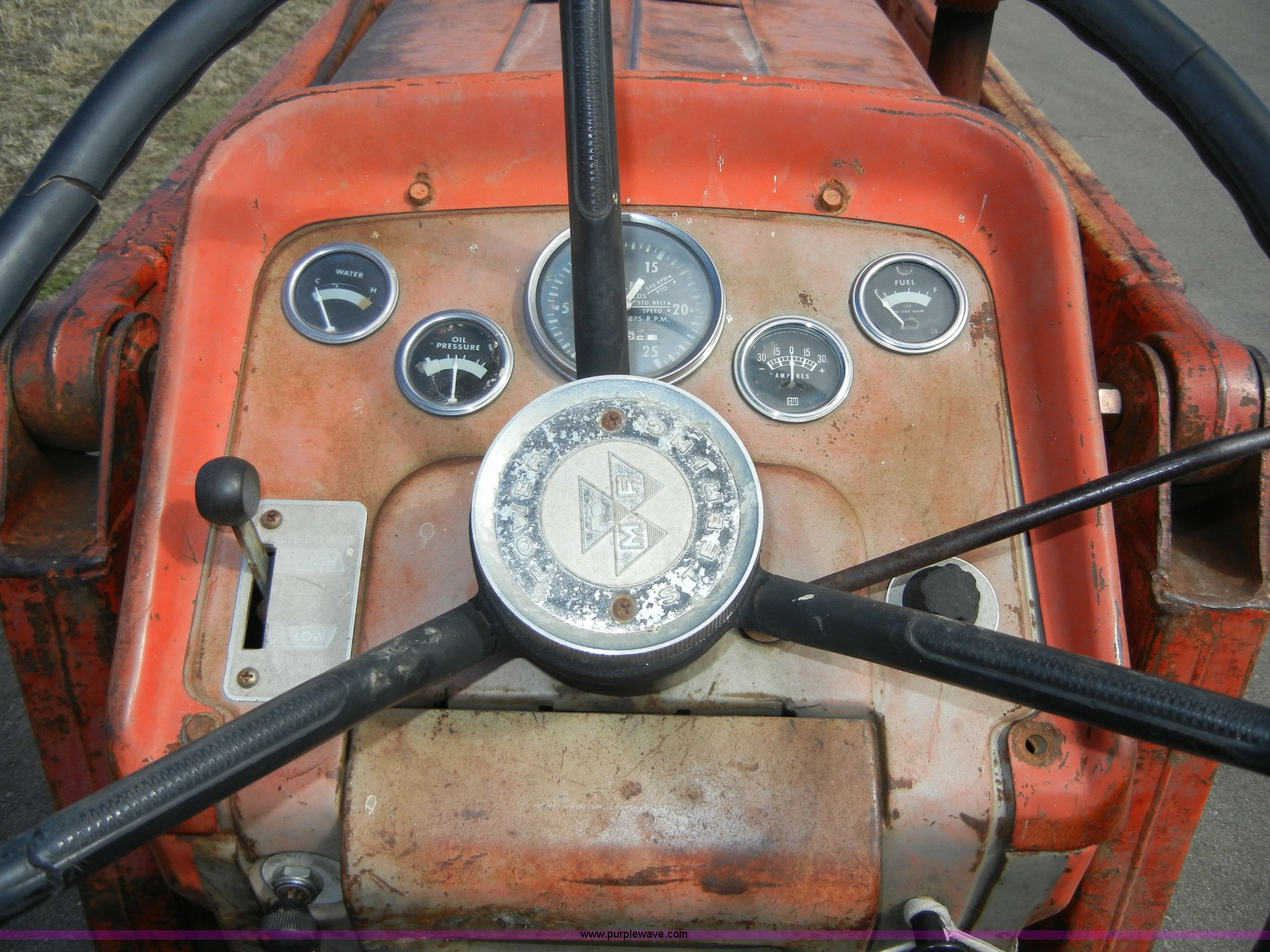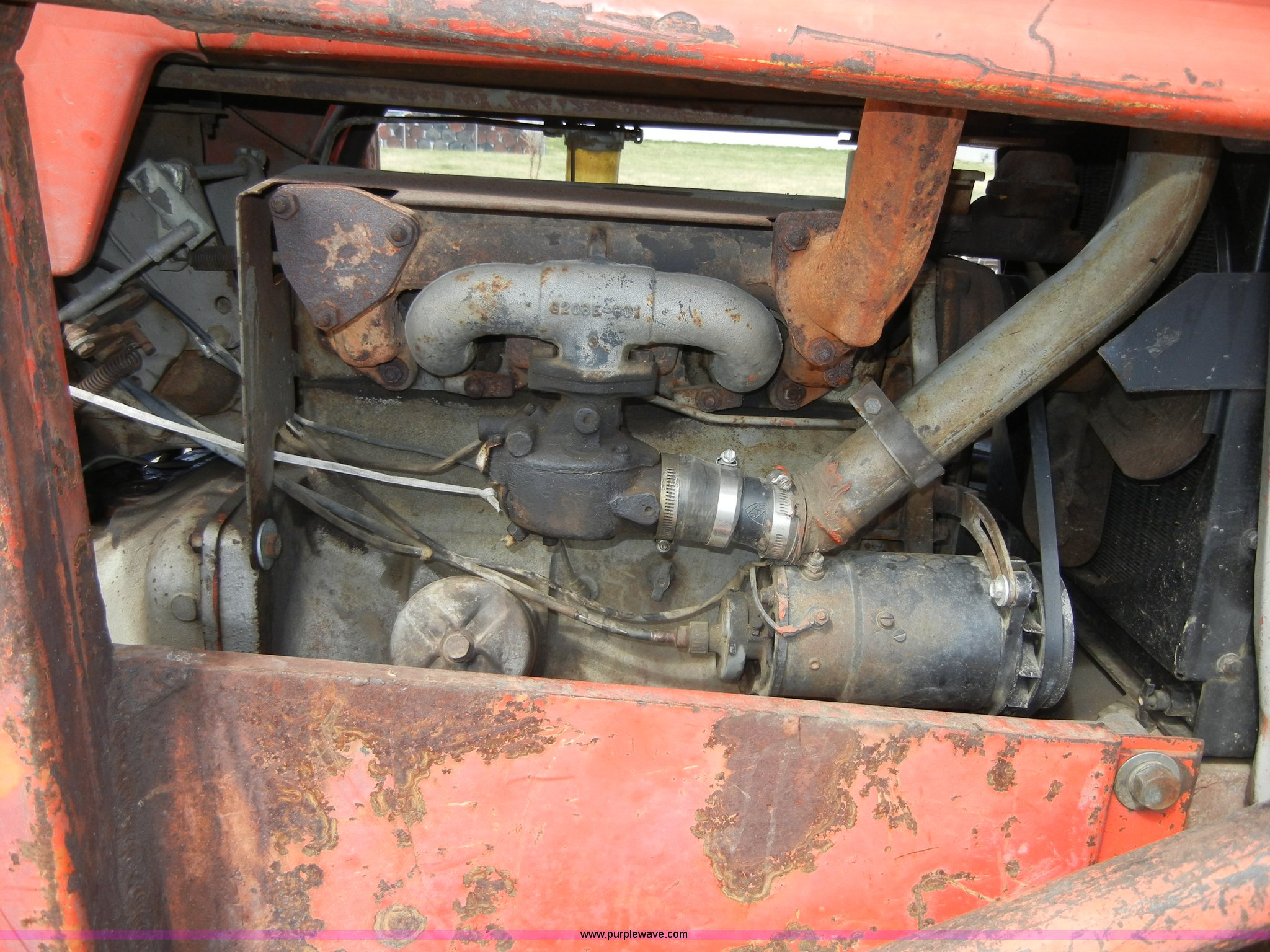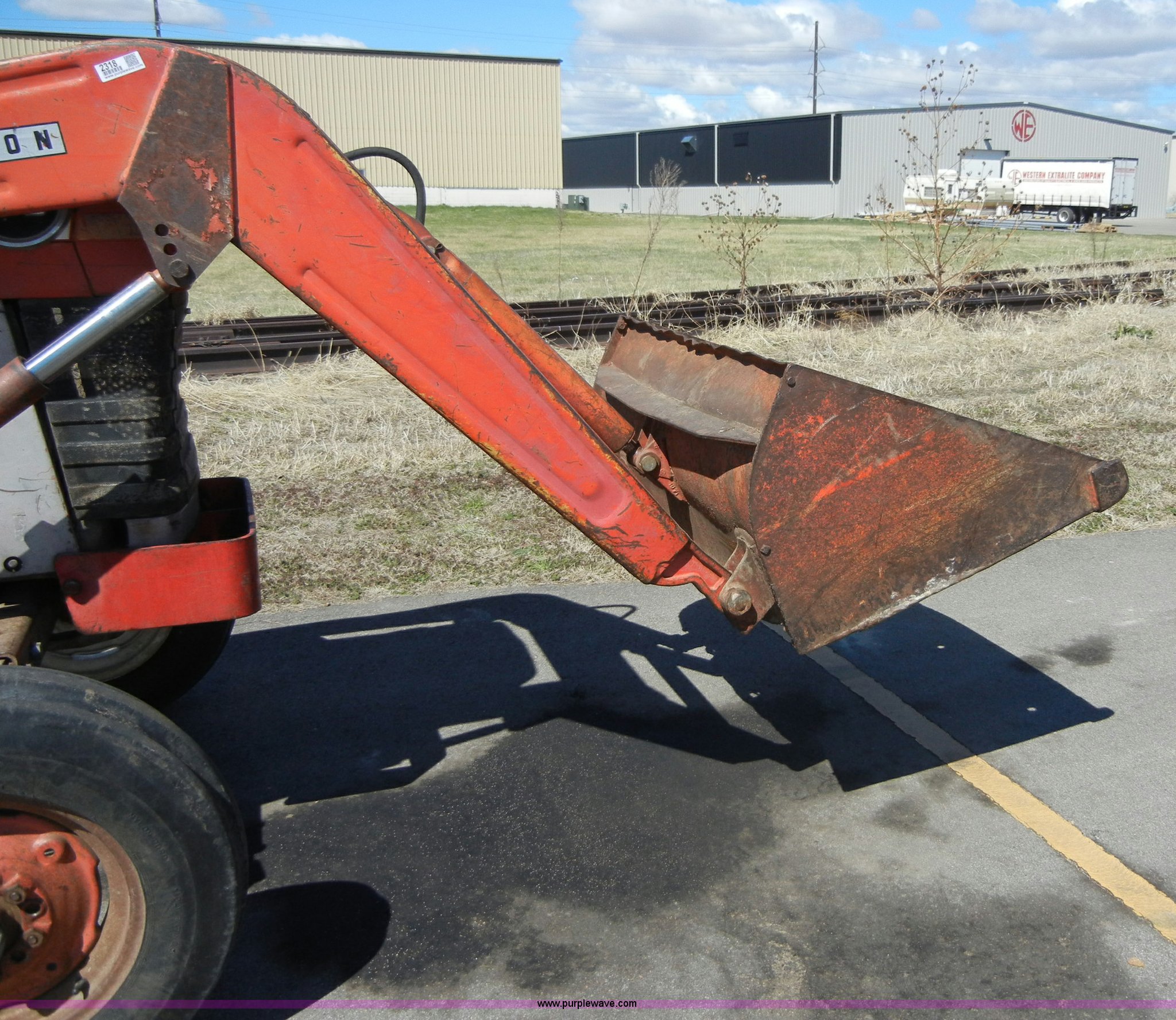 Purple Wave is selling a used Tractor in Kansas. This item is a 1972 Massey-Ferguson 165 tractor with loader with the following: 3433 hours on meter, Four cylinder gas engine, Serial G17633115, Six speed transmission with two reverse gears, Three point, Draw bar, Loader, 47" x 31" x 22" bucket, Two lever control, 95" rear blade, Model MF226, Series 2666, Serial 4627, 6.00-16 front tires, 14.9-28 rear tires, Leaks oil, about 1 quart every four to five hours, Choke rod broken, Serial S6W643007596