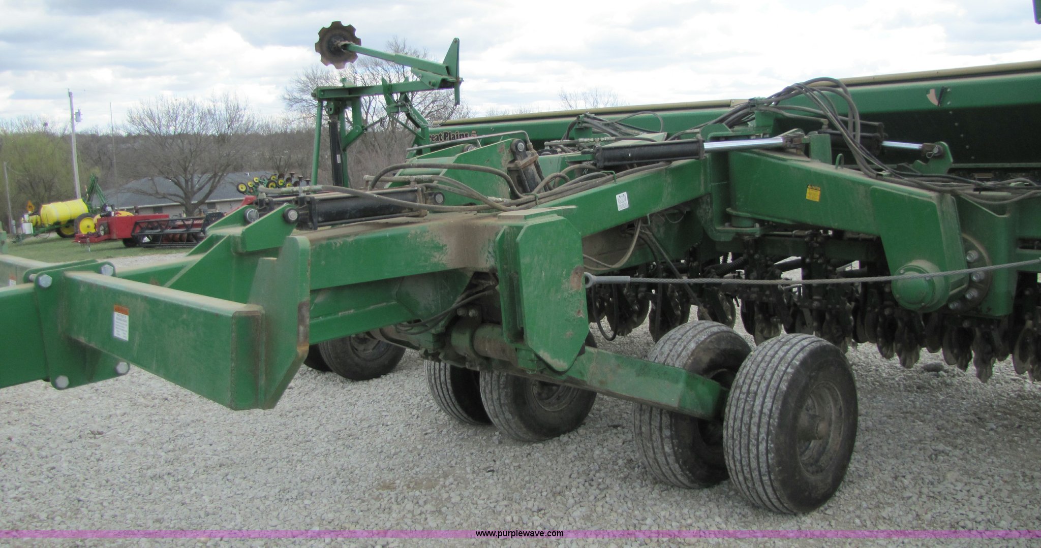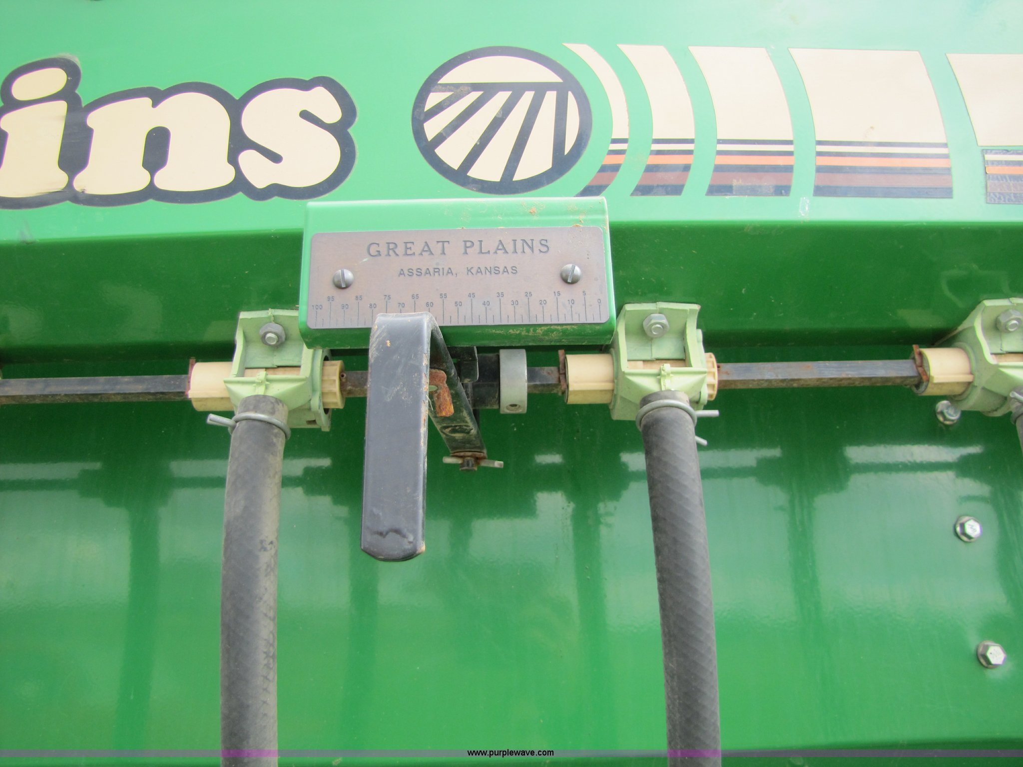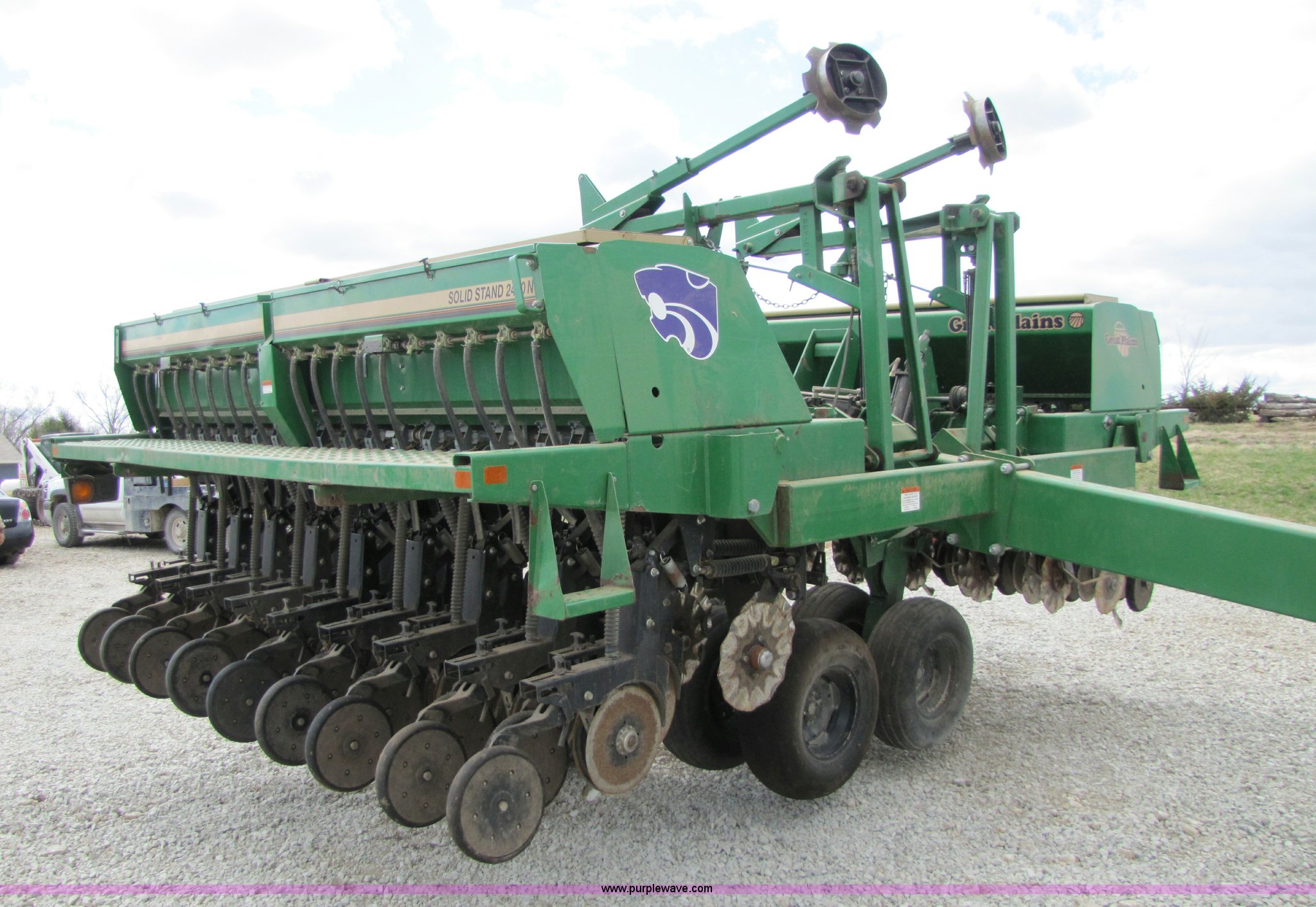 Purple Wave is selling a used Grain Drill or Seeder in Kansas. This item is a 1995 Great Plains 2N-2410 no-till drill with the following: No till 15" coulters, No-till markers, 13" seed disk, 2" x 13" press wheels, 8" spacing, Seed firmers every other row, Plugs every other row, Alfalfa seeder, Monitor, Parts book and operators manual, Serial GP-C1529
