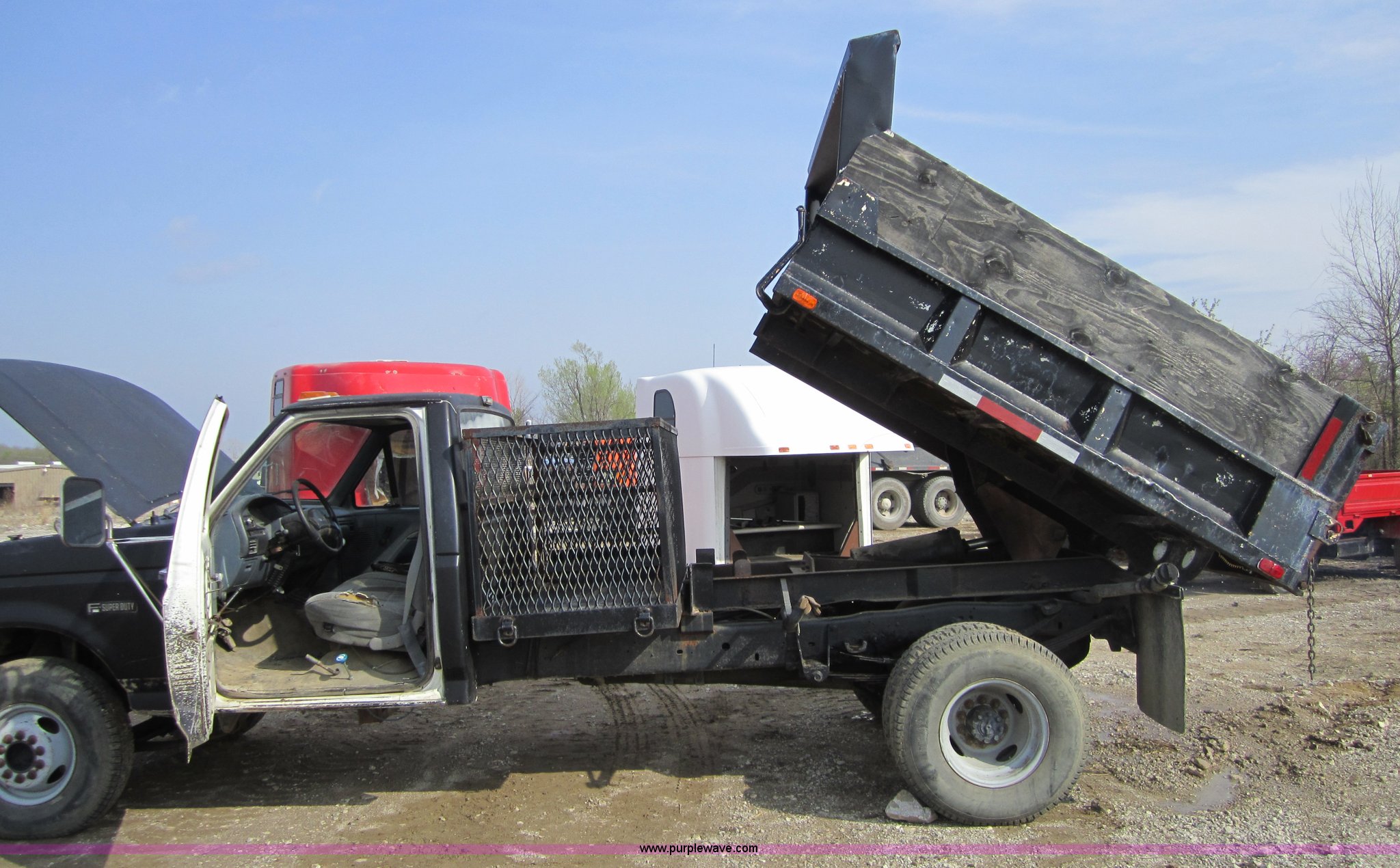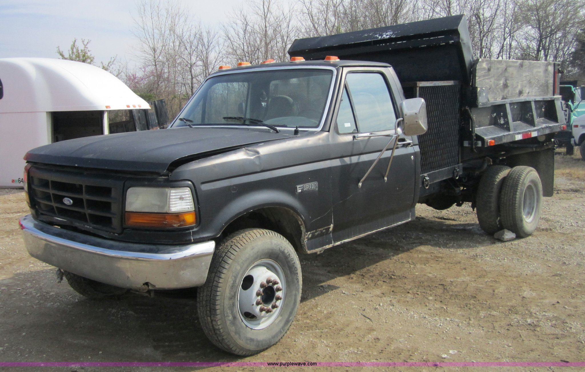 Purple Wave is selling a used Passenger Vehicle in Oklahoma. This item is a 1992 Ford F350 Super Duty pickup truck with the following: 224,375 miles on odometer, 7.3L V8 FI diesel engine, Five speed manual transmission, 8' dump bed, AC and heat, Cruise control, AM/FM radio, Manual windows and locks, PTO, Receiver hitch, LT235-85R16 tires