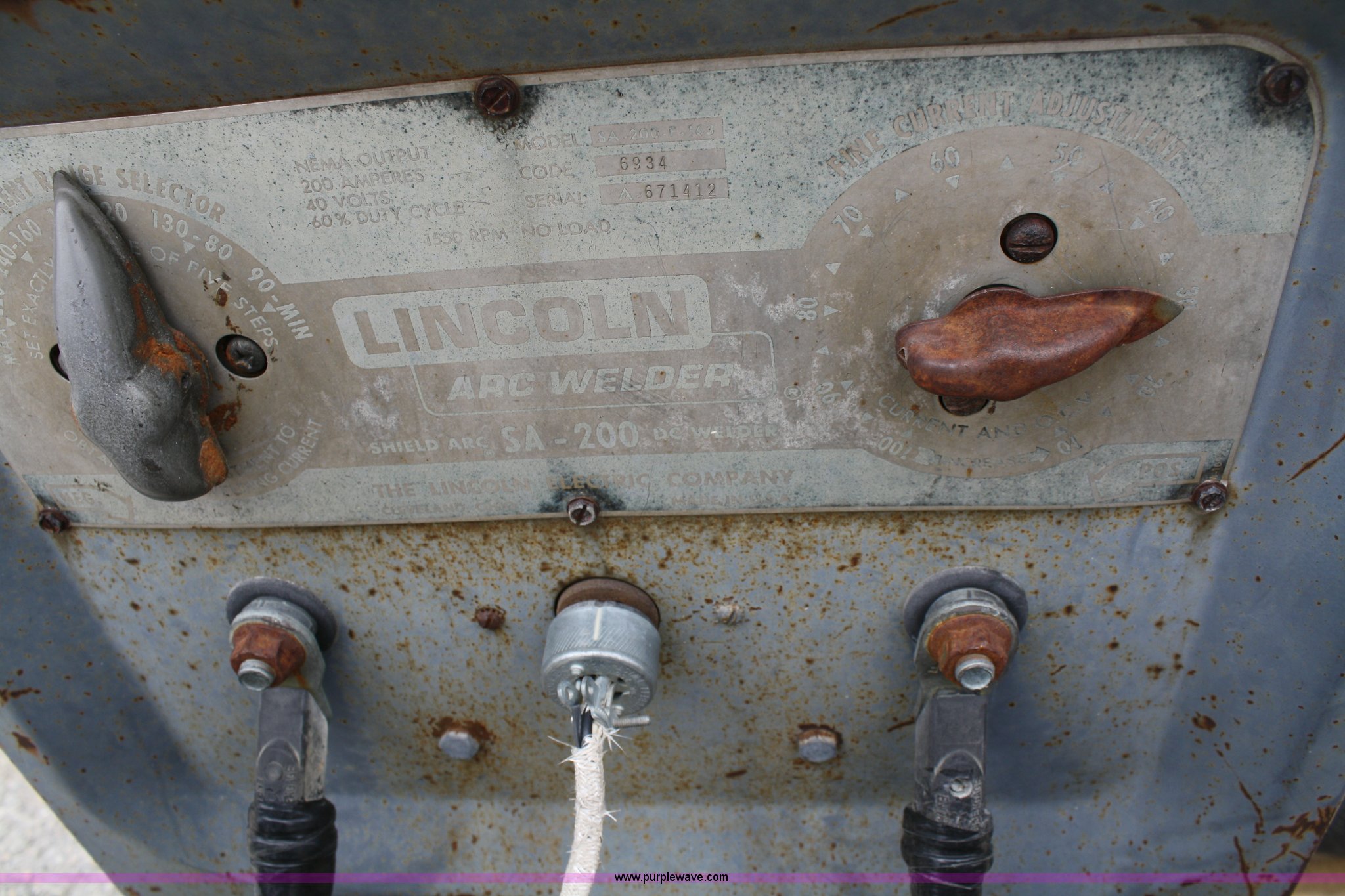 Purple Wave is selling a used Welder (Manual) in Kansas. This item is a Lincoln SA-200 arc welder with the following: Continental four cylinder gas engine, Approx. 50' ground lead, Approx. 100' electrode lead, 2" ball hitch, Serial 671412