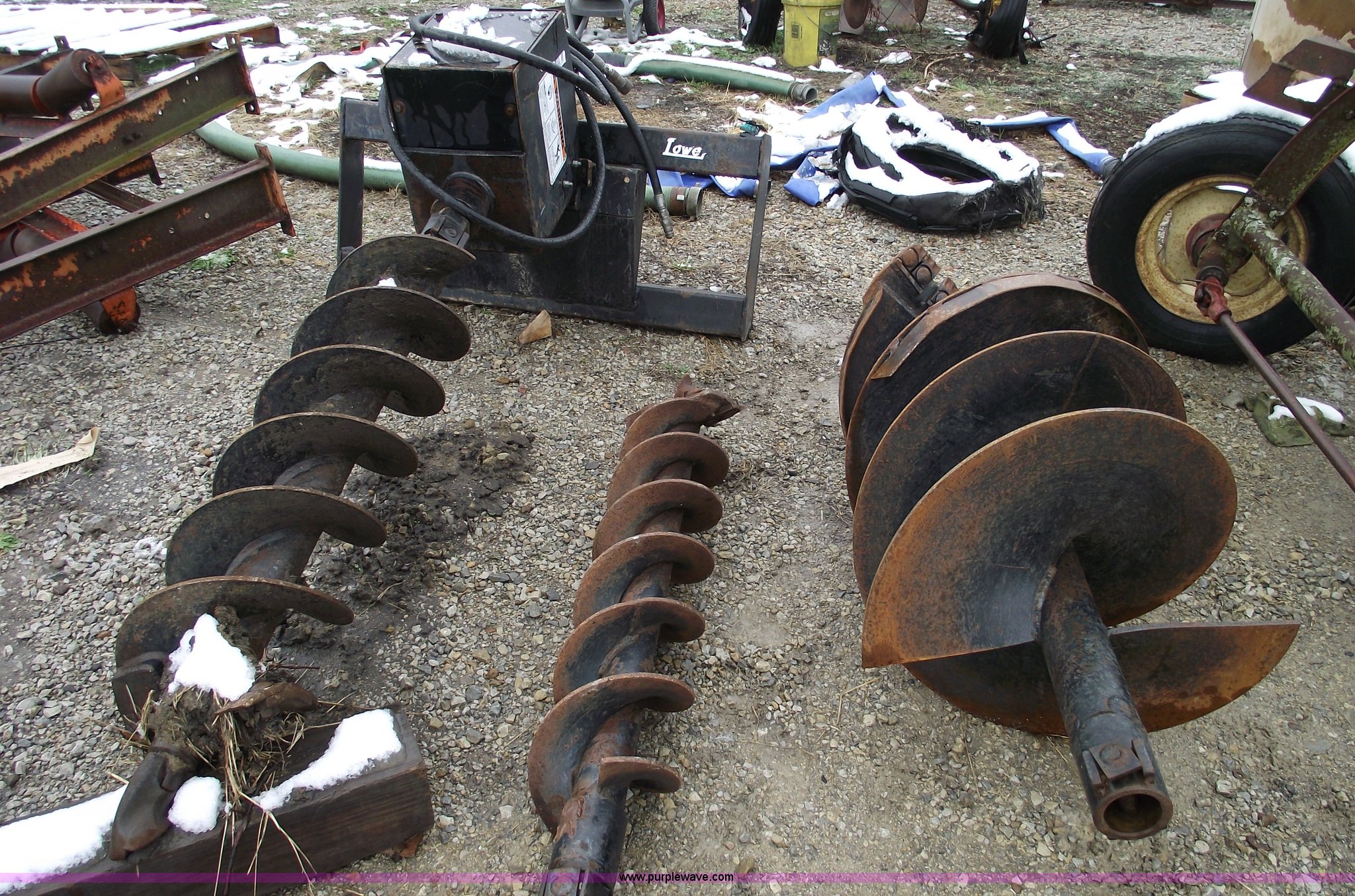 Lowe skid steer auger with three bits | SOLD! April 14 Construction Equipment Internet Auction