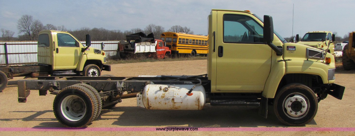 Purple Wave is selling a used Truck Chassis in Missouri. This item is a 2005 GMC C5500 cab and chassis with the following: 168,427 miles on odometer, GM 8.1L V8 LP engine, Automatic transmission, AC and heat, AM/FM, Power windows and locks, Leather seats, Leather interior, Vinyl flooring