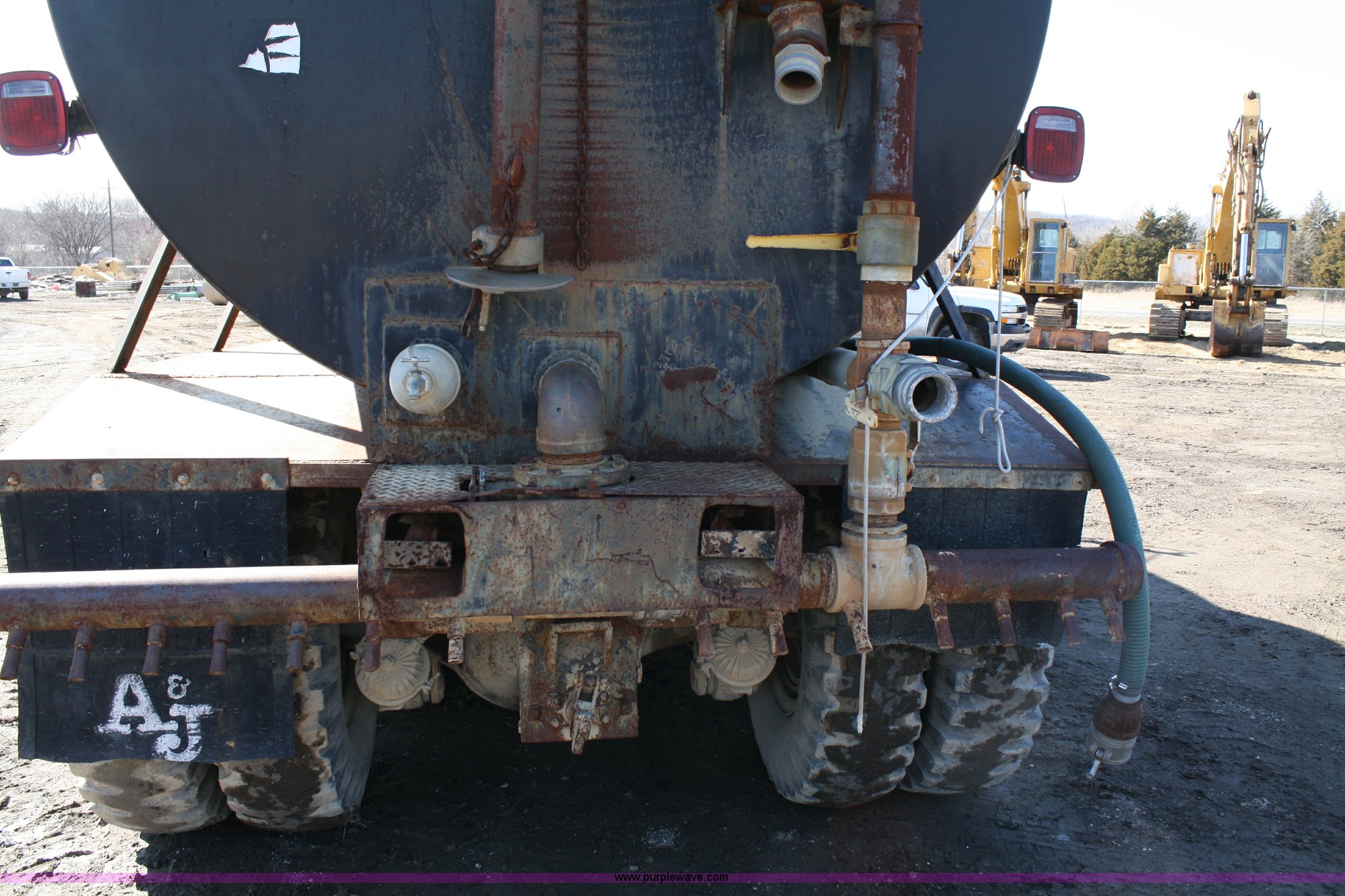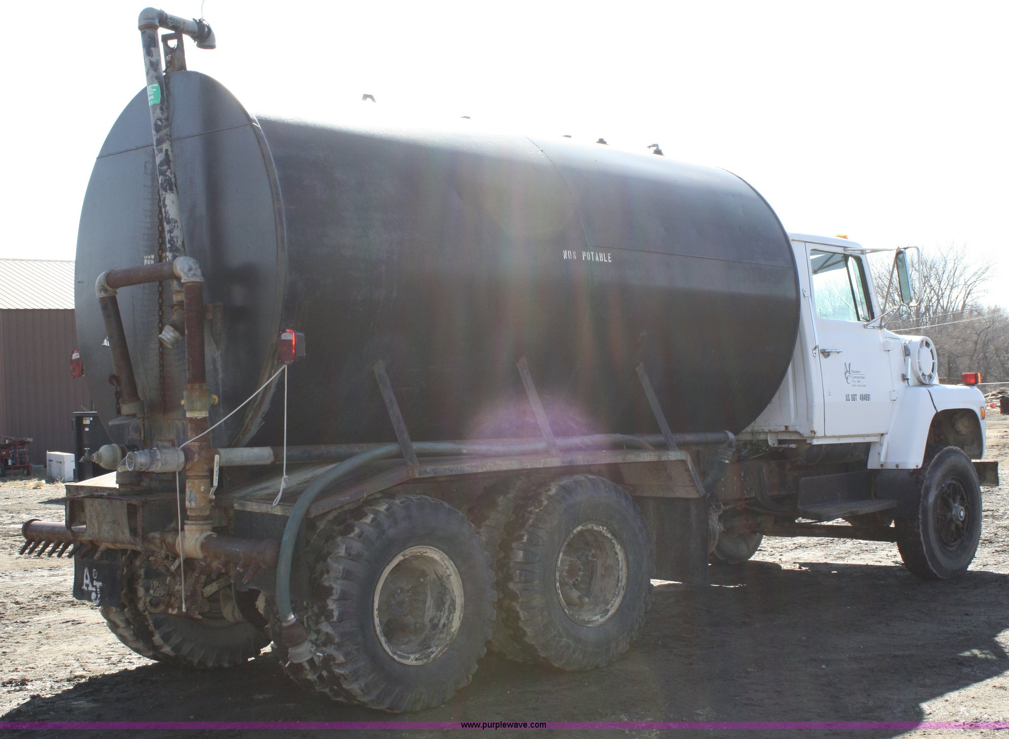 Purple Wave is selling a used Tank Truck or Water Truck in Kansas. This item is a 1986 Ford L8000 water truck with the following: 105,065 miles on odometer, 2,810 hours on meter, Caterpillar 3208 diesel engine, Low hours on crate engine, 5&4 speed manual transmission, Twin screw, 4,000 gallon water tank, Air brakes, Air ride seat, Pintle hitch, 3" PTO driven pump, 3" outlet, 12.00-20 rear military tires, 11.00R20 front tires