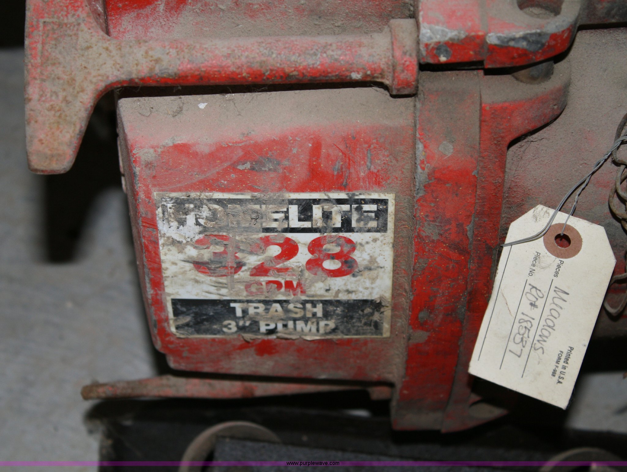 Purple Wave is selling a used Pump in Kansas. This item is a Homelite 3" trash pump with the following: Briggs & Stratton 8 HP engine, Recoil start, 328 gpm