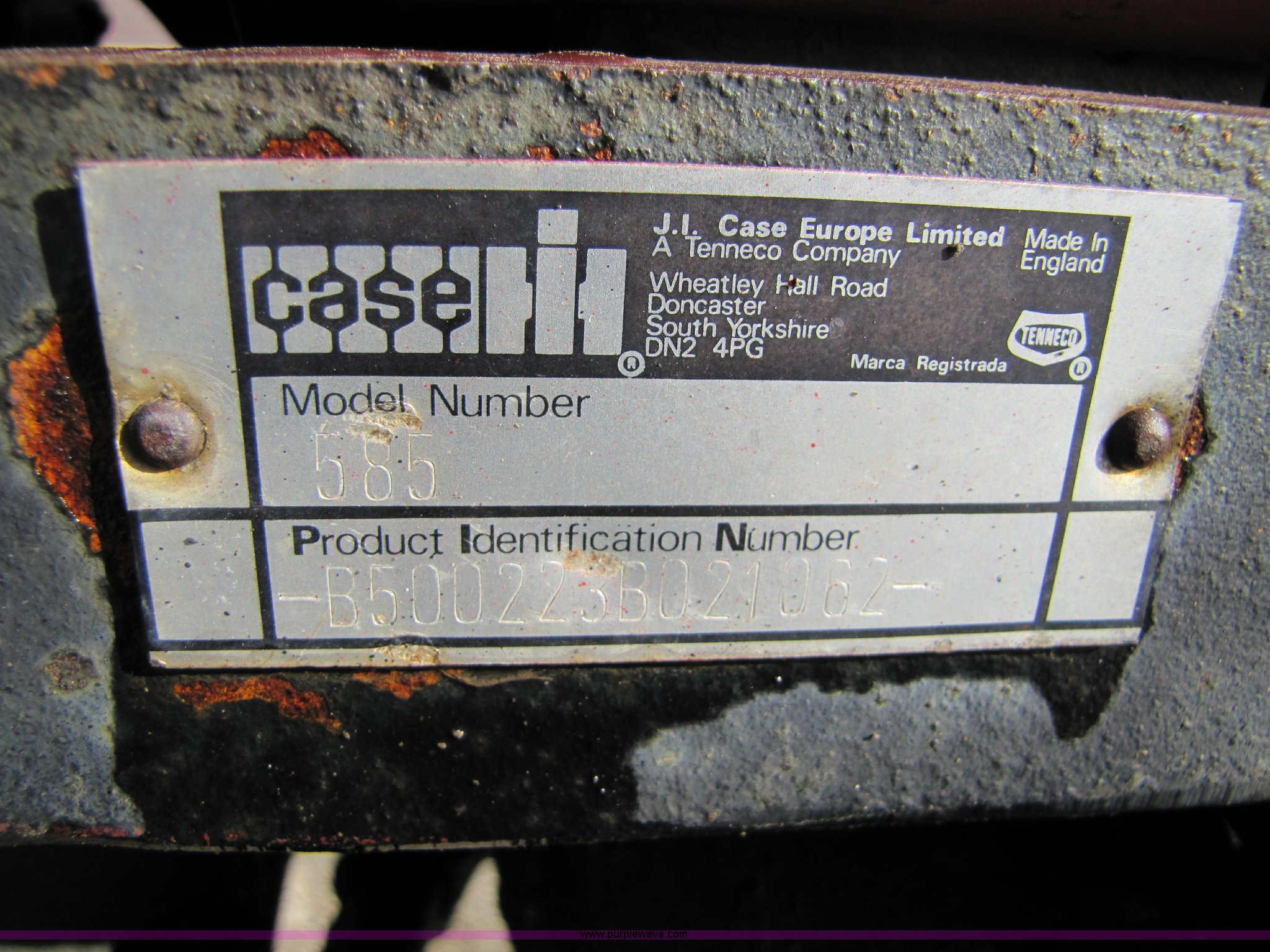 Case International 585 tractor. 3,300 hours on meter, Four cylinder diesel engine, Block heater, Three point, 540 PTO, Quick hitch attachment, One hydraulic remote set, 16.9-30 rear tires, 9.5L-15 front tires, Serial B500223B021062. Shipping quotes available. Meadows Construction. 1014 Front St. Tonganoxie, KS 66086