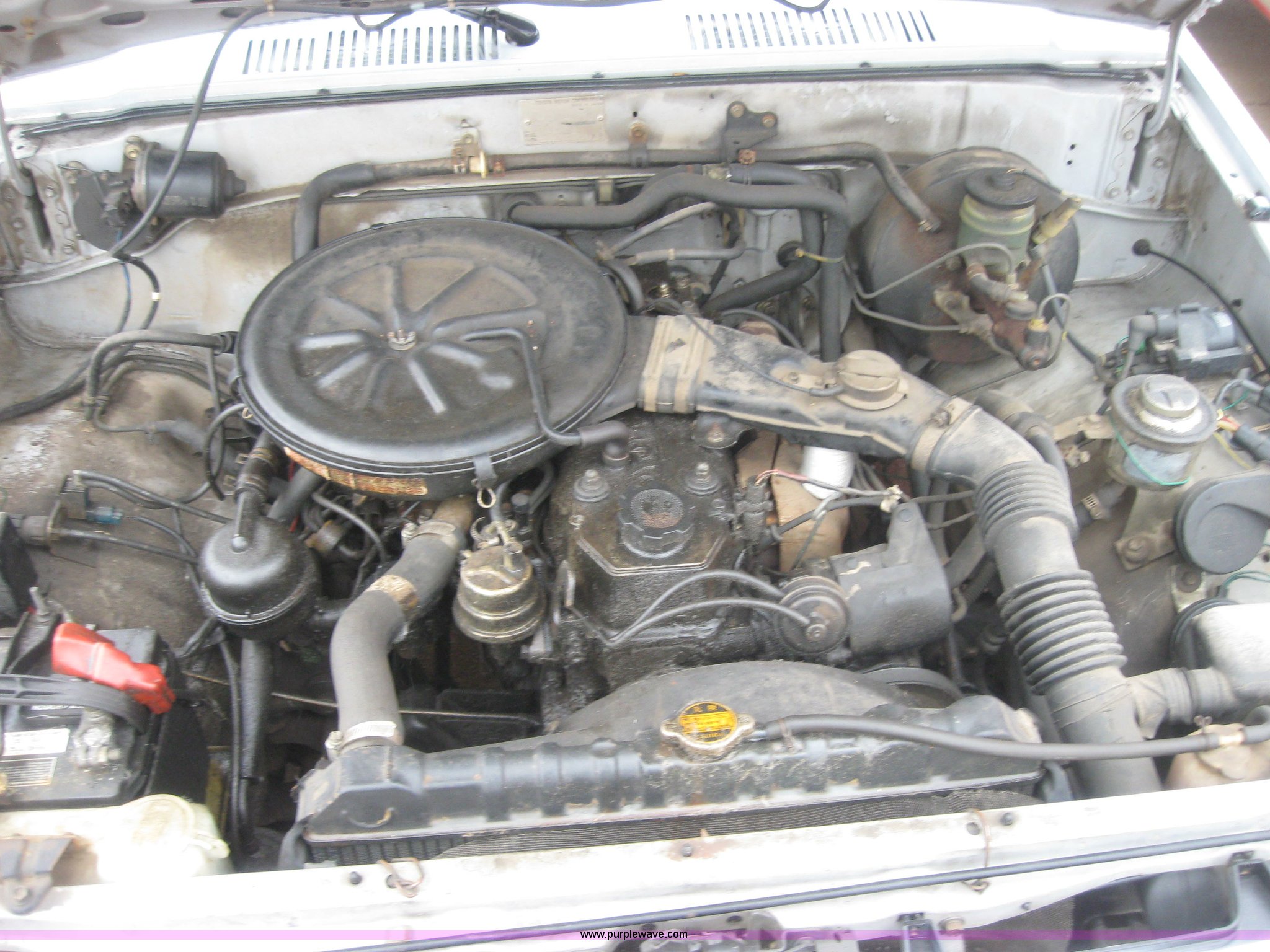 Purple Wave is selling a used Passenger Vehicle in Kansas. This item is a 1987 Toyota pickup truck with the following: 224,464 miles on odometer, 2.4L I4 EFI engine, Automatic transmission, AC and heat, AM/FM, Manual windows and locks, Cloth bench seat with cover, damaged, Pickup bed, Trailer wiring, 195/75R14 tires, Flat tires, No keys, Exterior and interior cosmetic damage, Cracked windshield, AV# 0044