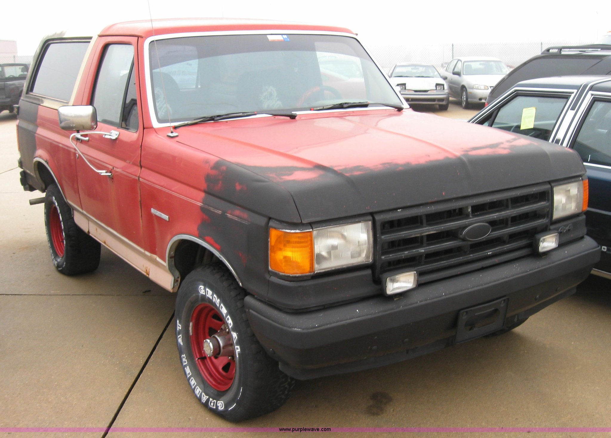 Purple Wave is selling a used Passenger Vehicle in Kansas. This item is a 1988 Ford Bronco SUV with the following: 425 miles on odometer, 5.0L V8 EFI engine, Automatic transmission, Four wheel drive, AC and heat, Tilt, Cruise, AM/FM/CD, Power windows and locks, 31x10.50R15 LT tires, No keys, Body damage, Cracked windshield, Interior and exterior cosmetic damage, AV# 9024