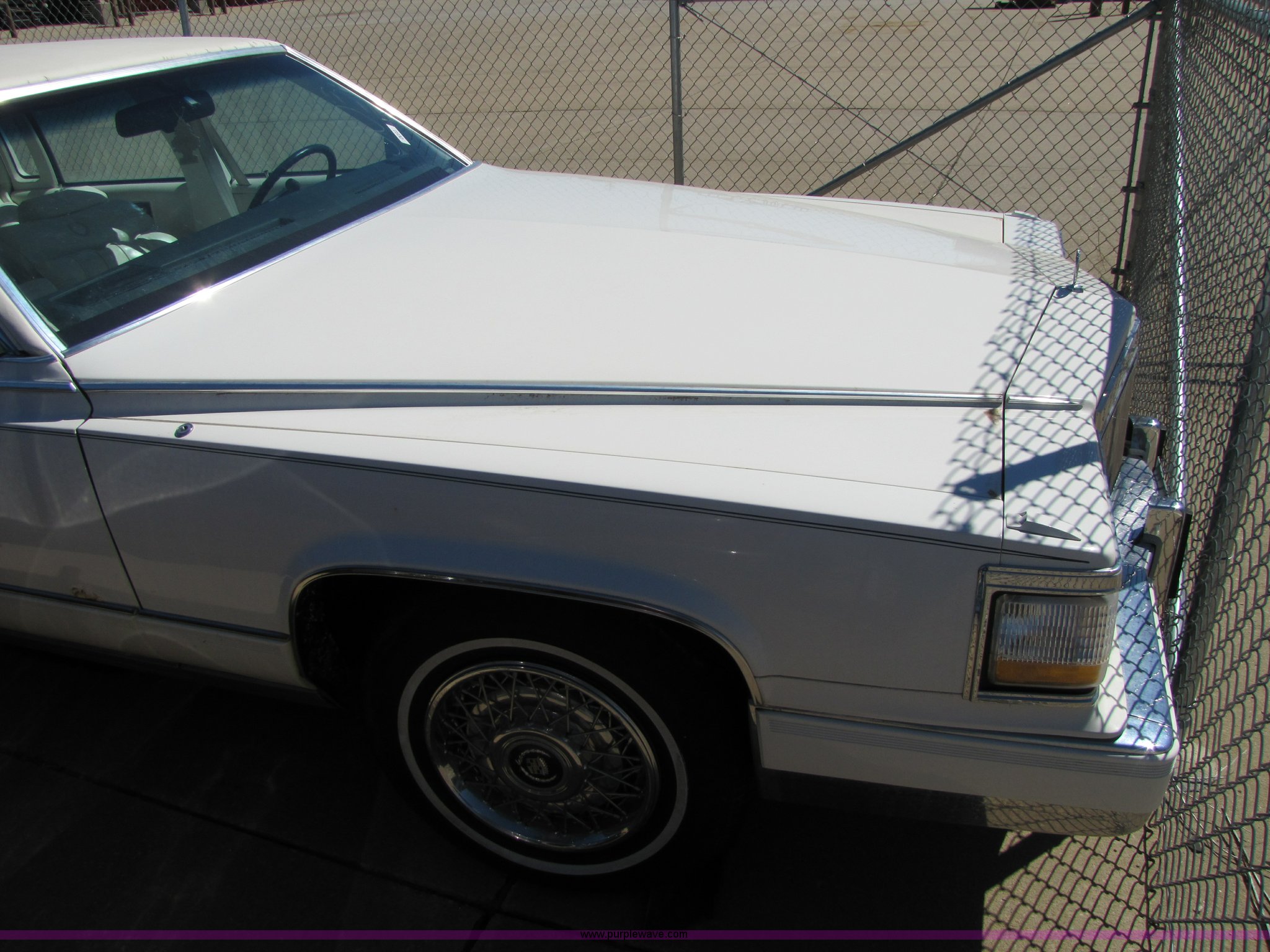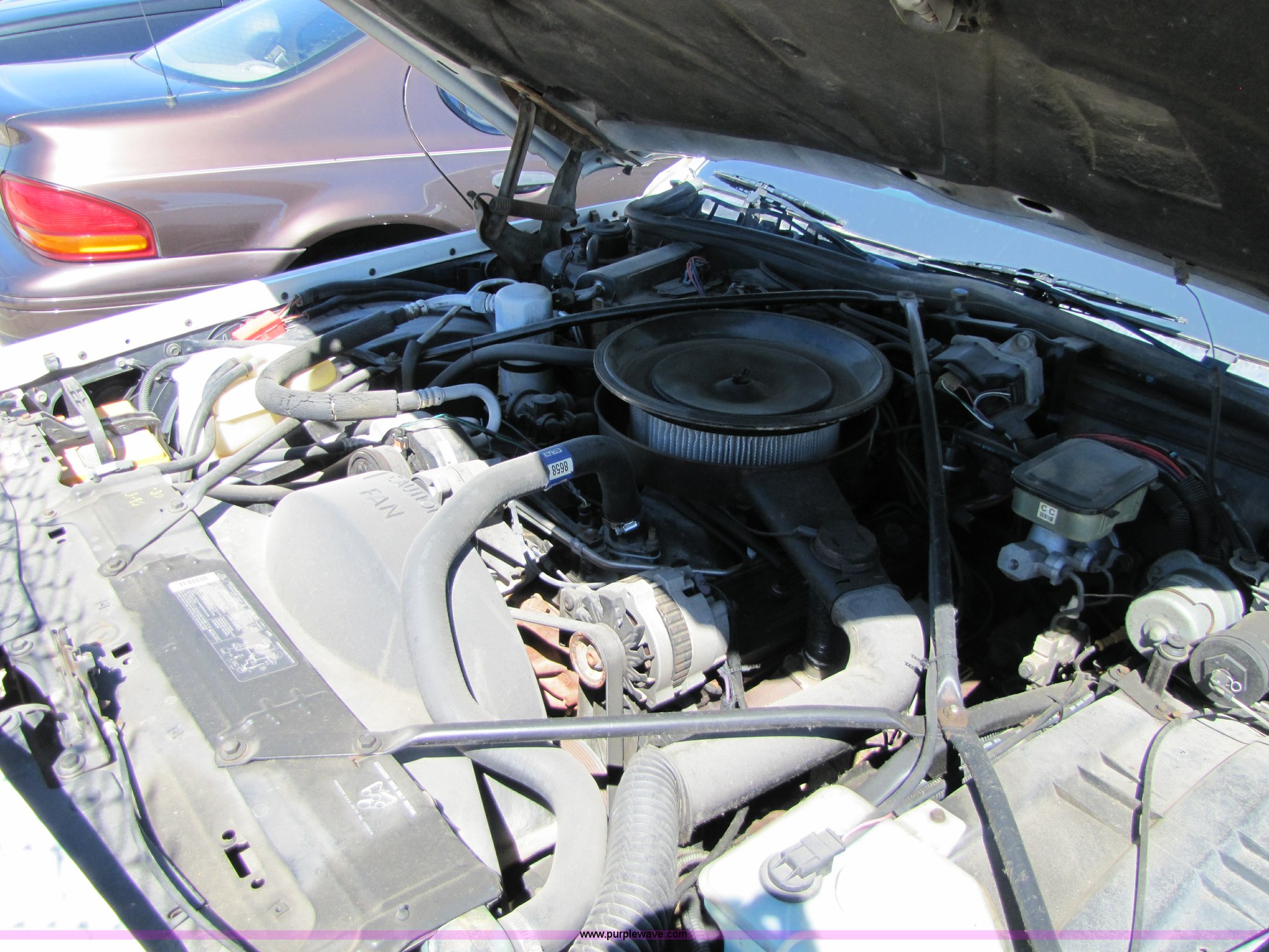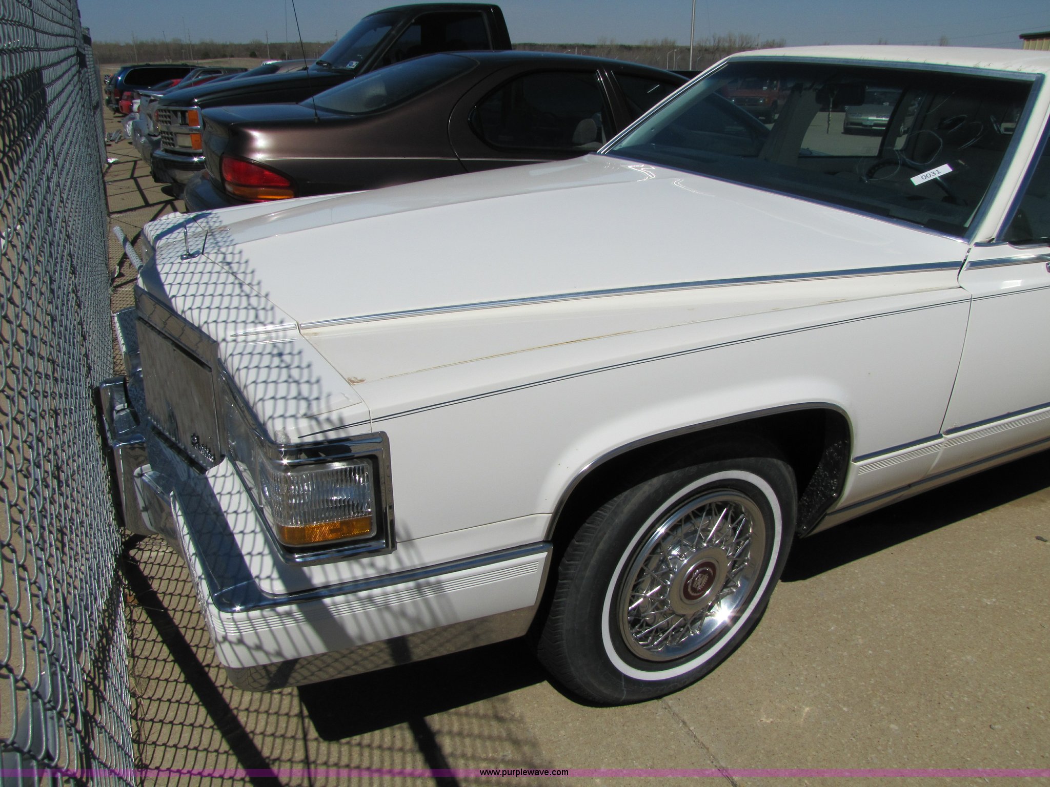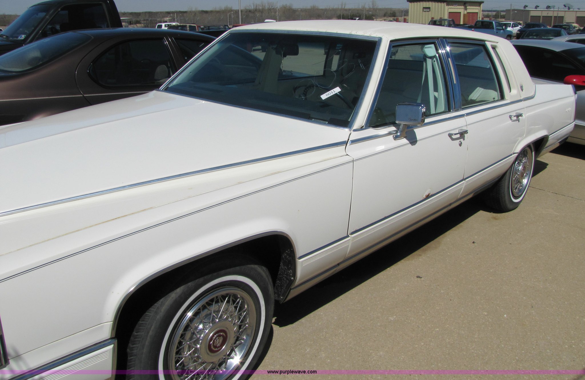 Purple Wave is selling a used Passenger Vehicle in Kansas. This item is a 1991 Cadillac Brougham with the following: Unknown mileage, 5.0L V8 TBI, Automatic transmission, AC and heat, Tilt steering wheel, Cruise control, AM/FM/CD player, Power windows, locks, and seats, Rear windows defrost, 225/75R15 tires, Cosmetic damage to seats, No keys, AV# 0031