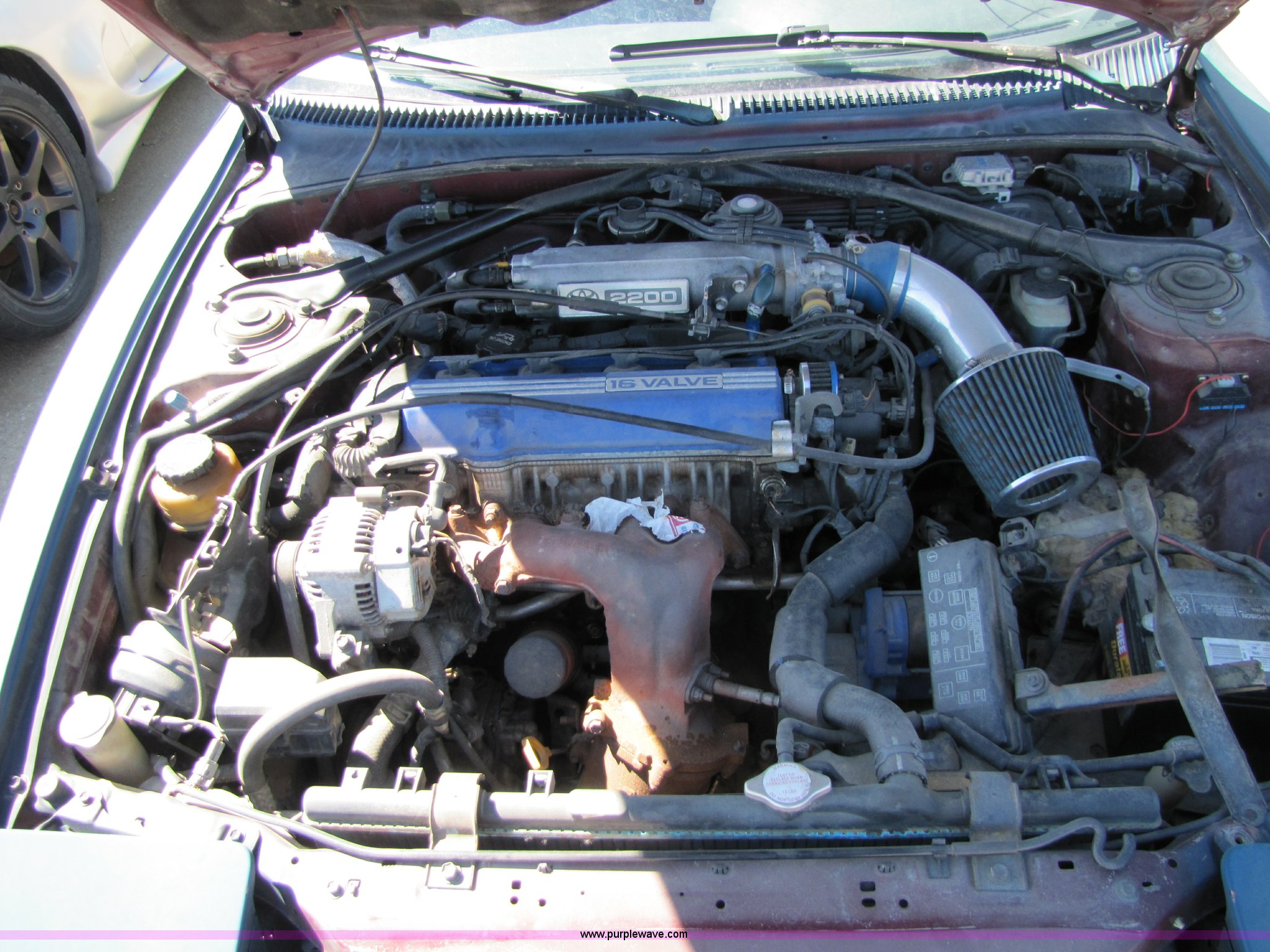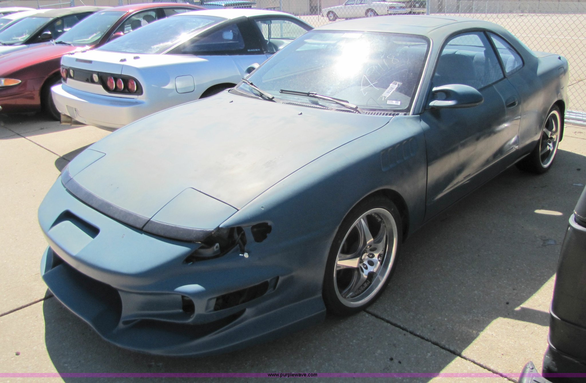 Purple Wave is selling a used Passenger Vehicle in Kansas. This item is a 1992 Toyota Celica GT with the following: 174,924 miles on odometer, 2.2L I4 MPI engine, Five speed manual transmission, AC and heat, Tilt, Power windows and locks, Rear defrost, Sunroof, Cloth interior, 205/40ZR17 tires, Flat tires, Interior and exterior cosmetic damage, No keys, Radio missing, AV# 9118