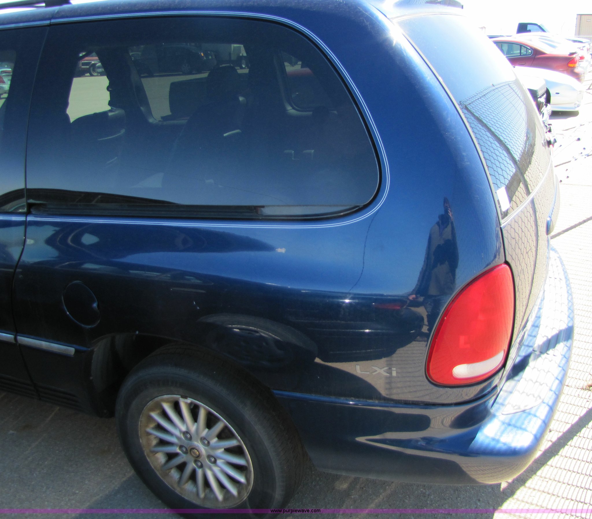 Purple Wave is selling a used Passenger Vehicle in Kansas. This item is a 2000 Chrysler Town & Country LXi minivan with the following: Unknown mileage, 3.8L V6 MPI engine, Automatic transmission, AC and heat, Tilt, Cruise, AM/FM, Power windows, locks, mirrors, and seats, Heated seats, Vinyl seats, (2) front, one middle, 215/65R16 tires, No keys, Paint chipping, Exterior and interior cosmetic damage, AV# 9144