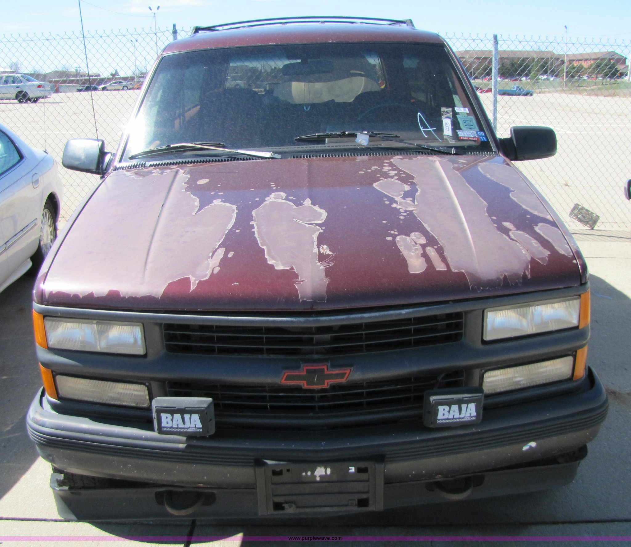Purple Wave is selling a used Passenger Vehicle in Kansas. This item is a 1994 Chevrolet Blazer Sport K1500 SUV with the following: 218,693 miles on odometer, 5.7L V8 TBI engine, Automatic transmission, Four wheel drive, AC and heat, Tilt, AM/FM/CD, Power windows, locks, mirrors, and seats, Rear defrost, Cloth seats, Receiver hitch, 265/75R16 tires, Flat tires, No keys, Hood paint peeling, Interior and exterior cosmetic damage, AV# 0005