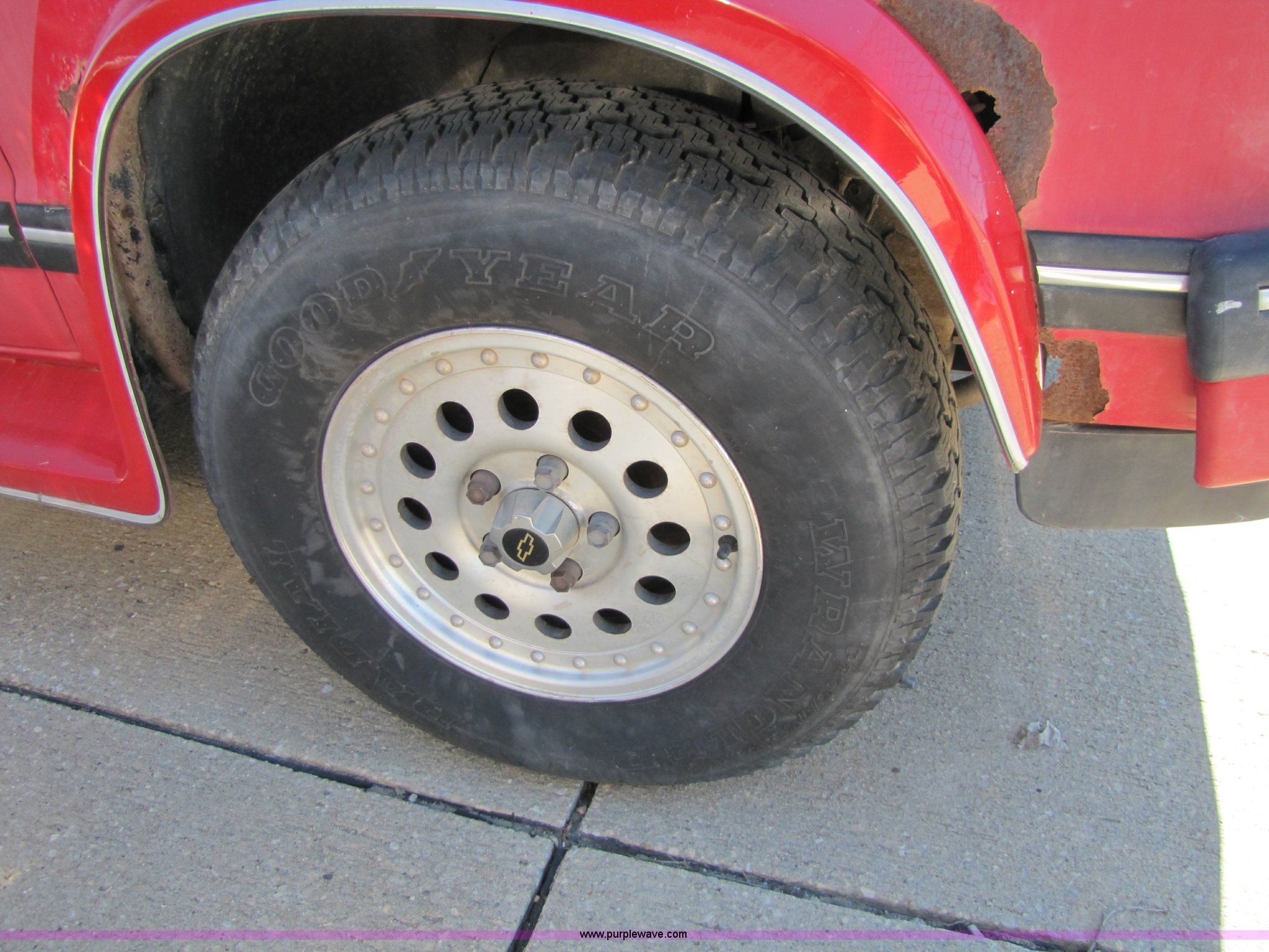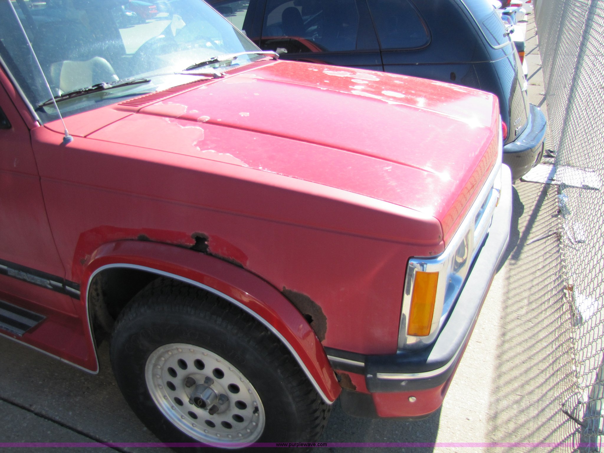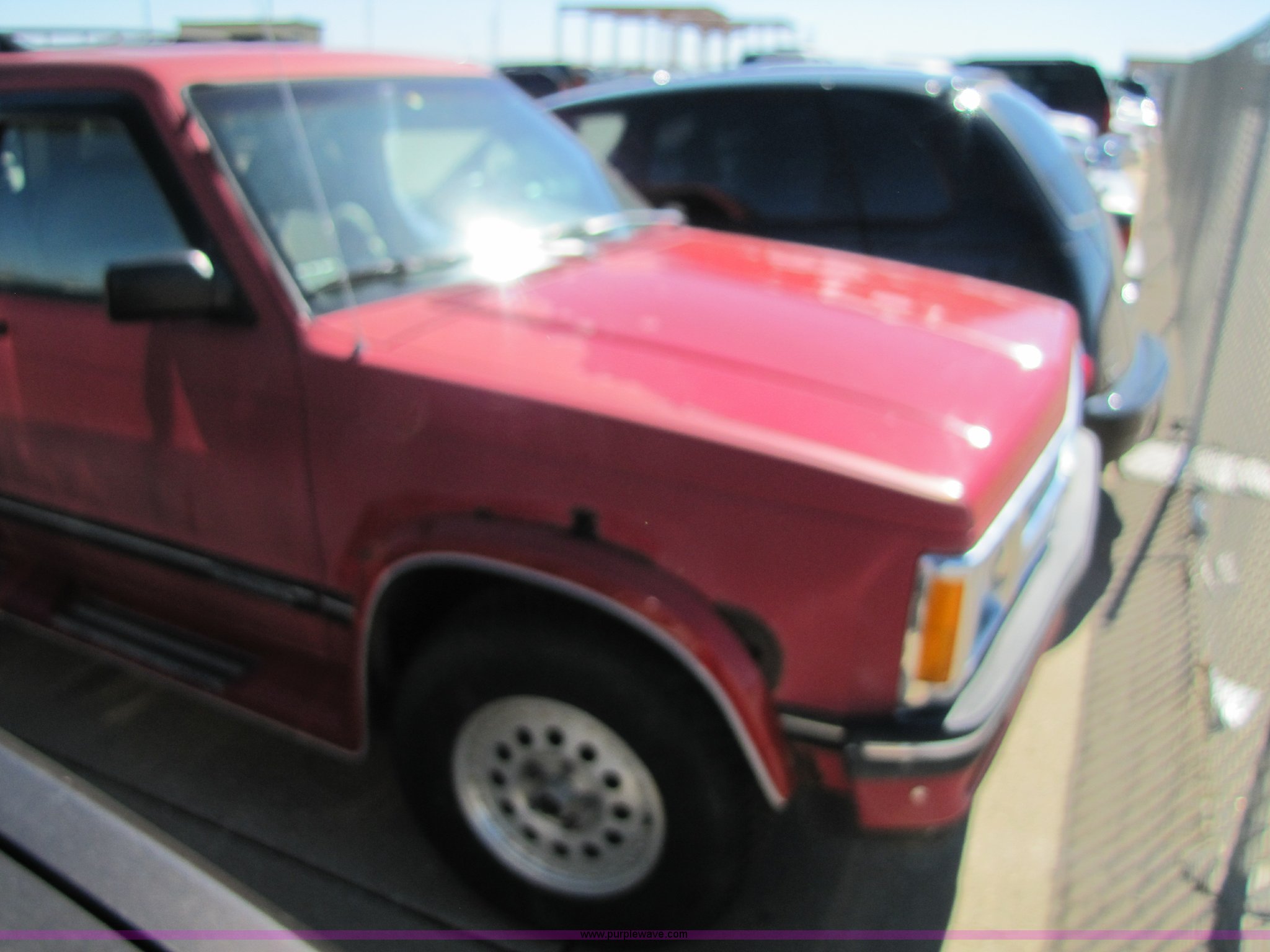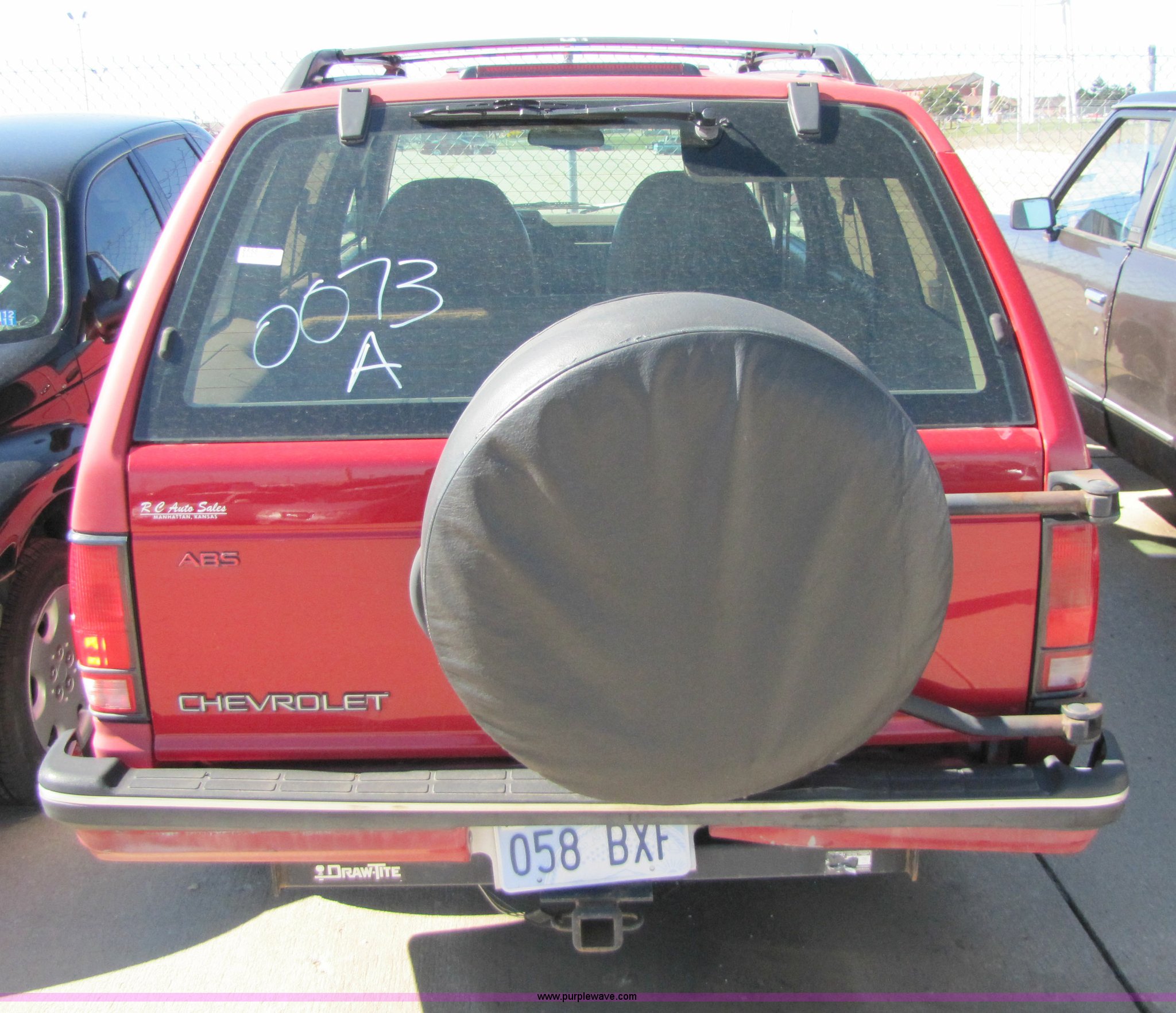 Purple Wave is selling a used Passenger Vehicle in Kansas. This item is a 1994 Chevrolet S10 Blazer Tahoe LT SUV with the following: 15,700 miles on odometer, 4.3L V6 CPI engine, Automatic transmission, Four wheel drive, AC and heat, Tilt, Cruise, AM/FM, Power windows, locks, and mirrors, Rear defrost, Vinyl seats, Receiver hitch, Trailer wiring, 235/75R15 tires, Keys, AV# 0073