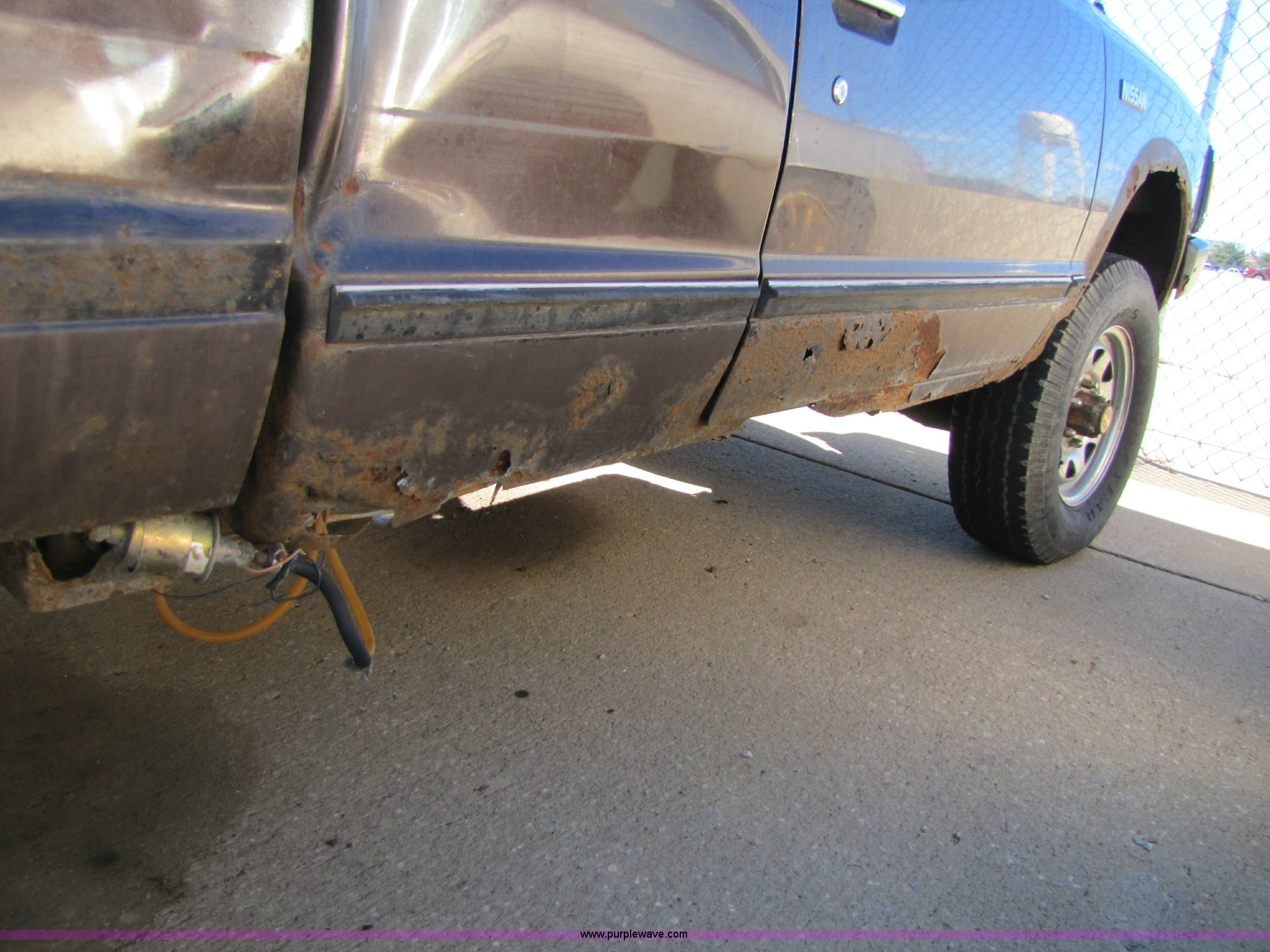 Purple Wave is selling a used Passenger Vehicle in Kansas. This item is a 1985 Nissan GT King Cab pickup truck with the following: 164,321 miles on odometer, 2.4L I4 2BBL engine, Five speed manual transmission, Four wheel drive, AC and heat, Tilt, AM/FM/CD, faceplate missing, Power windows and locks, Sunroof, Cloth seats, damaged, Pickup bed, Trailer wiring, Ball hitch, 235/75R15 tires, No keys, Interior and exterior cosmetic damage, Rust, AV# 0101