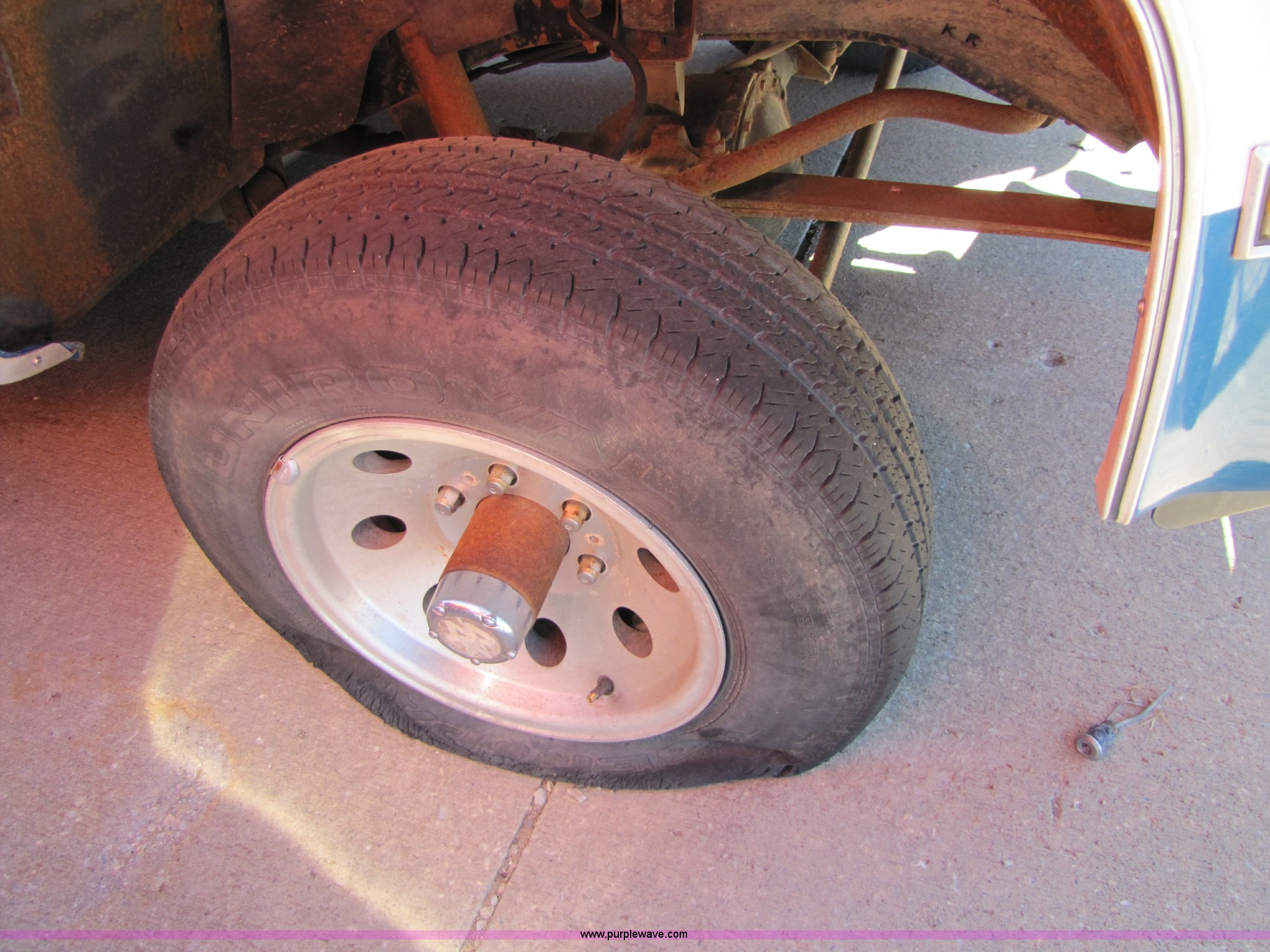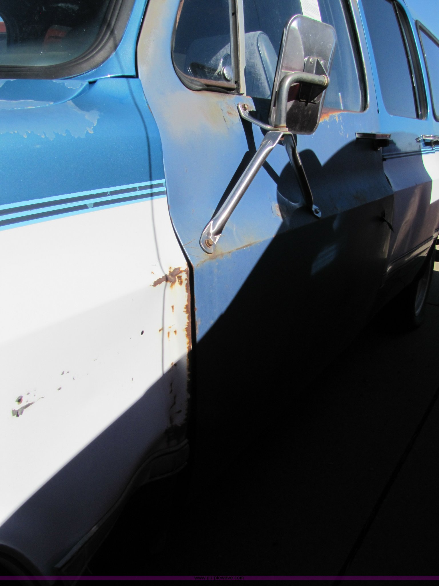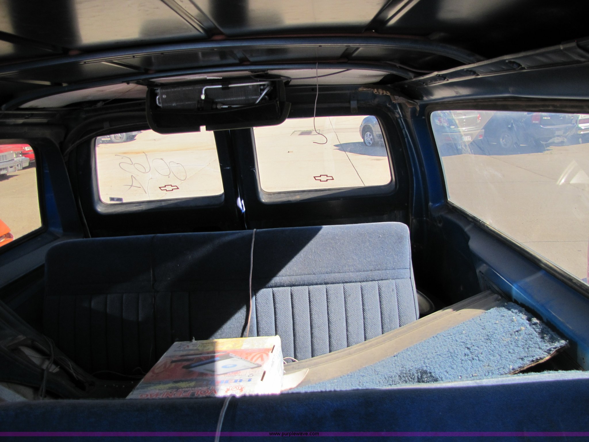 Purple Wave is selling a used Passenger Vehicle in Kansas. This item is a 1988 Chevrolet Suburban SUV with the following: 43,749 miles on odometer, 5.7L V8 TBI engine, Automatic transmission, Four wheel drive, AC and heat, Tilt, Power window passenger side, Power locks, Cloth seats, damaged, Receiver hitch, Trailer wiring, 235/75R15 tires, Flat tires, No keys, Exterior and interior cosmetic damage, Stereo missing, Cracked windshield, Cracked driver rear window, AV# 0065
