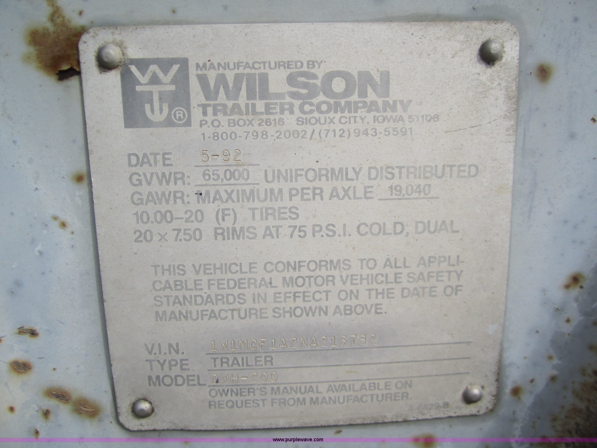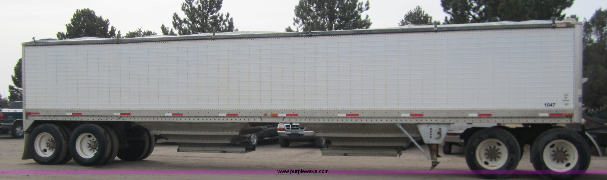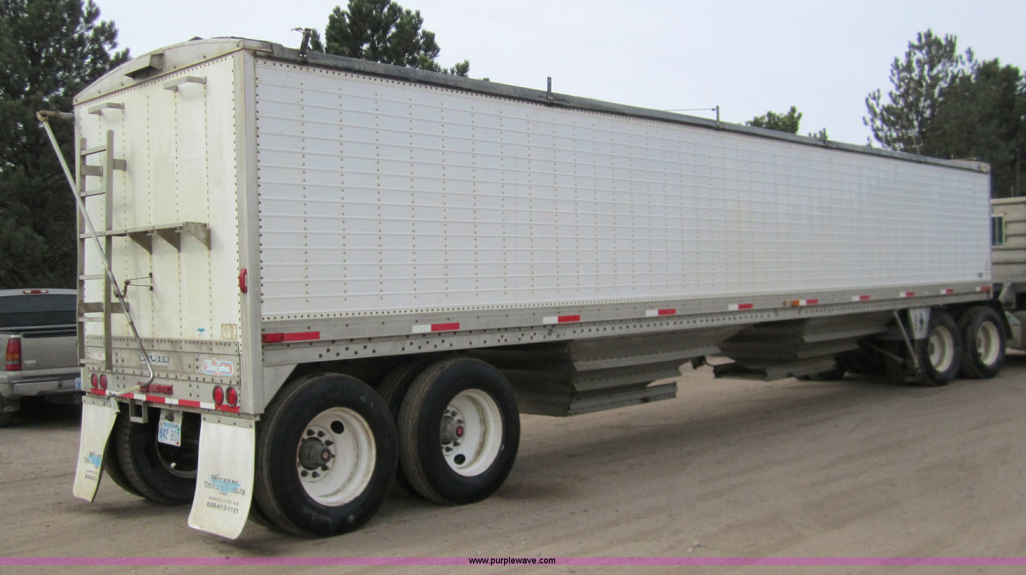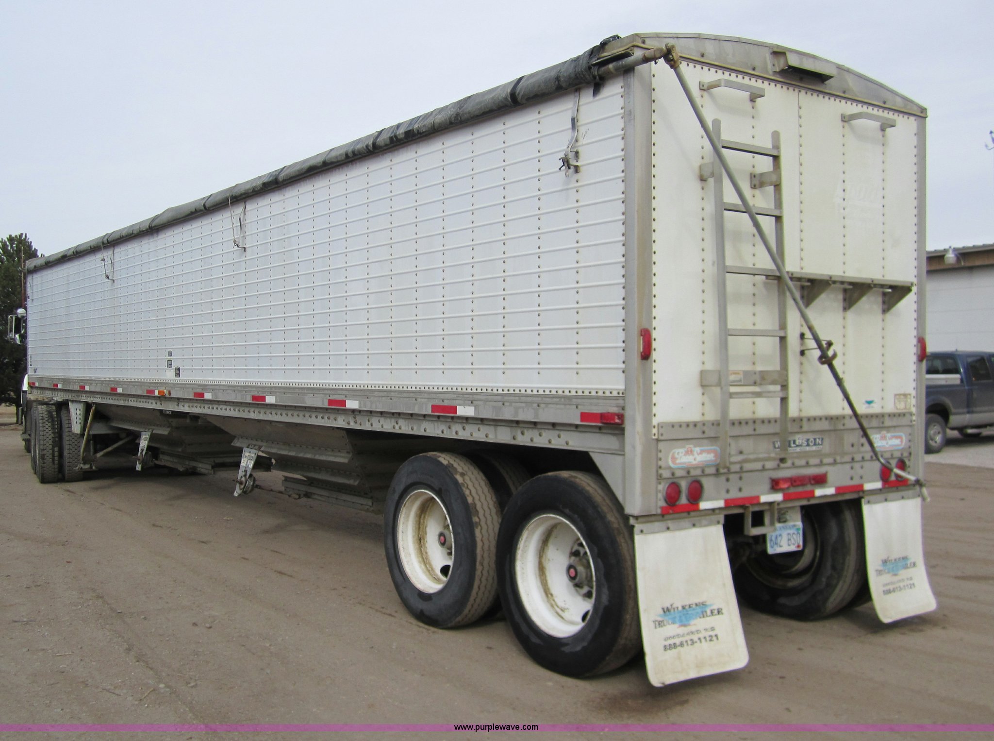 Purple Wave is selling a used Grain or Commodity Trailer in Kansas. This item is a 1992 Wilson DWH-200 43' hopper trailer with the following: Double hopper, Hopper vibrators, Roll over tarp, Air ride, 96"W, 79" sides, 11R24.5 tires