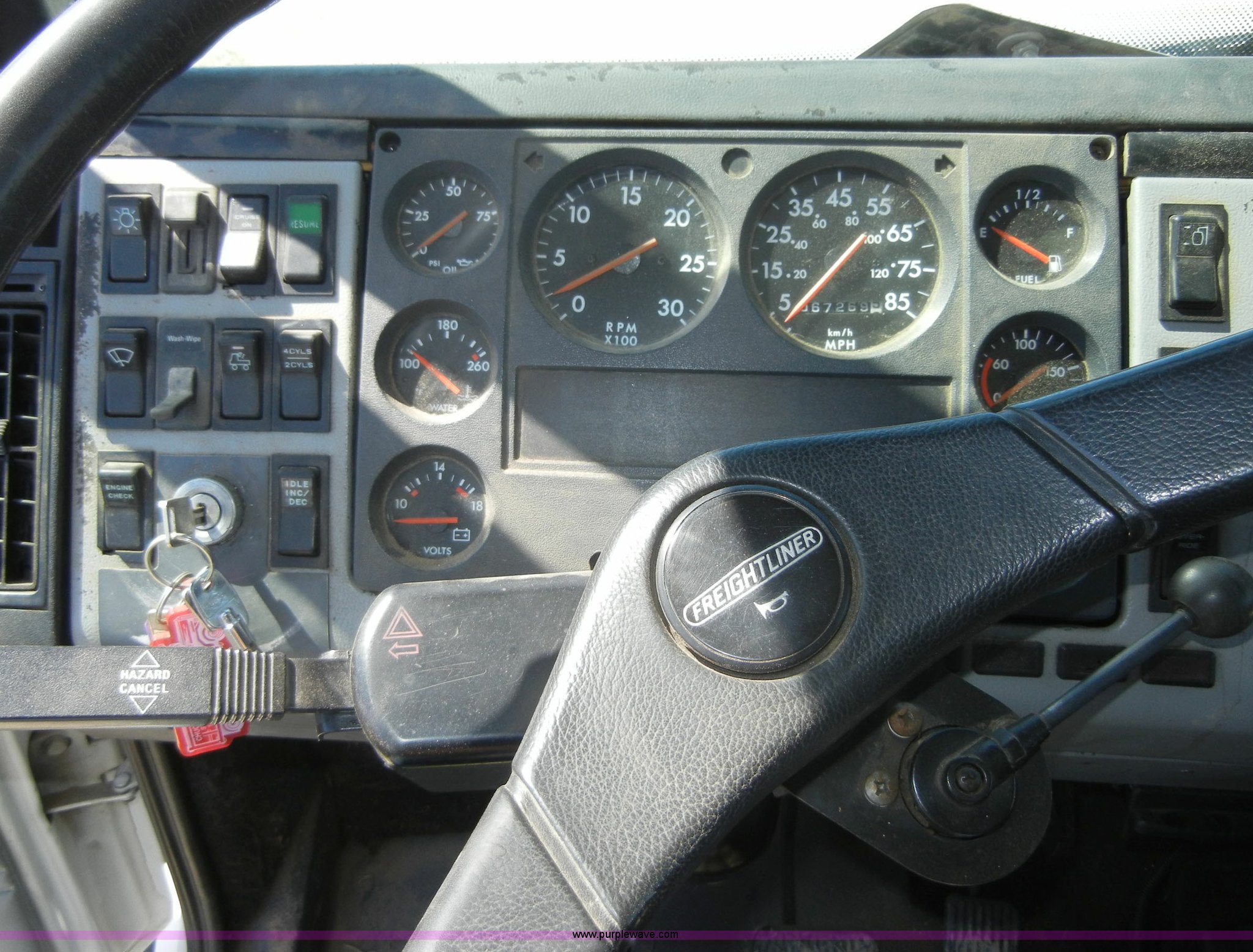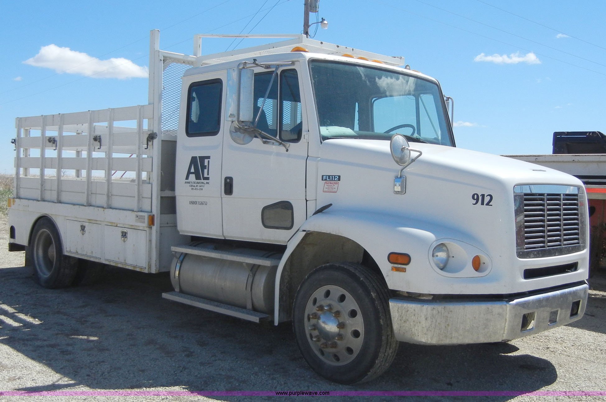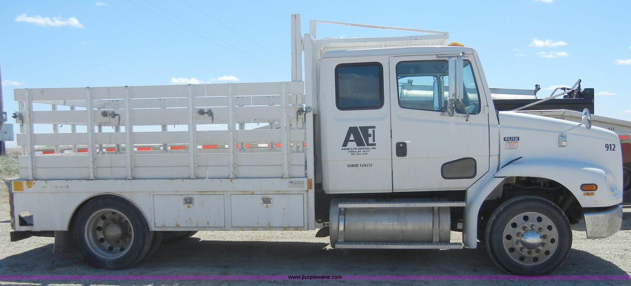 Purple Wave is selling a used Flat Bed Truck in Kansas. This item is a 1996 Freightliner FL112 service truck with the following: 67,269 miles on odometer, Cummins M11 / ISM L6,10.8L (661 CID) 370hp diesel engine, Eaton Fuller nine speed manual transmission, Heat/AC, Tilt, Cruise Control, Air suspension, Engine block heater, Dual 90 gallon fuel tanks, 12' stake bed with removable sides, Hideaway gooseneck hitch, Receiver hitch, Engine brake, Hideaway hydraulic lift gate, Extended cab, 225/70R22.5 tires, 192" WB, 32,000 lbs GVWR, 12,000 lbs front axle GVWR, 20,000 lbs rear axle GVWR, 3.90 gear ratio, View repairs
