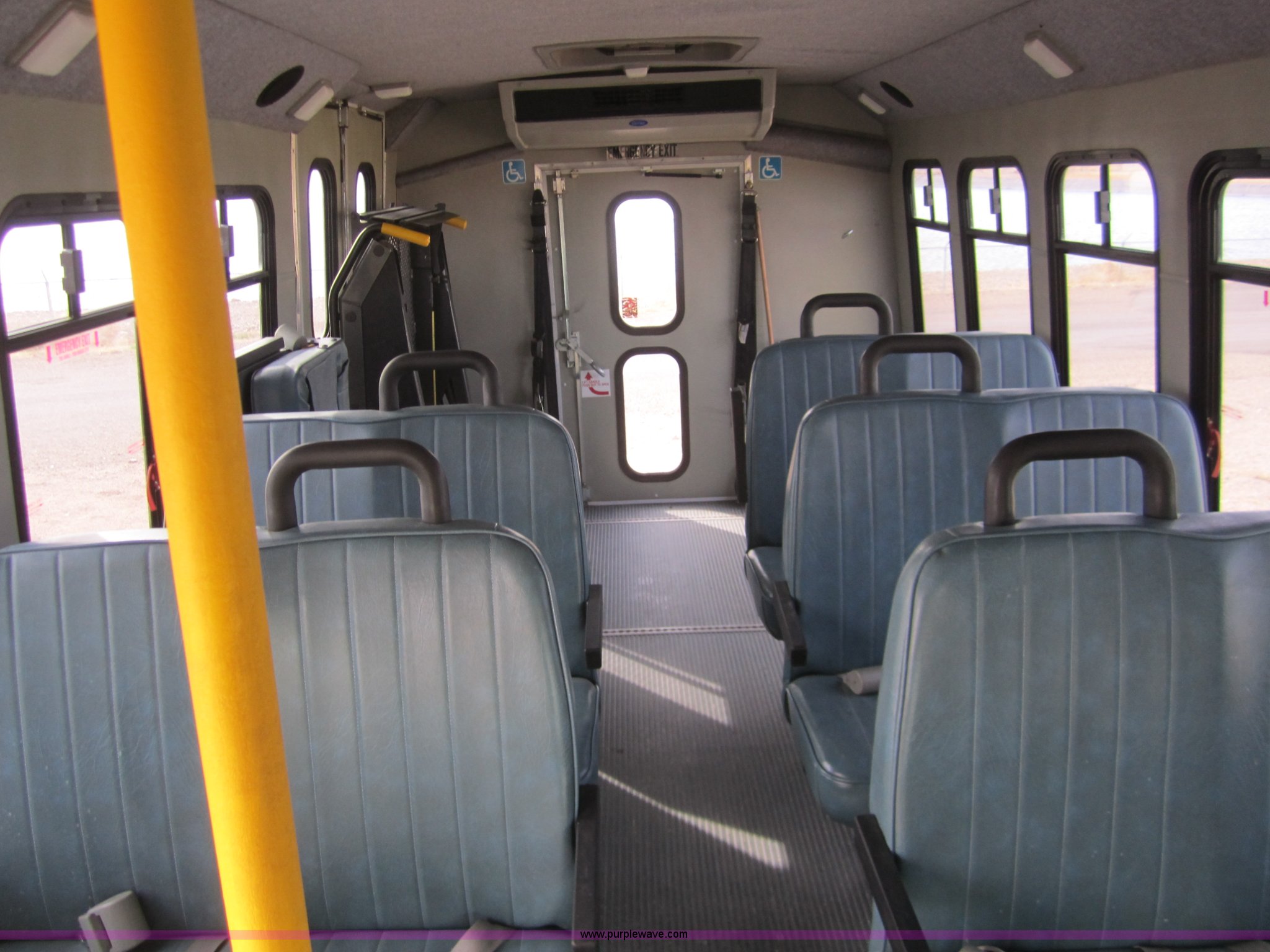 Purple Wave is selling a used Bus in Kansas. This item is a 2001 Chevrolet Express G3500 transit bus with the following: 139,850 miles on odometer, 8.1L V8 MPI gas engine, Automatic transmission, Four wheel ABS system, High speed idle switch, AC and heat, Rear AC and heat, Tilt, Cruise, AM/FM/Cassette, Manual windows and locks, Heated mirrors, 10 passenger stationary seating, Two passenger fold up seating for wheelchair, Braun wheelchair lift, Model L915 Series 03, Wheelchair stationary tie downs, Fire extinguisher, LT225/75R16 tires