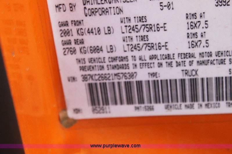 Take a look at this used 2001 Dodge Ram 2500 pickup truck being sold on May 10th, 2011 in the SOLD! May 10 KDOT Internet Auction made by Dodge. Take a look at all of the item information below or take a look at similar auctions for Passenger Vehicles.