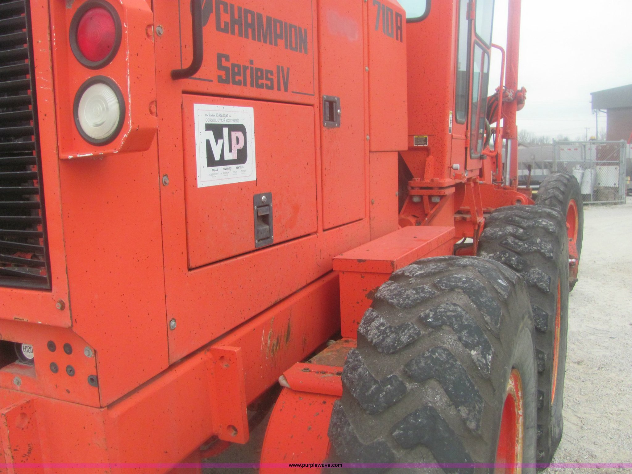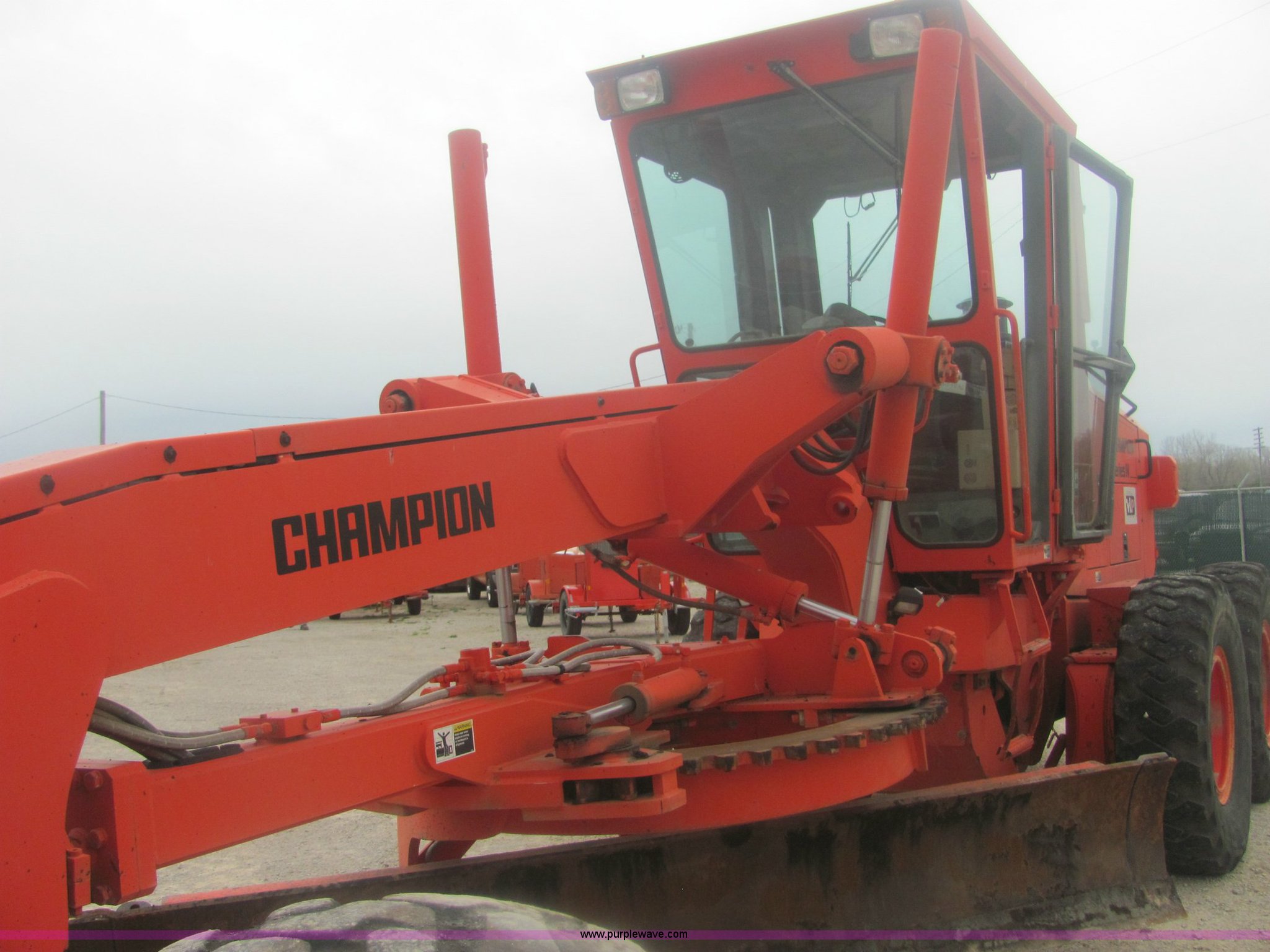 Purple Wave is selling a used Motor Grader in Kansas. This item is a 1996 Champion 710A motor grader with the following: 3,253 hours on meter, Cummins 5.9L diesel engine, Powershift eight speed transmission, 12' moldboard, Front mount scarifier, Parking brake sticks, Serial 25819, KDOT ID 310-4036