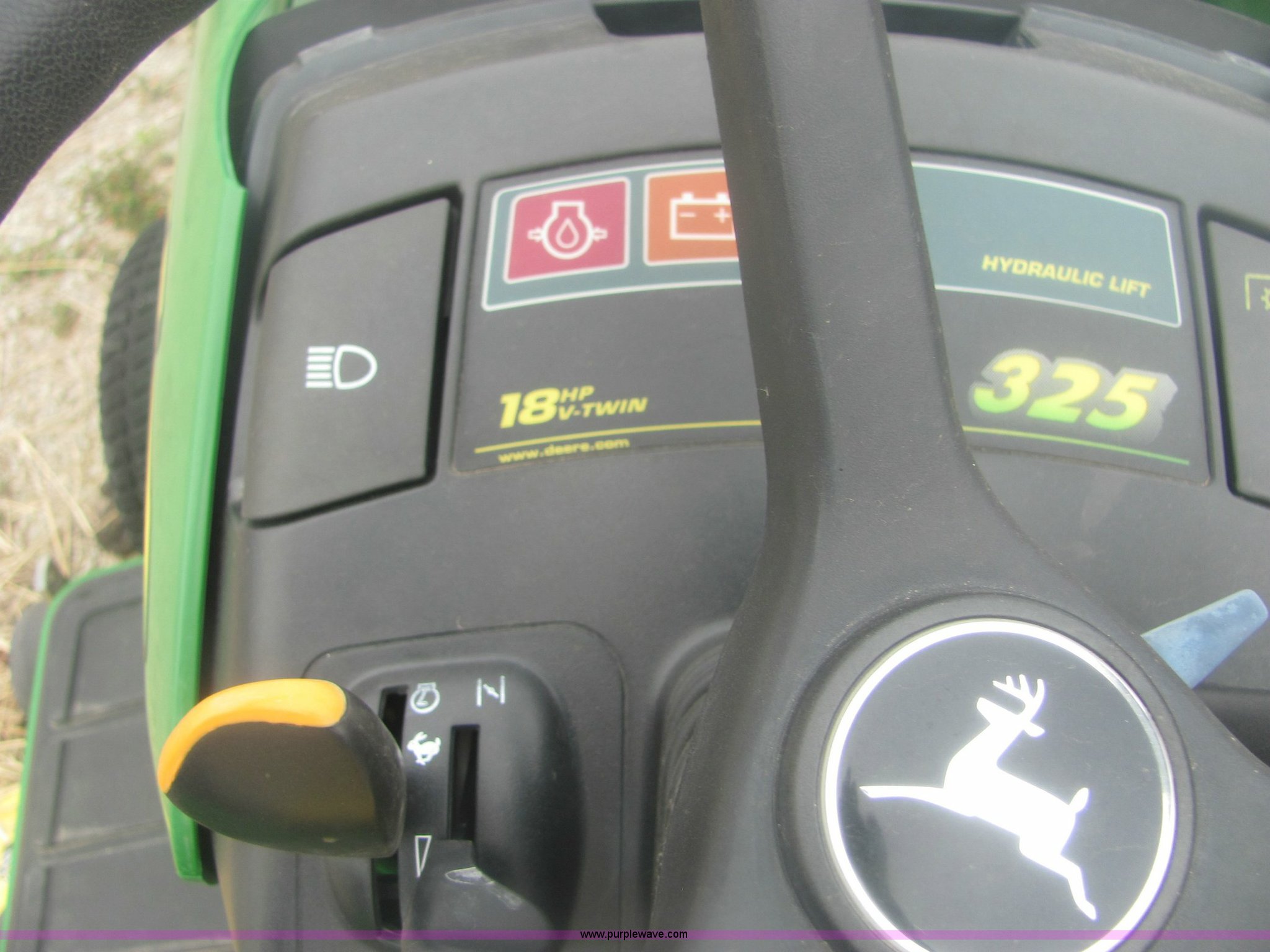 Take a look at this used 2001 John Deere 325 lawn mower being sold on May 10th, 2011 in the SOLD! May 10 KDOT Internet Auction made by John Deere. Take a look at all of the item information below or take a look at similar auctions for Mowers and Other Ag Equipment.
